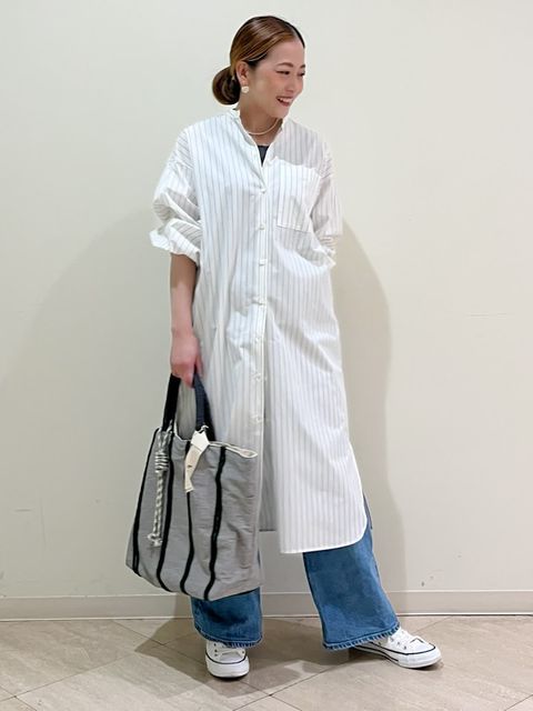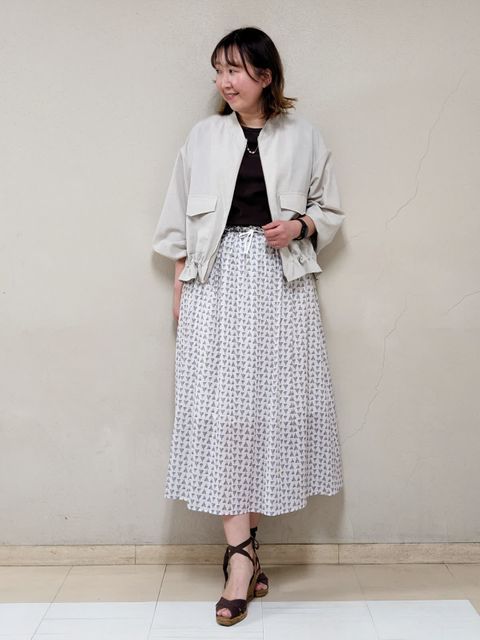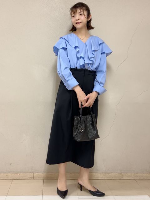 【着用サイズ】全て:フリー【着用カラー】ブラウス:ネイビー スカート:オフホワイト お出掛けコーディネートです。ネイビー?ホワイトできれいめなマリンテイストにしました。ブラウスは店舗でも定評のあるデザインで、ボートネックが上品な印象です。下着の肩紐が見えないよう工夫されているので安心。Aラインで風通しが良いので、サラッと快適な着心地です。バルーンスカートを合わせて、カジュアルななかにも女性らしさのある、好感度の高いスタイリングにしました。