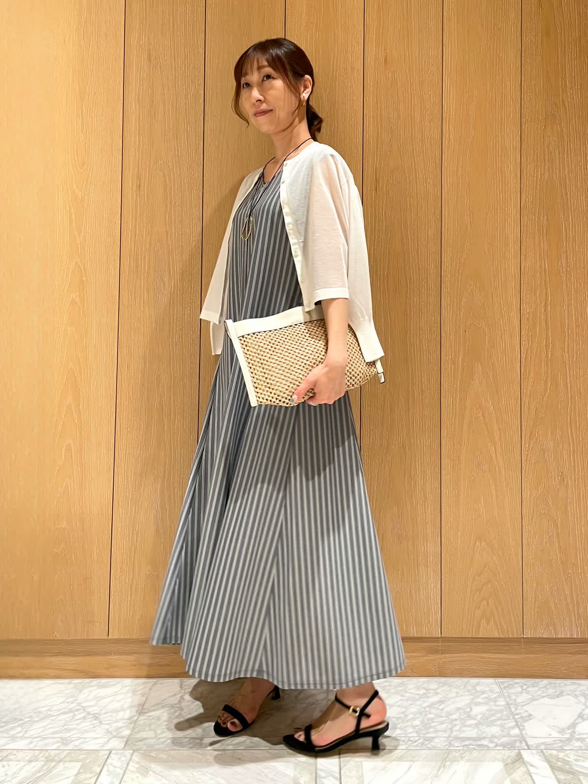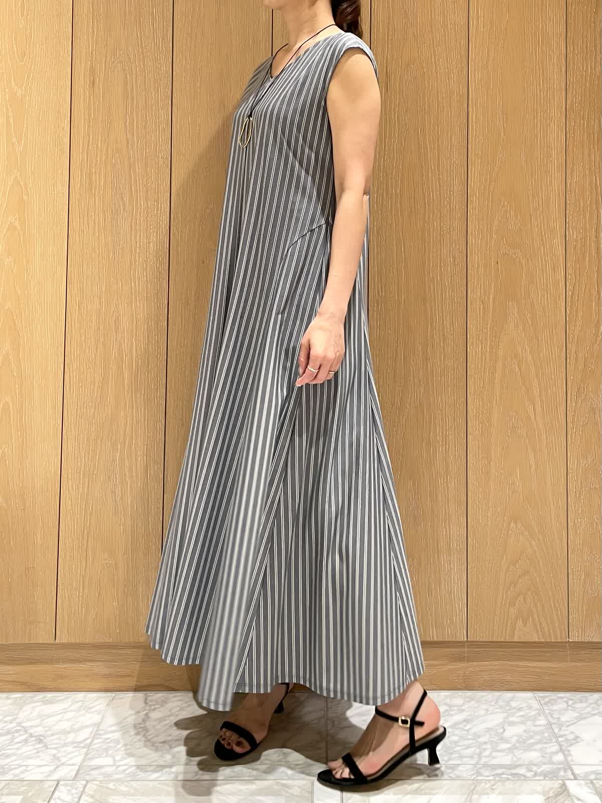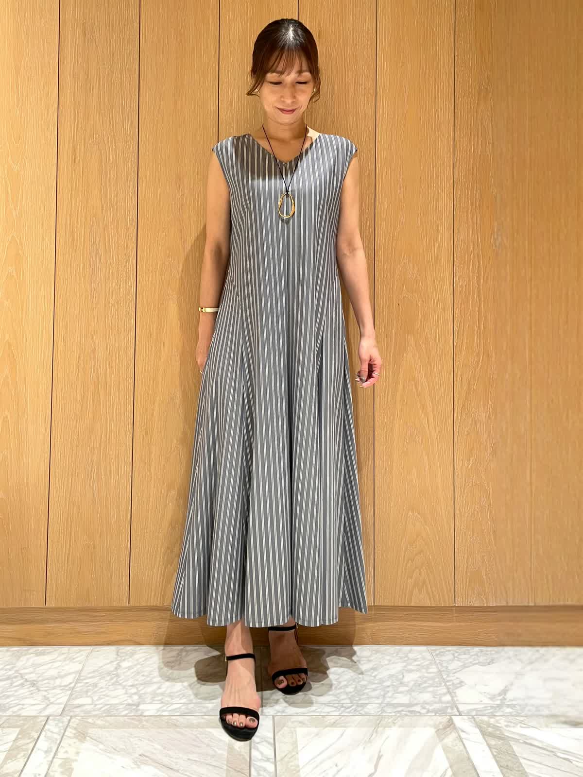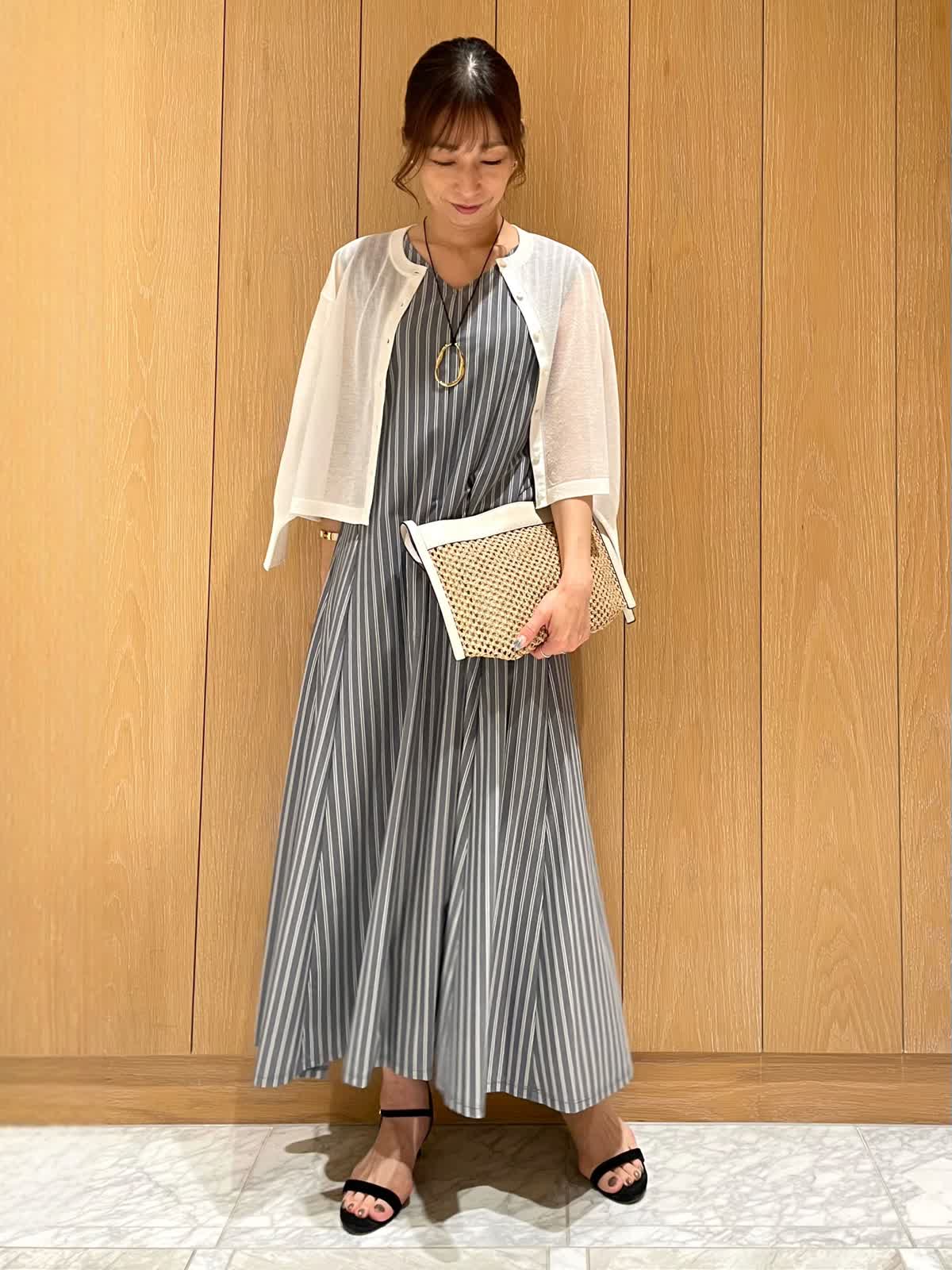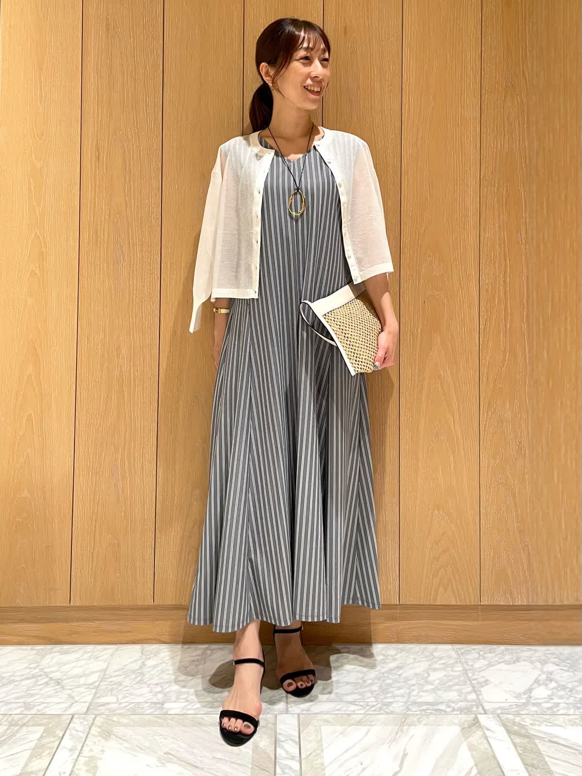 【着用サイズ・カラー】ワンピース : 9号 ネイビー カーディガン : 9号 オフホワイト 爽やかで夏らしいストライプワンピース。毎日着たくなる軽くてさらりとした着心地です。ウエストラインがスッキリしていて、体のラインをきれいに見せてくれます。