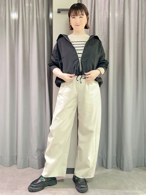 【着用サイズ】シャツ:9号/ブラック パンツ:9号/カーキ 夏休みコーデ。トレンドのシアー素材もカラーが黒だとそこまで透けすぎないので抵抗なく着られます。シャツだけどミリタリーパンツを合わせて一気にカジュアルダウン。パンツはハイウエストでウエストゴム無しなのでゆったり履きたい方は通常より1サイズupがおすすめ。ストライプ柄のラフィアBAGがコーデのアクセントでお気に入り♪