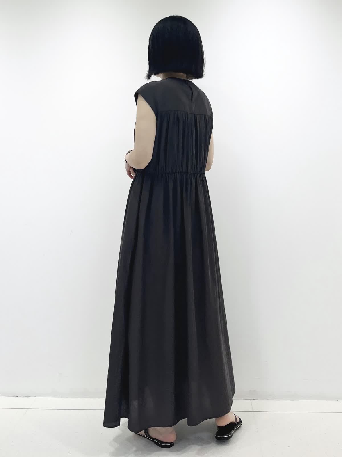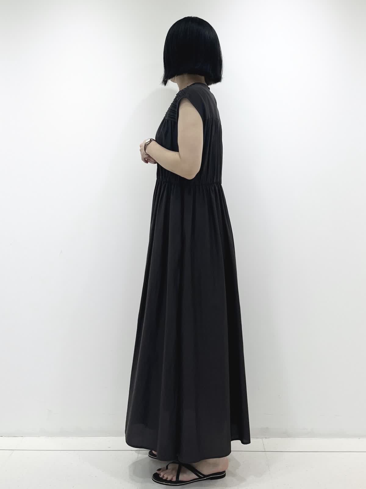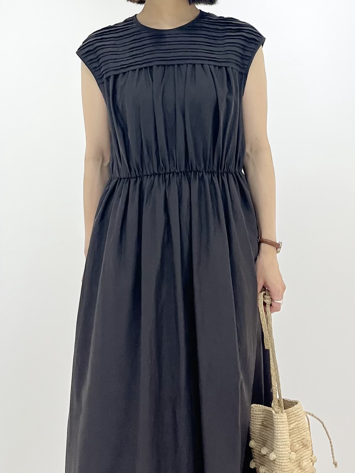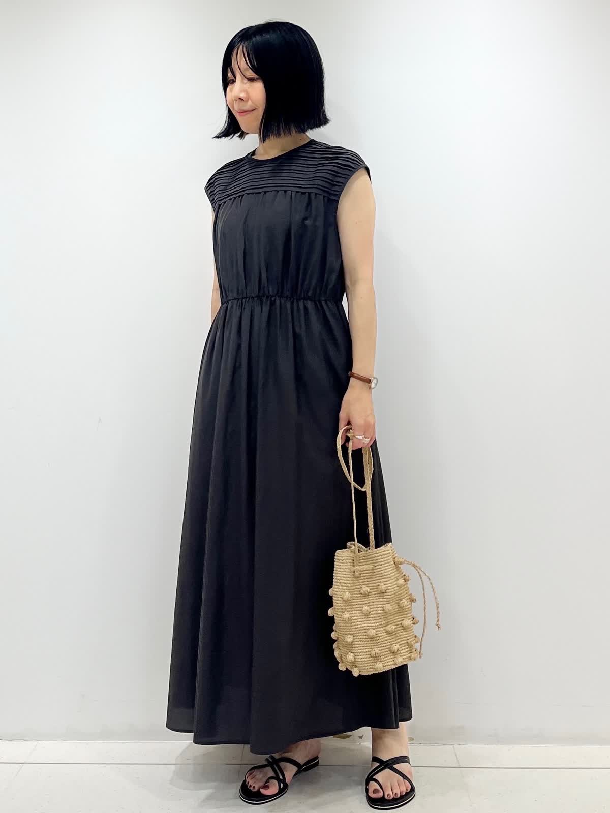 【着用サイズ】ワンピース:9号/モカチャ バッグ:ベージュ 胸上のタック使いがポイントのワンピース。 ウエスト部分もゴム使用で楽に着ていただけます。柔らかい素材感で広がりすぎず、スッキリ見えするシルエットです!