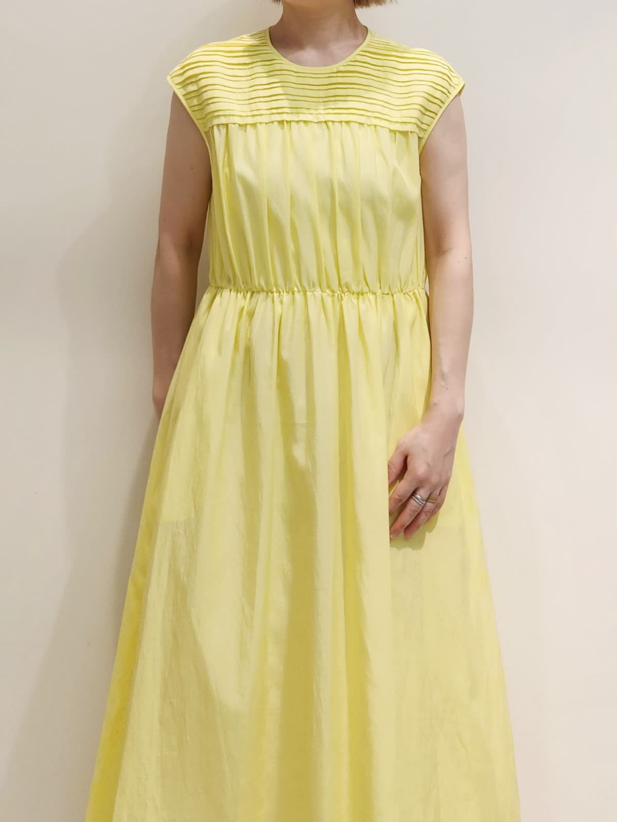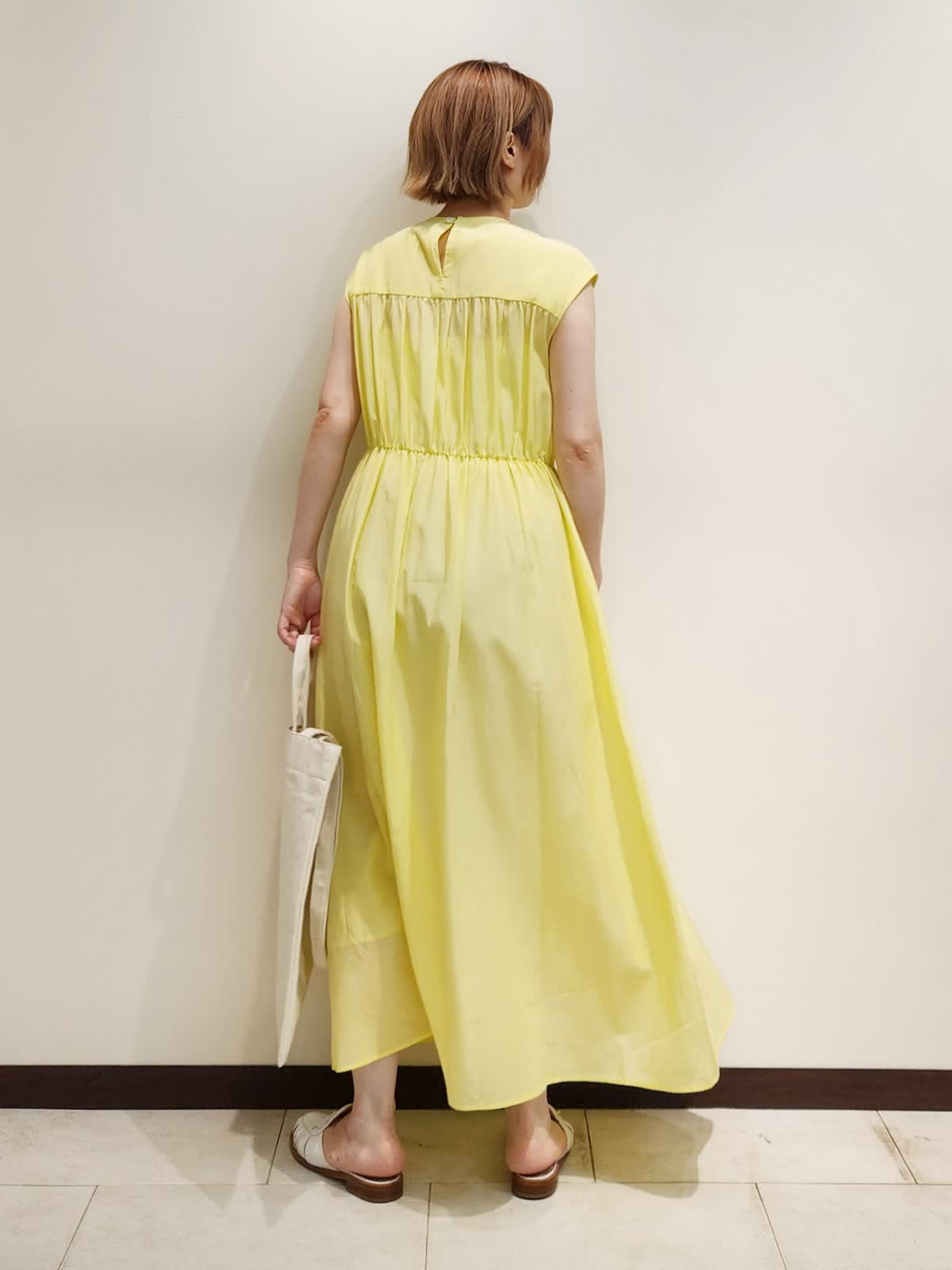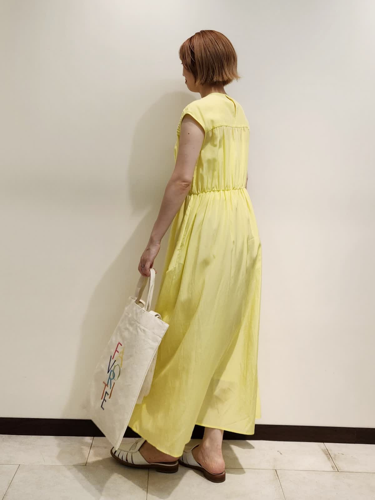 【着用サイズ】ワンピース:9号 【着用カラー】ワンピース:イエロー お出かけが楽しみになるワンピースコーディネート。 フロントのピンタックデザインが繊細で着るだけで仕上がる主役ワンピース。キュプラ×コットンが肌に心地よい一着です。バックはFAVORITEオリジナル《RAINBOW COLLECTION》虹色トートでカラーを楽しんで。
