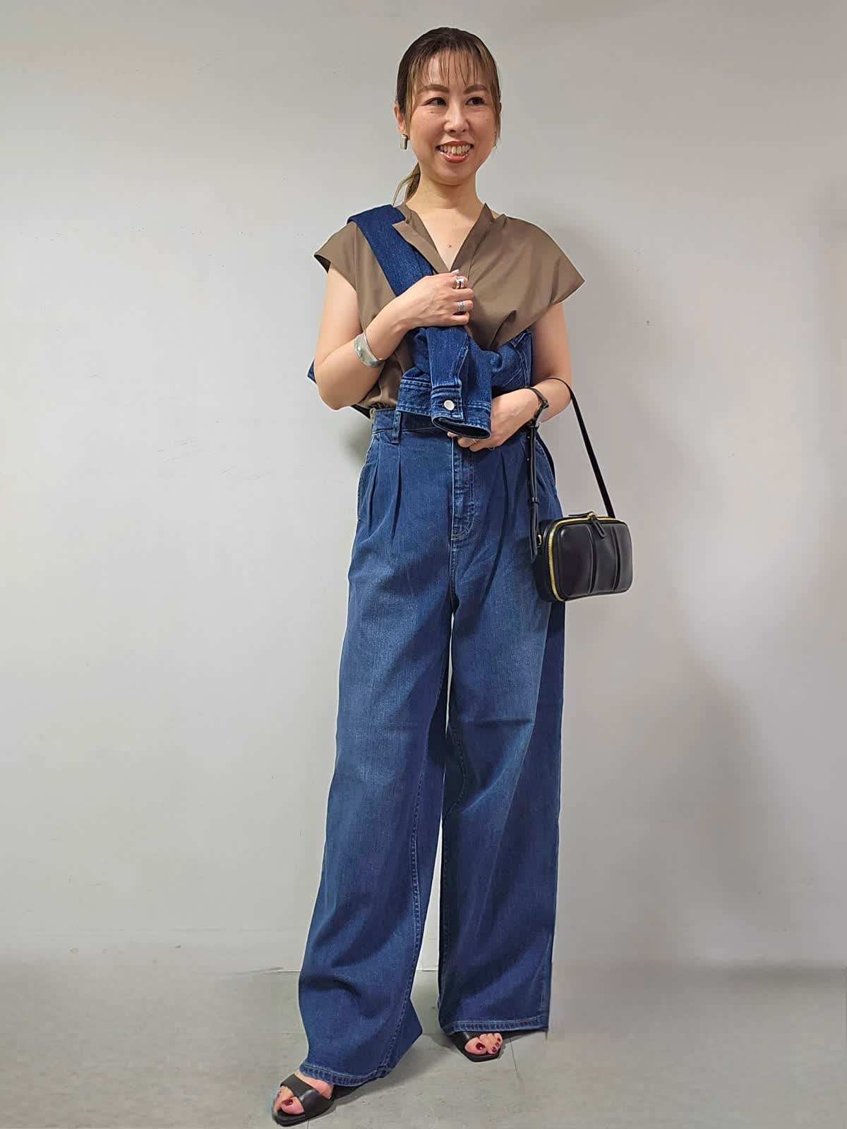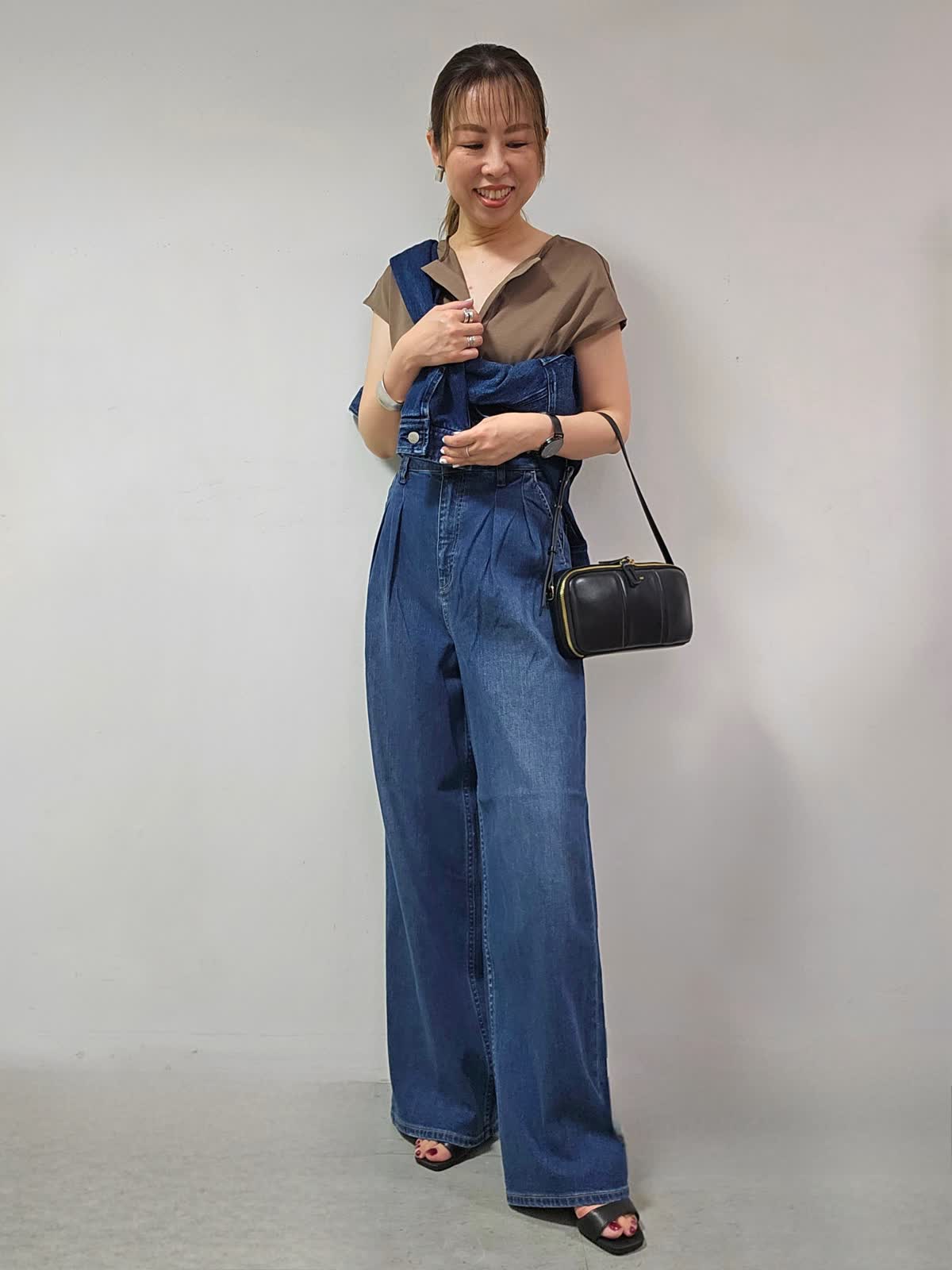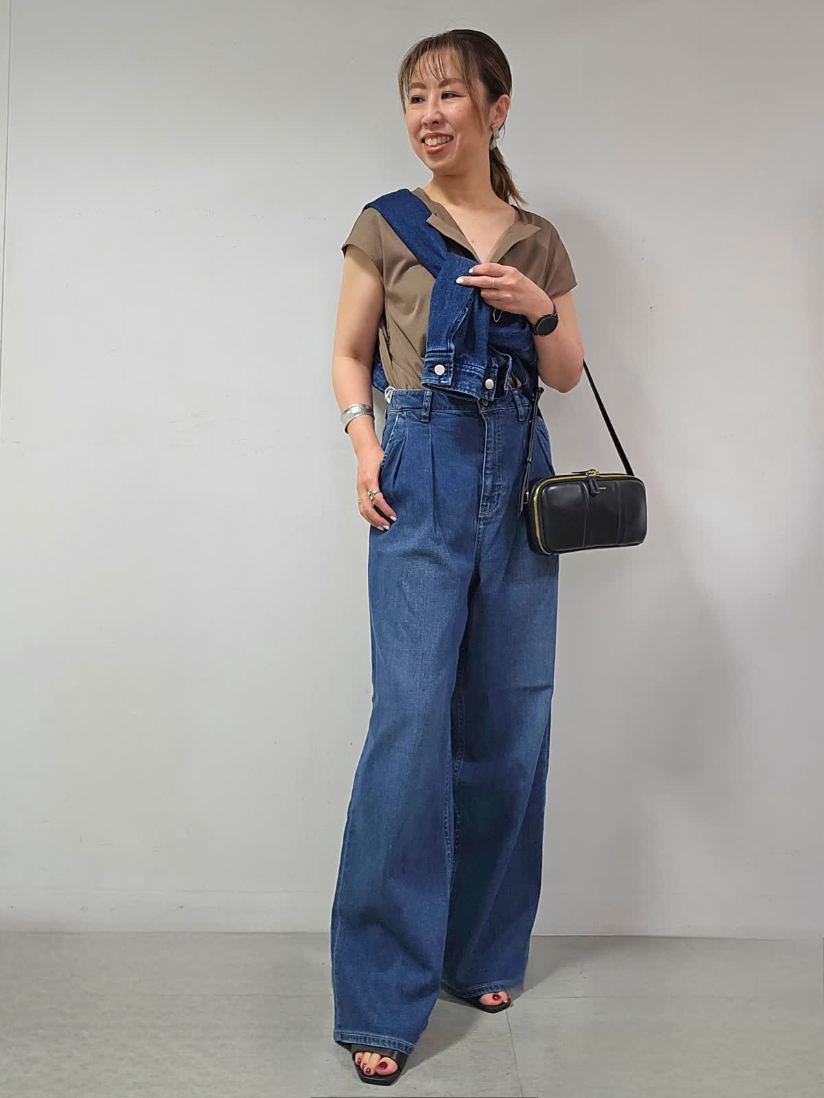 【着用サイズ】カットソー:9号 パンツ:5号 【着用カラー】カットソー:モカチャ パンツ・ジャケット:インディゴ バッグ:ブラック 夏も楽しみたい定番アイテムの「デニムパンツ」 カジュアルになりすぎるな、と感じるときは旬のシルエットを選べばリラクシーな装いにも応用でき、大人っぽく涼しげなデニムで夏の着こなしをアップデートできますよ!