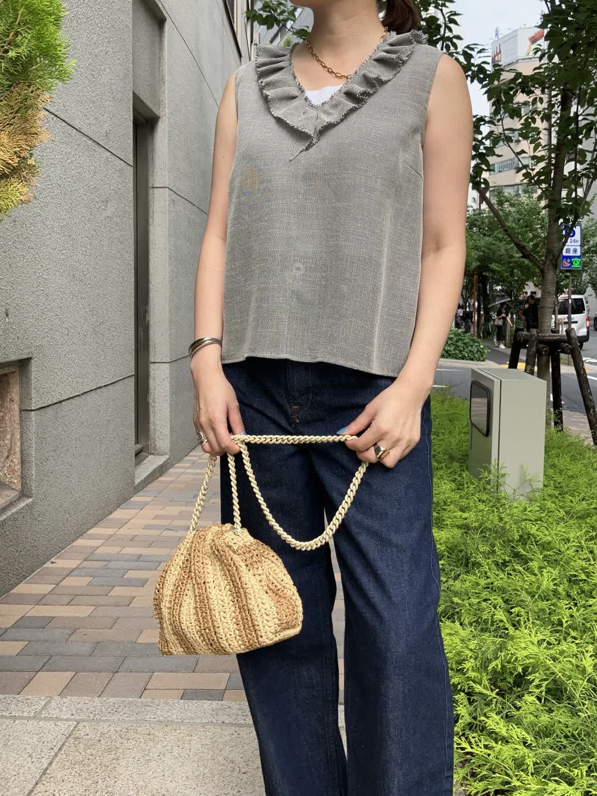 INEDブラウスとパンツとMaglie le cassettoバッグ(銀座三越SUPERIOR CLOSET GINZA)