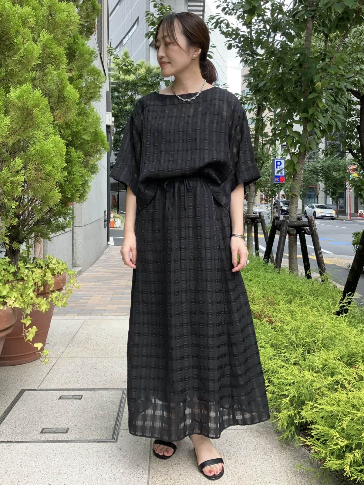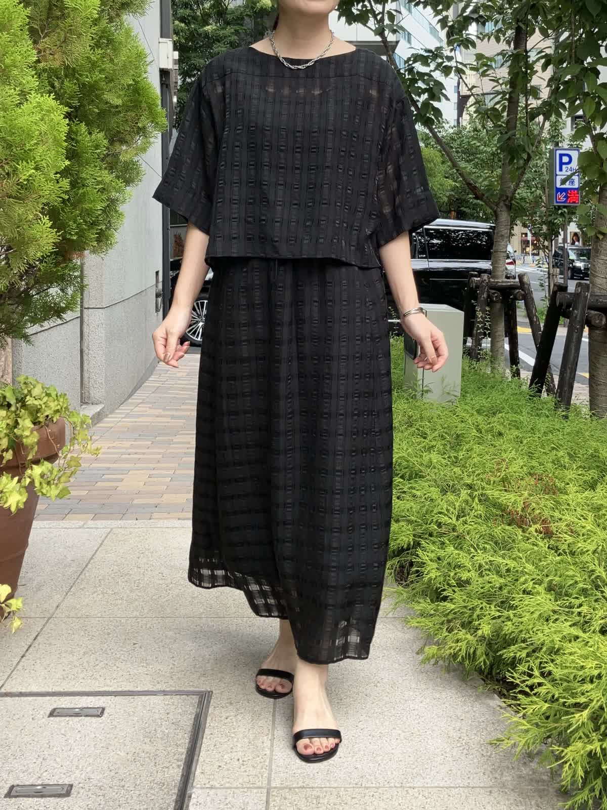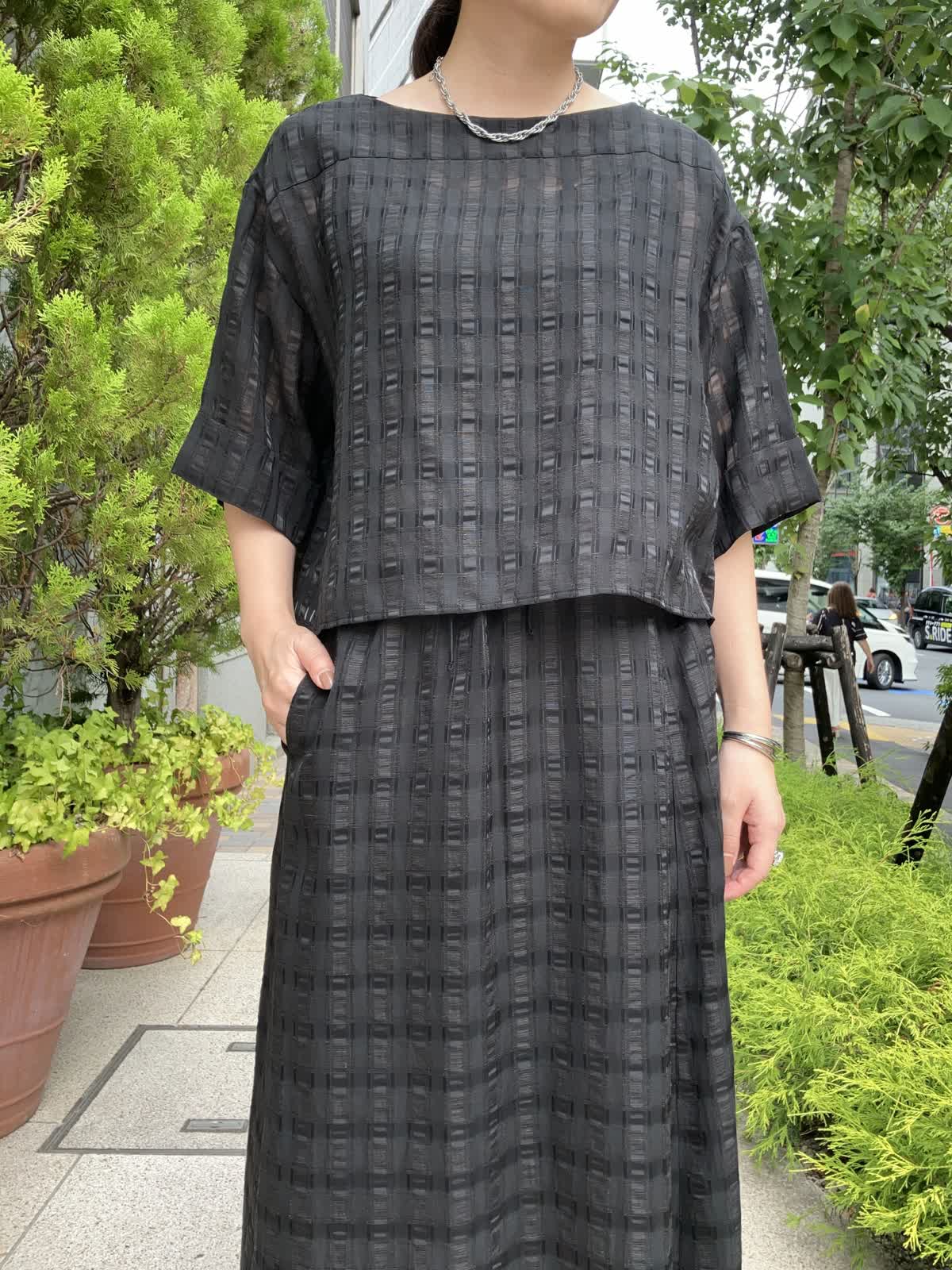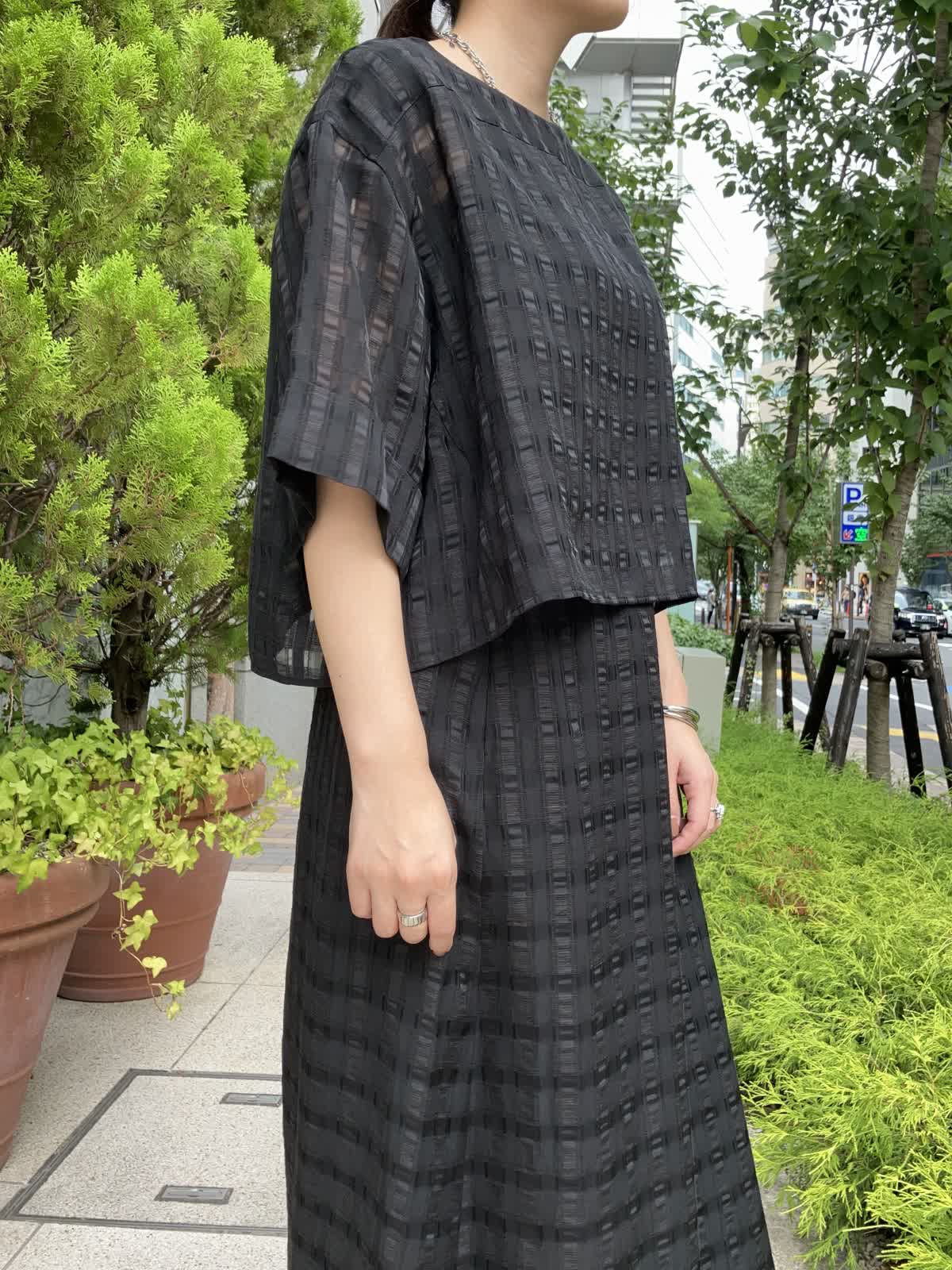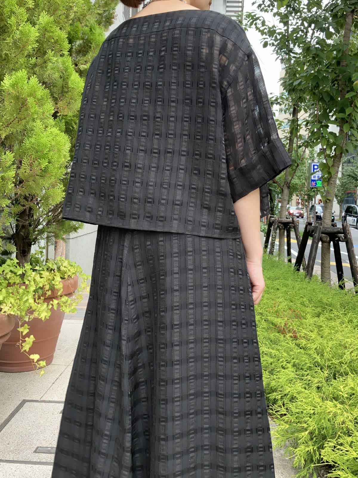 【着用サイズ】全て9号【着用カラー】全てブラック トレンドのシアー素材が魅力のセットアップコーデ。見た目も軽やかで汗染みも気にせずオシャレを楽しめます。チェック柄がアクセントになり、普段使いからお食事シーンまで幅広く着ていただけます。ブラウス、スカート別々に着回し可能な便利なセットアップ。
