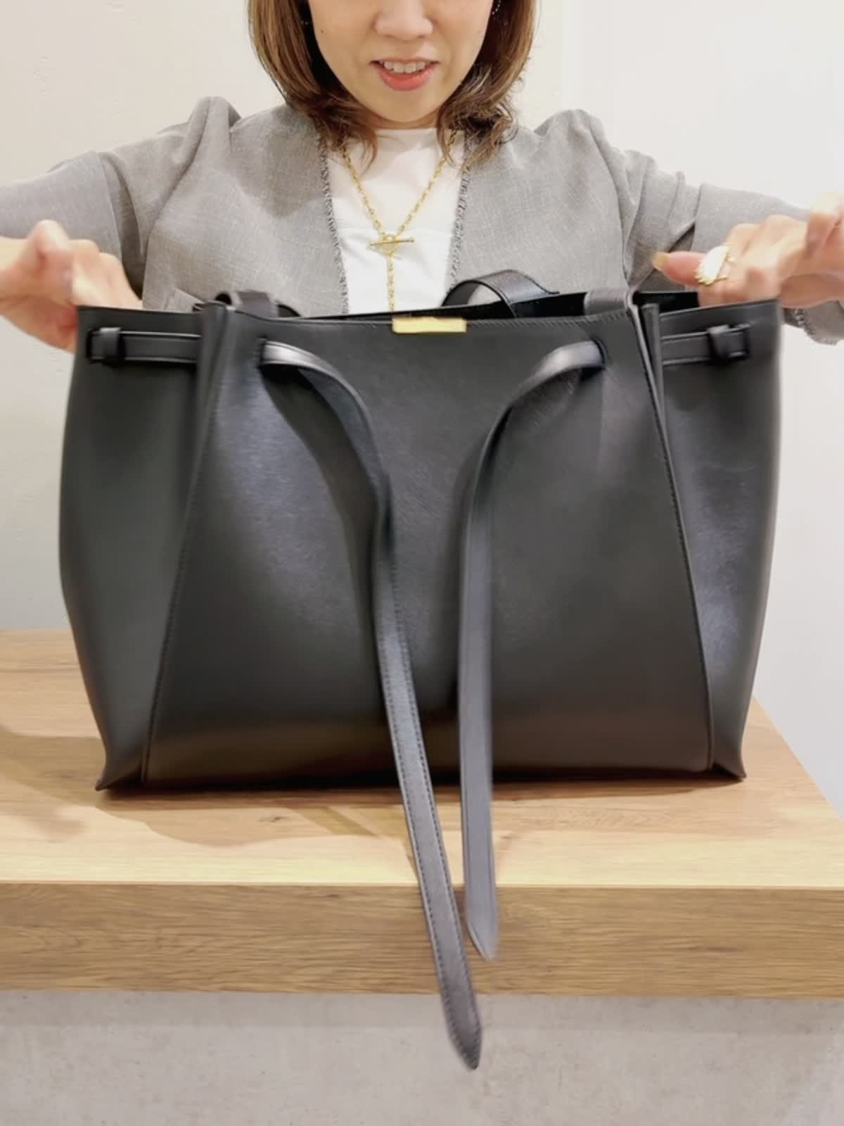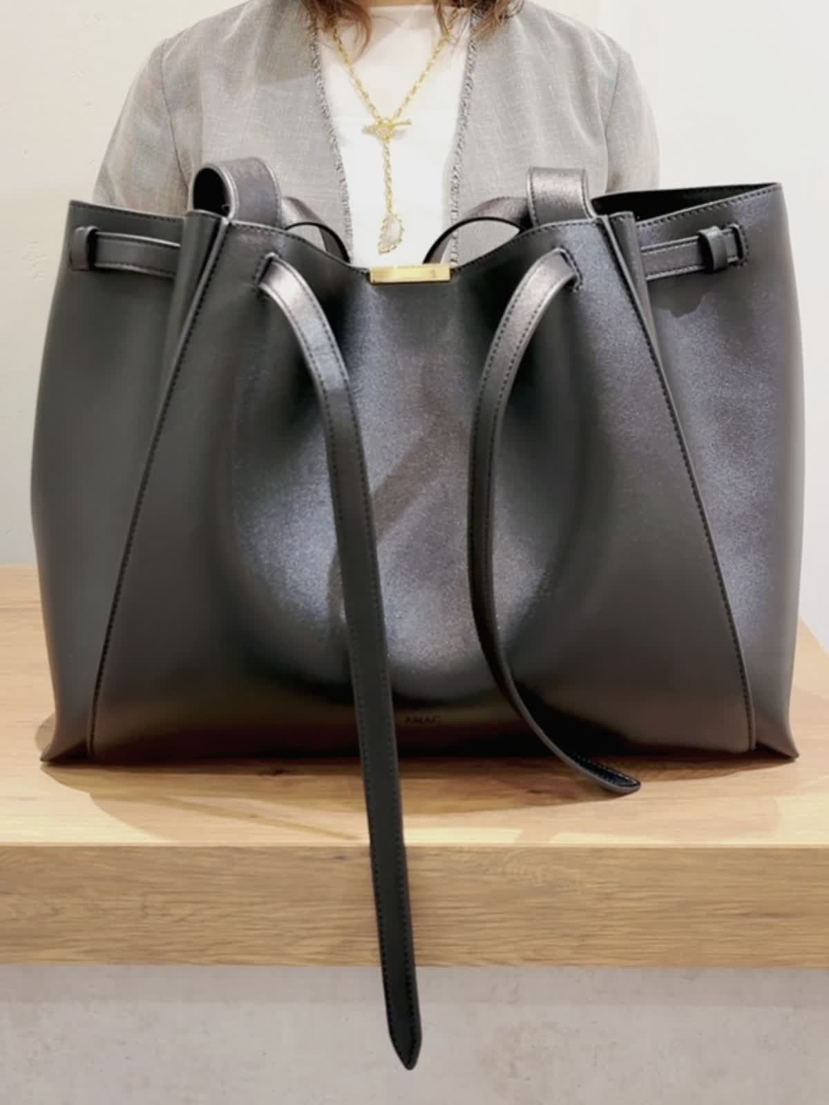 《AMAG STUDIO /エーエムエージースタジオ》 カウハイドレザー ラージトートバッグ 韓国発のカウハイドレザーのとっも柔らかいトートバッグ。 サイドのベルトで自由に調節が出来ます。 マチもかなり大きく、ノートパソコンや必要なものは余裕で収納可能です! お仕事はもちろん、普段使いでもとってもおしゃれです。