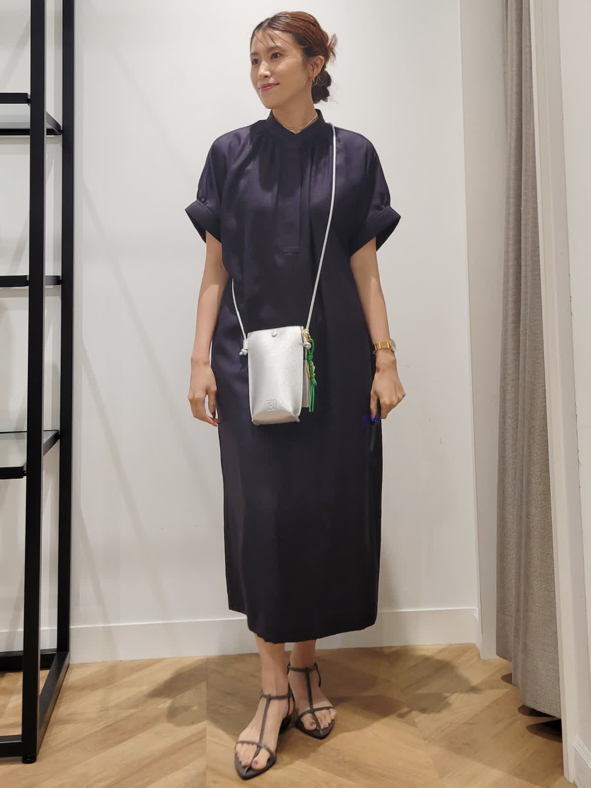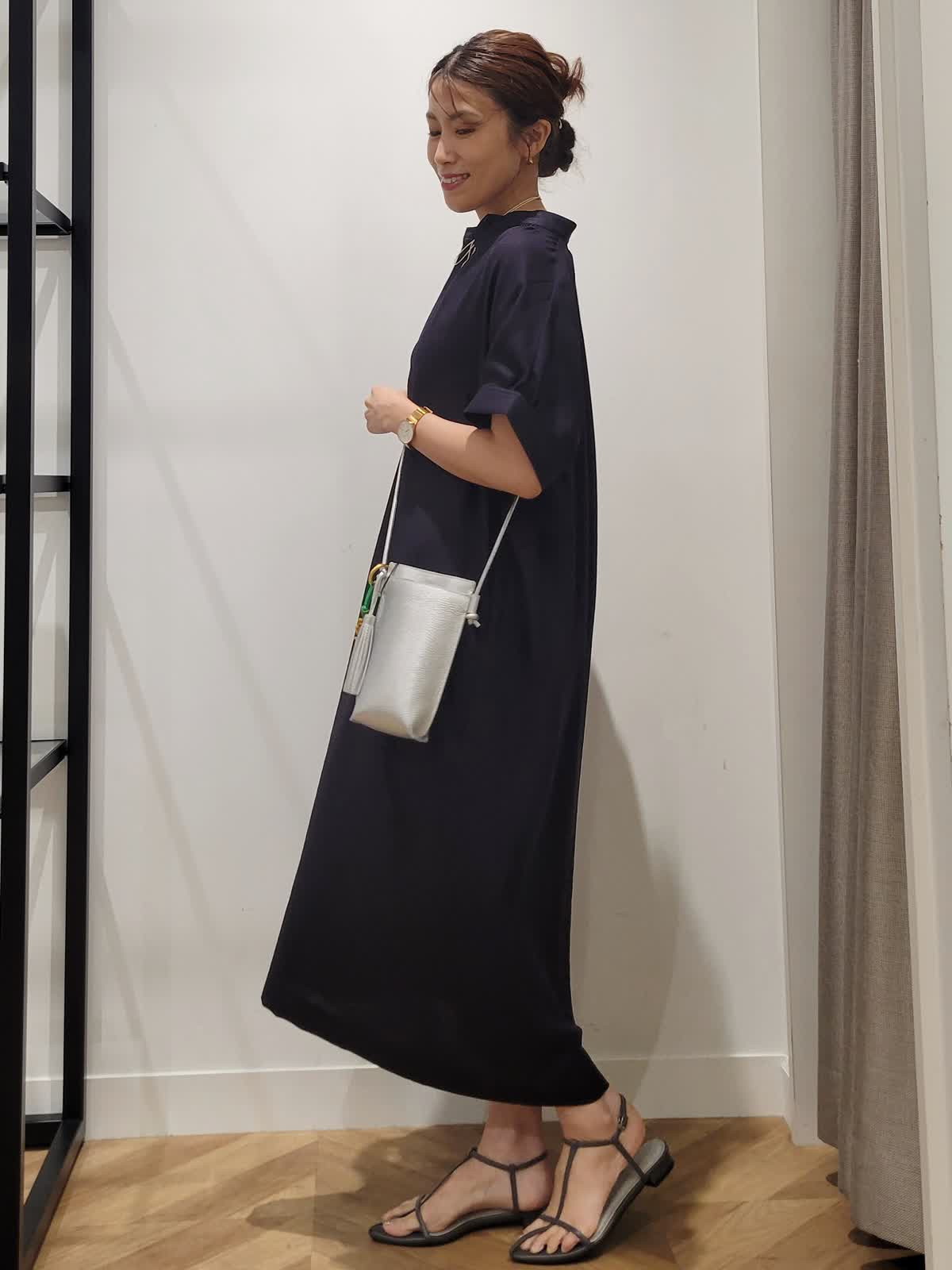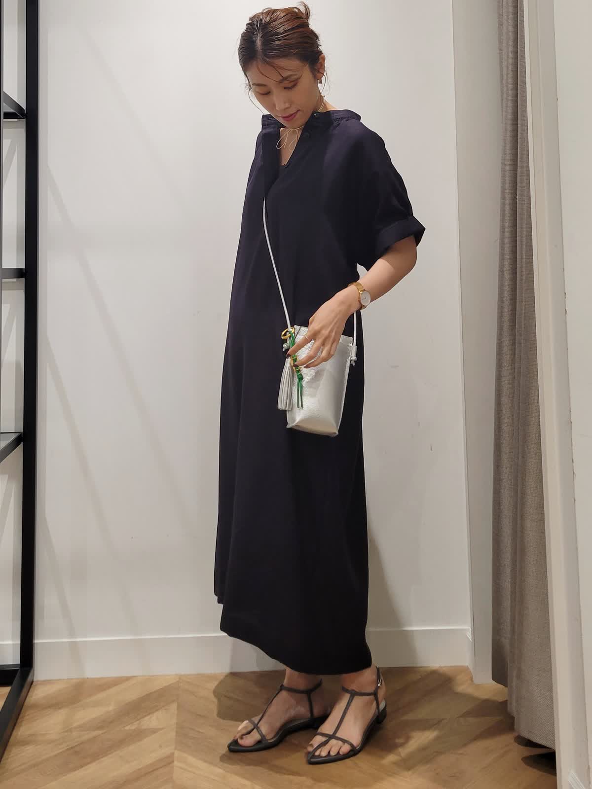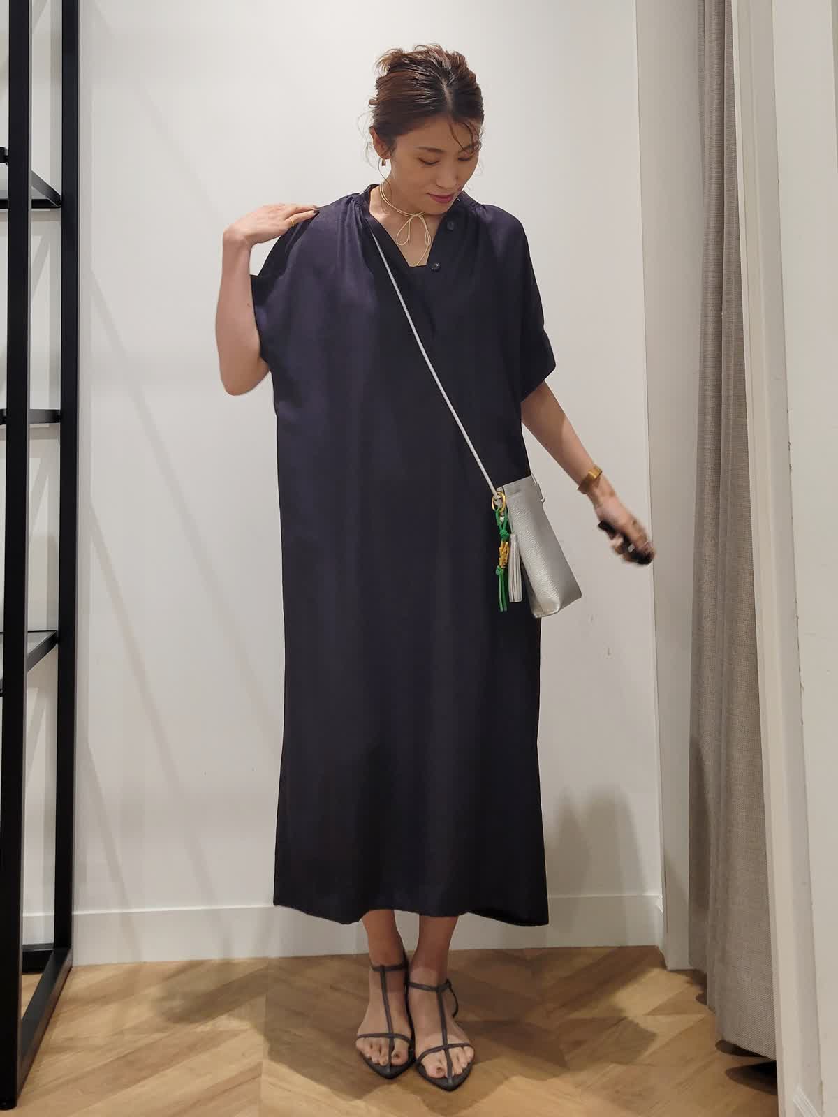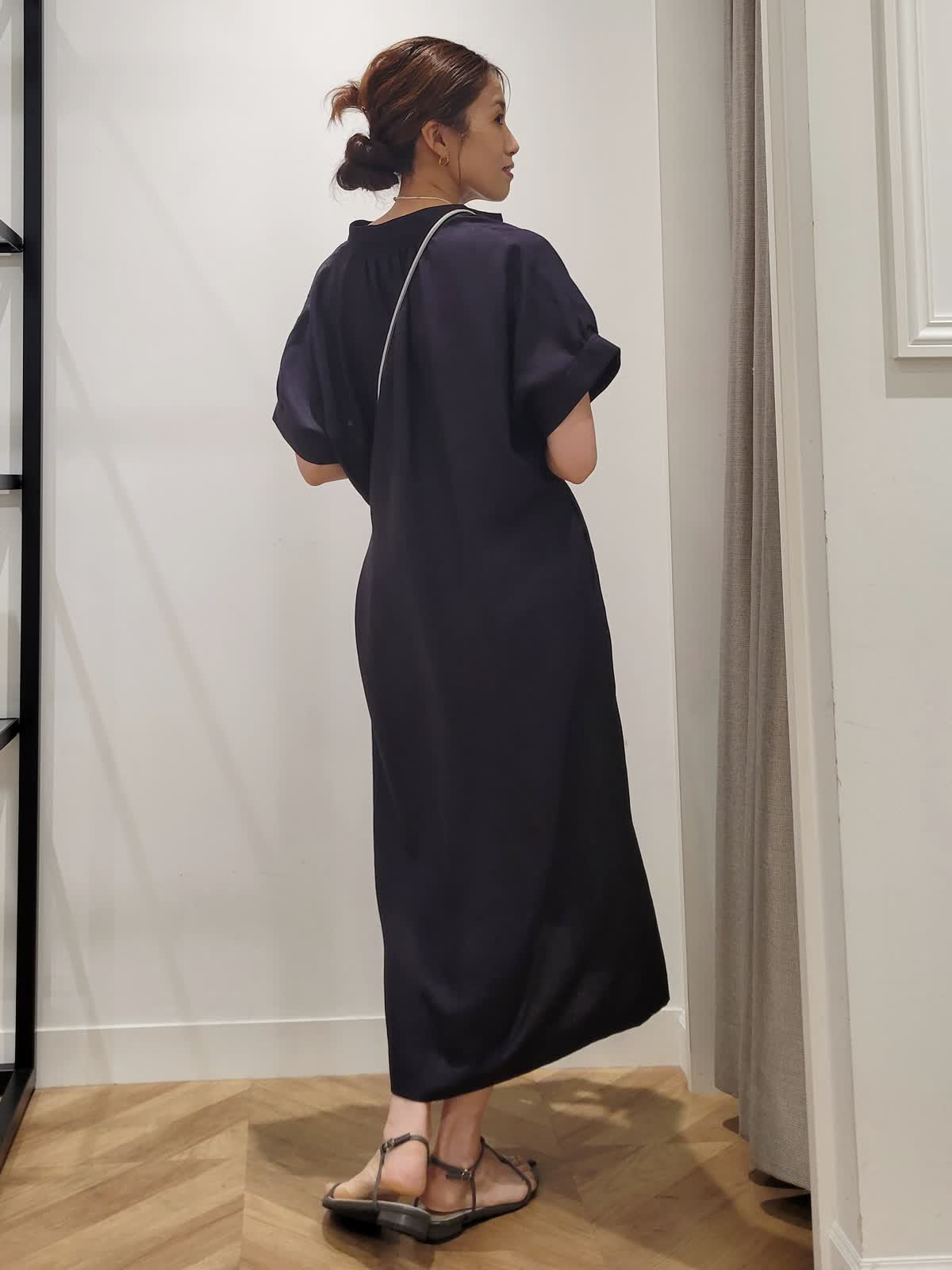 【着用サイズ】ワンピース:ネイビー:7号 リネンライクワンピース。 麻見えシリーズ。二の腕やウエストヒップなど気になるところをカバーしてくれるデザイン。ざっくり着ていただけるので風の通りもよく心地よく着ていただけます。胸元のボタンを開けてガラリと印象を変えて着ていただくのもおすすめです。気温が下がってきたらインナーに長袖をレイヤードしていただくのもおすすめです。ワイドパンツなどを合わせて裾から見せるのもお洒落。是非色々アレンジしてみてください♪