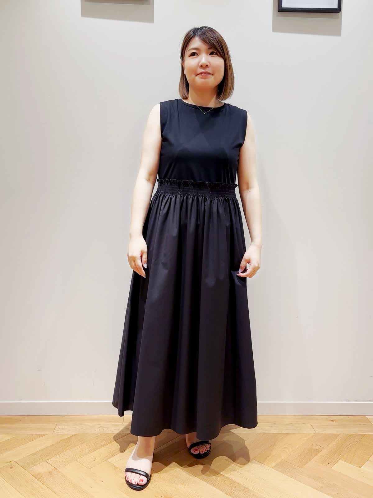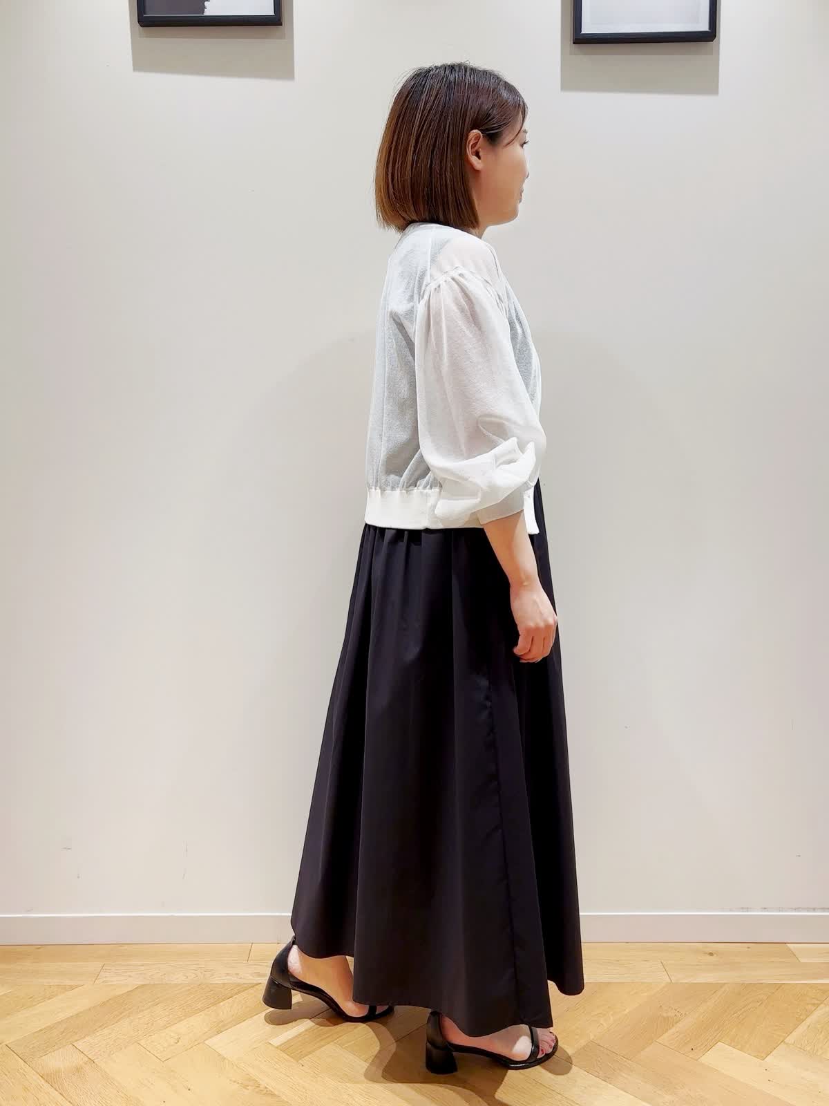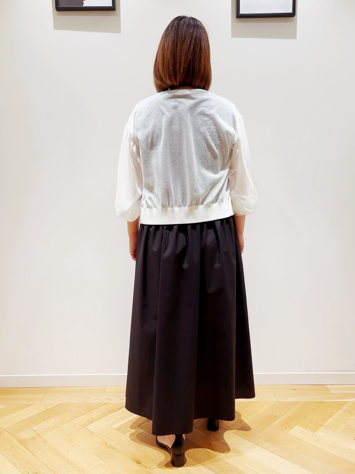 【着用サイズ】カーディガン:9号ワンピース:9号 【着用カラー】カーディガン:オフホワイト ワンピース:ブラック 楽ちんワンピースコーディネート。ウエストゴムでぴったりしすぎないストレスフリーのワンピースです。洗えてシワになりにくいのもポイント。カーディガンはシアー感があり夏から秋にかけて羽織れます。袖口を上げるとふんわりとしたボリューム感も楽しめます。女子会や旅行など、幅広く活躍します。