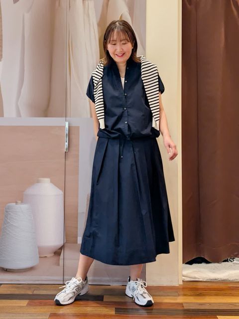【着用サイズ】アンサンブルニット:11号 スカート:フリー【着用カラー】アンサンブルニット:アイボリー スカート:ネイビー お出掛けコーディネートです。きちんと感のあるアンサンブルニットは、通勤にも休日にも着回せる万能アイテム。カーディガンとインナーセットでこのお値段はとてもお得です!インナーは長めの半袖なので、1枚で着ても安心。カーディガンもワンピースの上に羽織ったりと、単品ずつでも使いやすいです。スカートはふんわりシルエットが可愛く、シンプルで合わせやすいデザインです。コットンのような見た目ですが、ポリエステルでシワになりにくいのも嬉しいポイント。