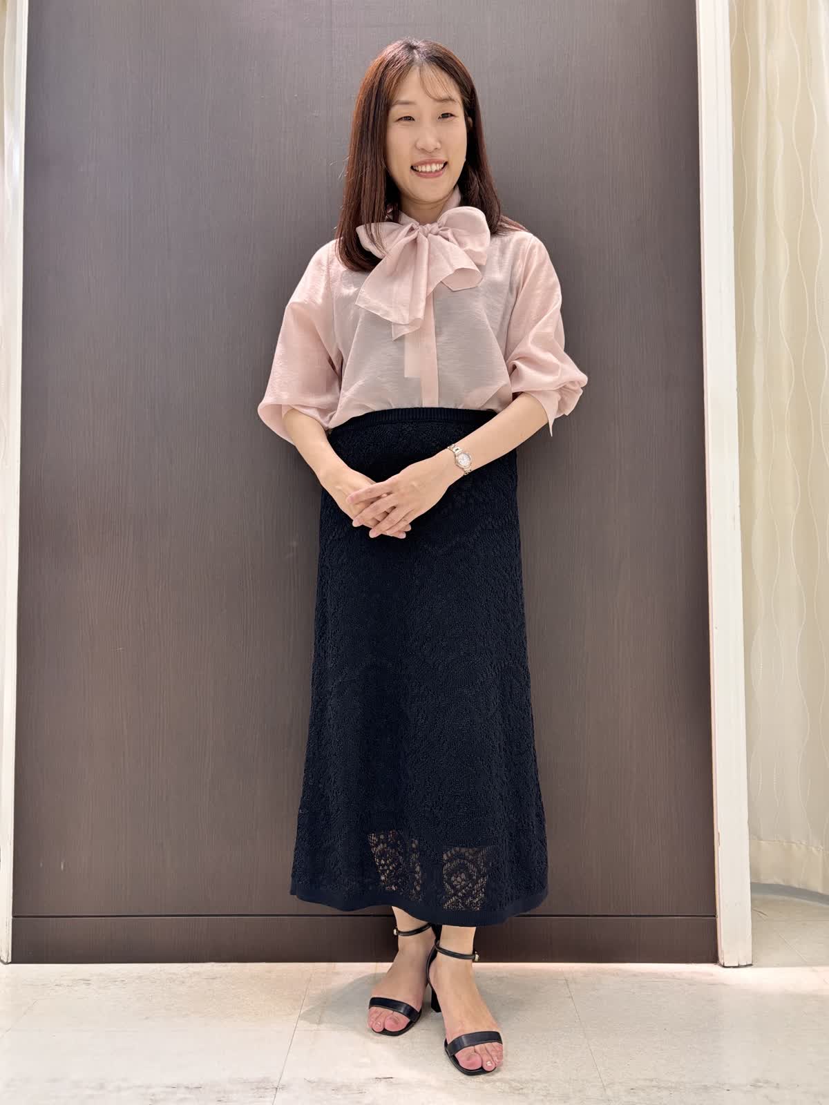 【着用カラー】ブラウス:ピンク スカート:ブラック