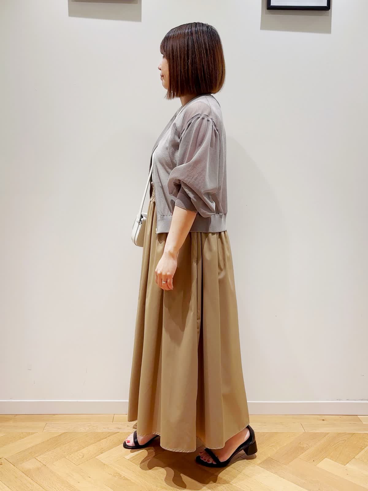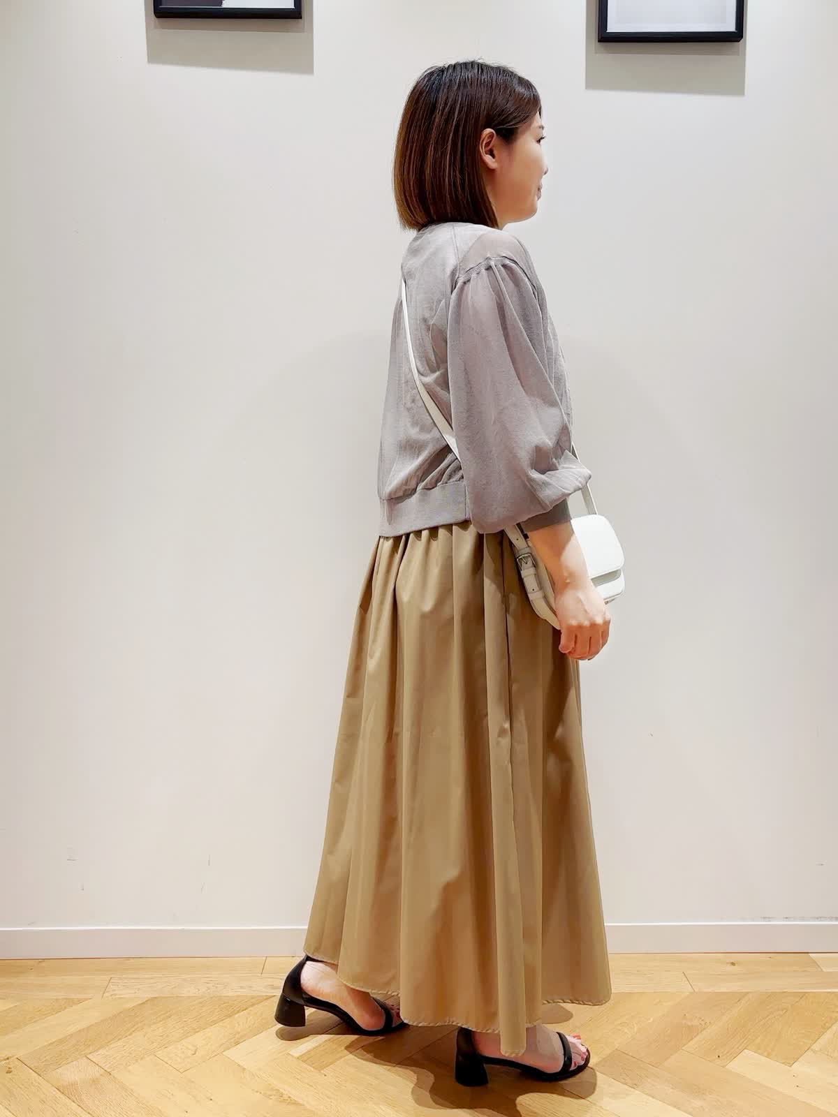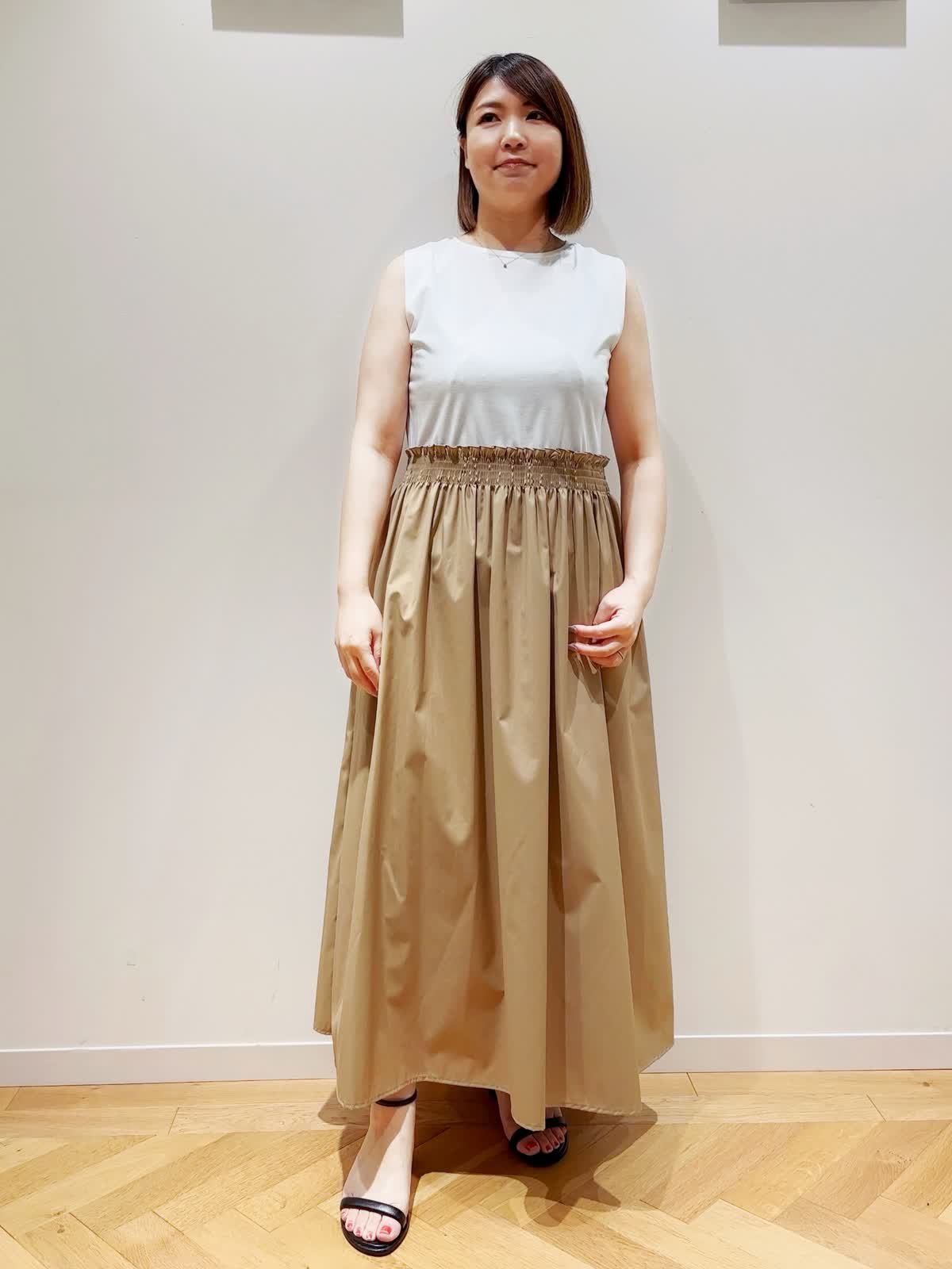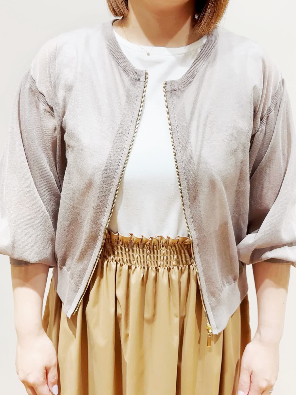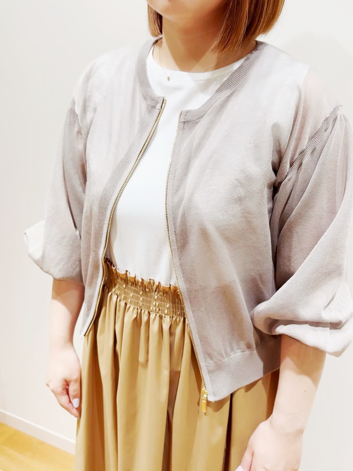 【着用サイズ】カーディガン:9号ワンピース:9号 【着用カラー】カーディガン:ミディアムグレーワンピース:ベージュ 長く涼しく着れるワンピースコーディネート。カットソーとスカート部分が異素材になっていて別々に着ているようなワンピースです。シロ×ベージュでカラーの配色もおしゃれです。ウエストの締めつけ感がないので、リラックスに着ていただけます。ノースリーブが苦手な方はジップカーディガンがおすすめです。二の腕もかくれて、着丈は短すぎず色々なボトムにも合わせやすいです。洗えるので夏に最適です。