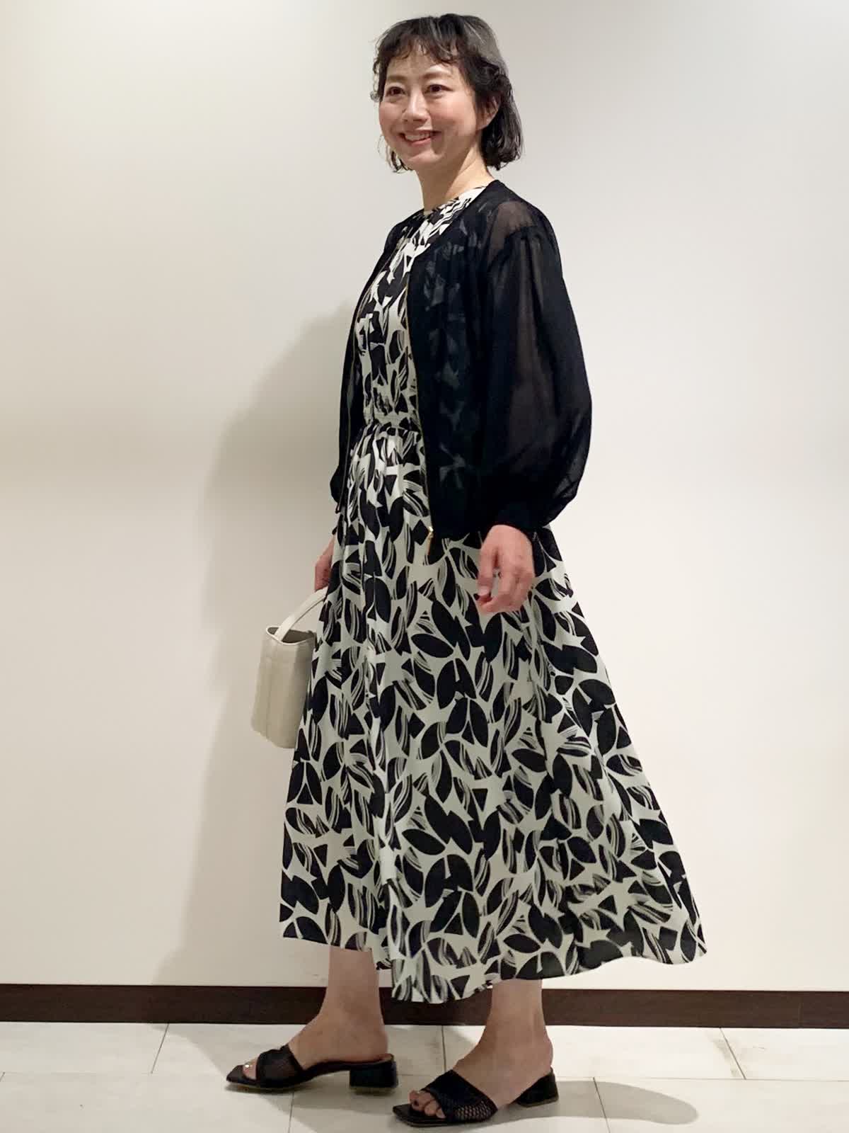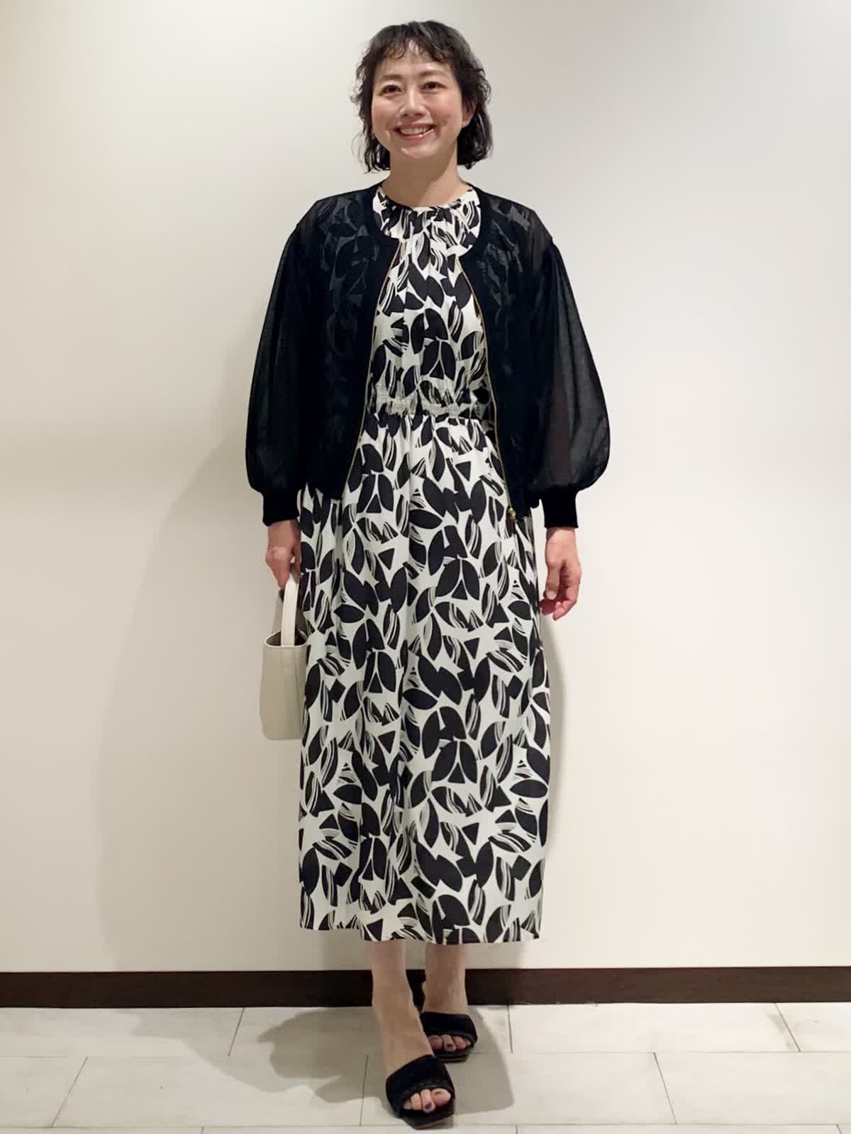 【着用サイズ】全て9号サイズ 【着用カラー】ワンピース:オフホワイト カーディガン:ブラック バッグ:オフホワイト カーディガンは袖のボリューム感が女性らしく、ほどよい透け感で冷房対策や日除けにも使える優秀アイテム。ワンピースはウエスト部分のゴムがメリハリをつけつつ、リラックスして着られるのでオススメです。
