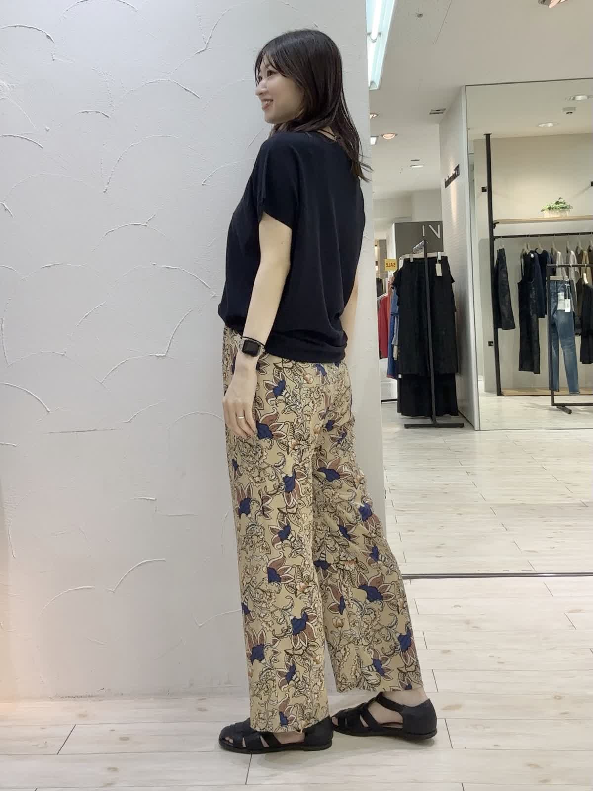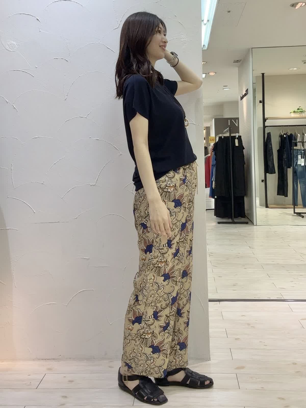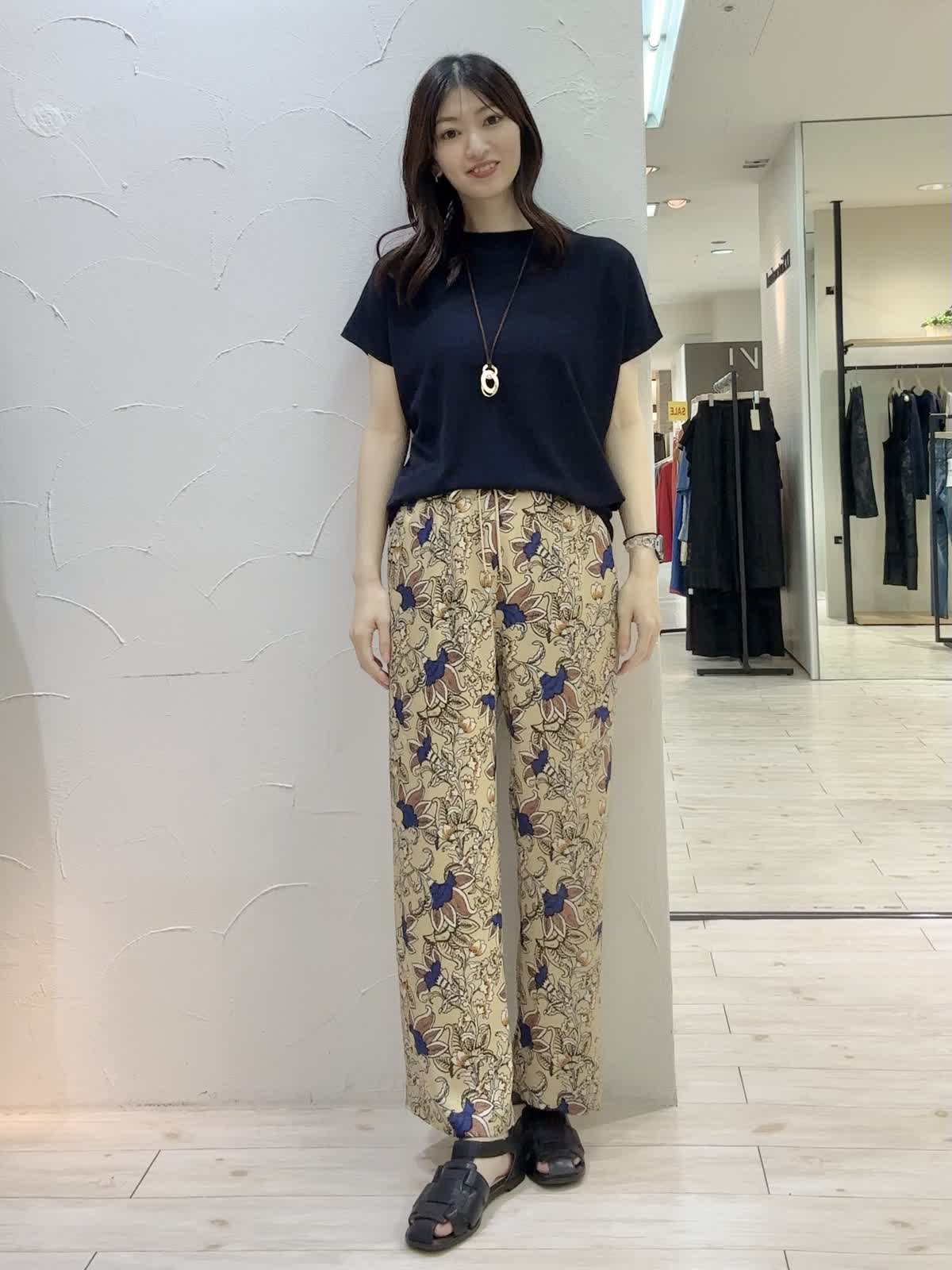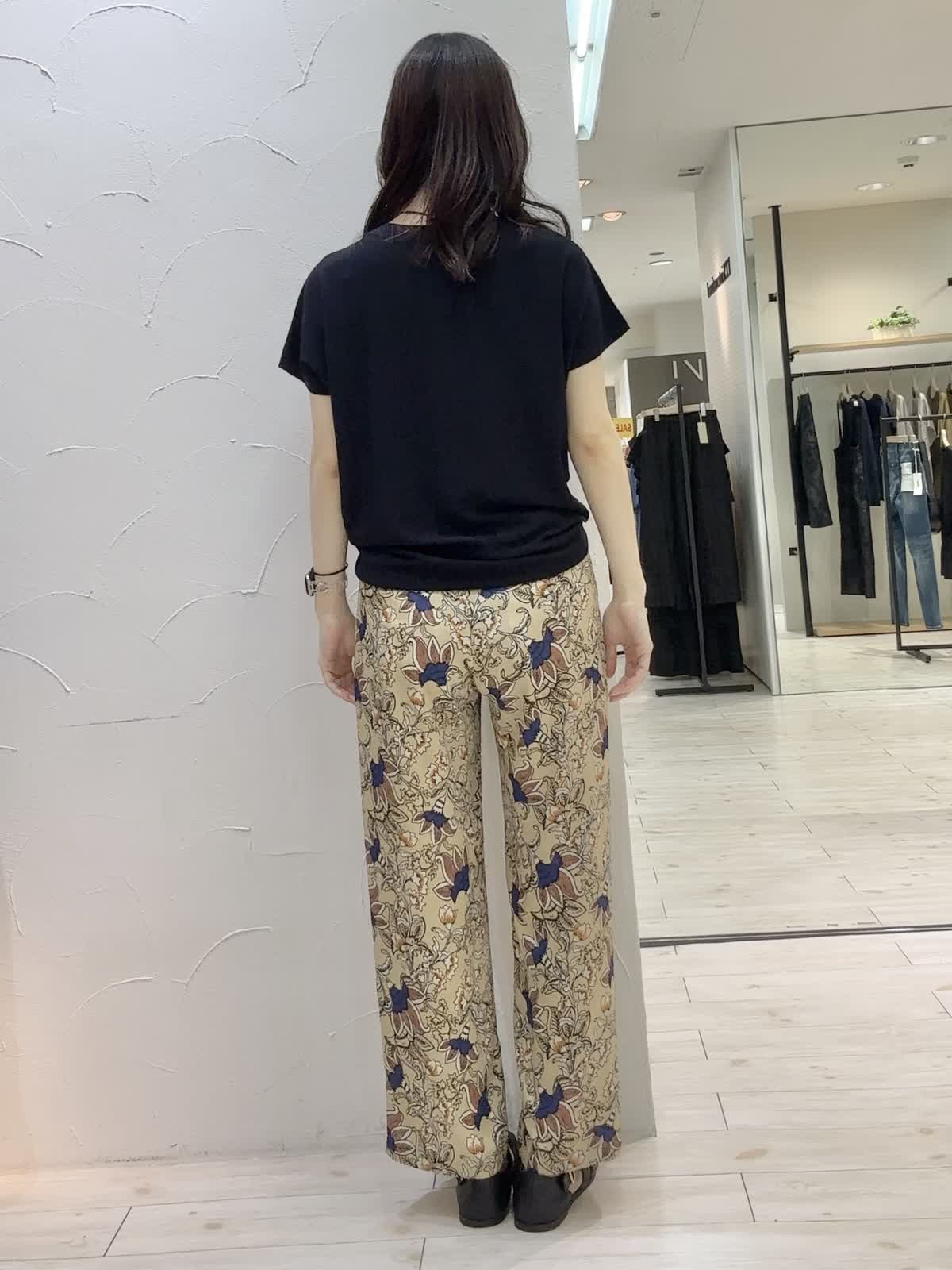 【着用サイズ】ニット:フリー パンツ:9号 【着用カラー】ニット:ネイビー パンツ:ベージュ 秋まで着れるカジュアルコーデ。サマーニットは毎年大人気商品!肌触りが良く、シンプルだけど上品な素材感で色違いで揃えたいです。存在感のあるプリントパンツと合わせてカジュアルコーデにしてました。イージーケアで暑い季節から秋まで大活躍です。
