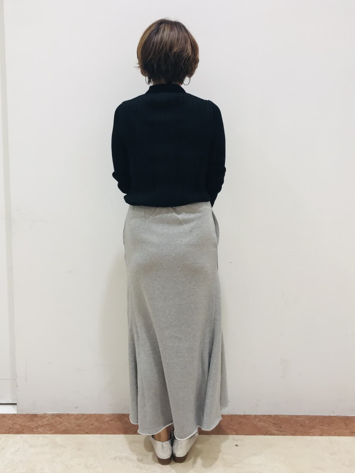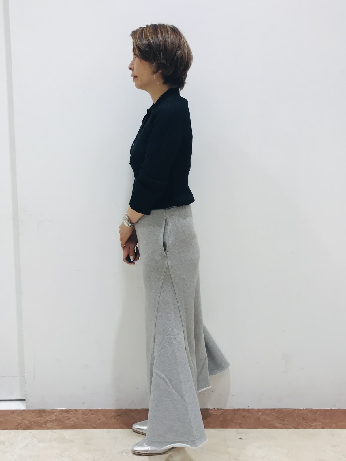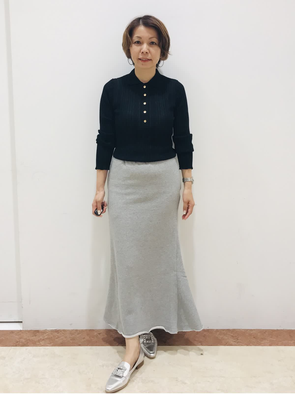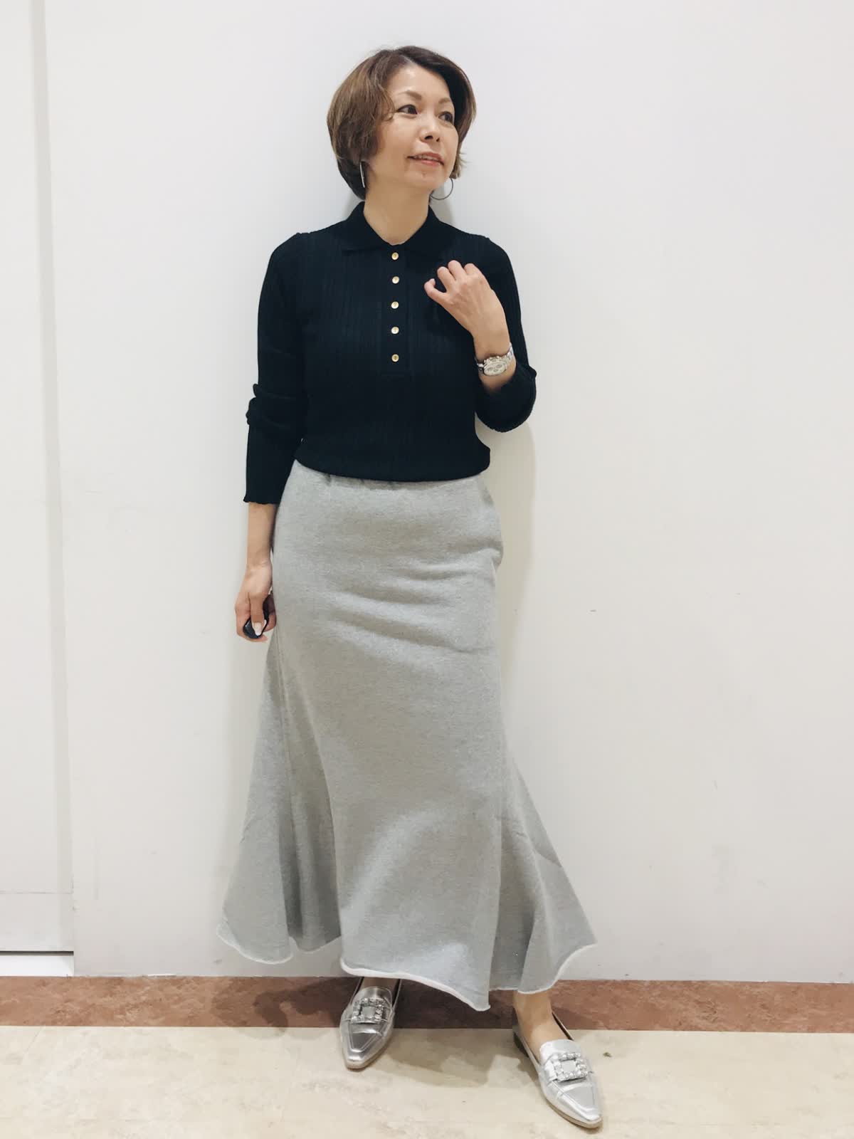 【着用カラー】ニット:ブラック キャミソール:ホワイト スカート:グレー 大人カジュアルコーデ