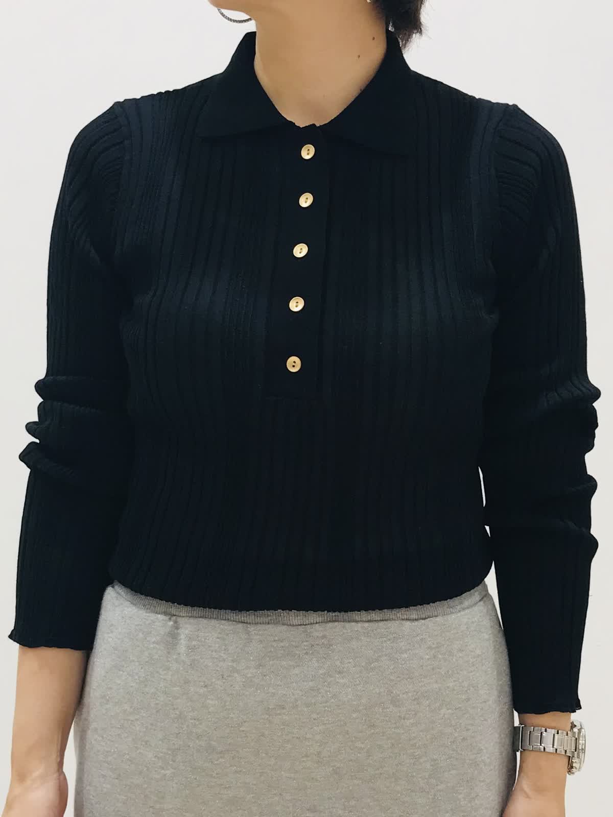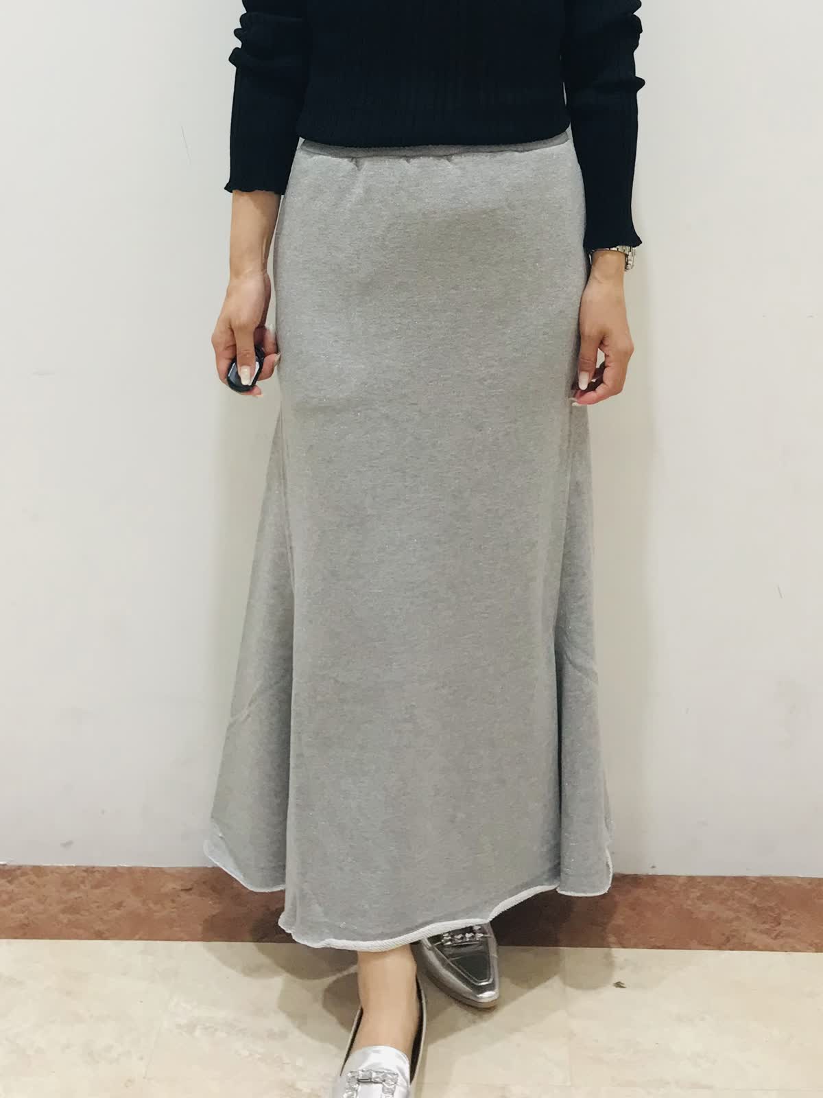 上品なシアー感が大人っぽいポロニットです。ピッタリし過ぎない程よいフィット感がおすすめポイントです。スエットロングスカートと合わせカジュアル過ぎず大人な印象を与えますよ。腰周りはスッキリと裾にかけてフレアが出るシルエットです。ウエストゴム仕様なのでストレスフリーなのもおすすめポイントです。