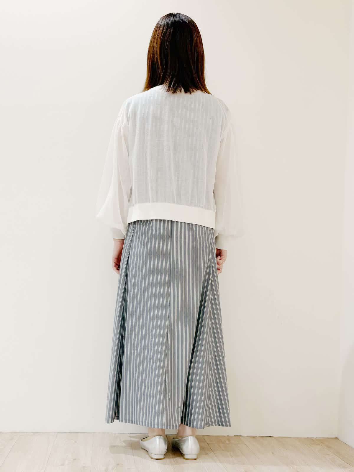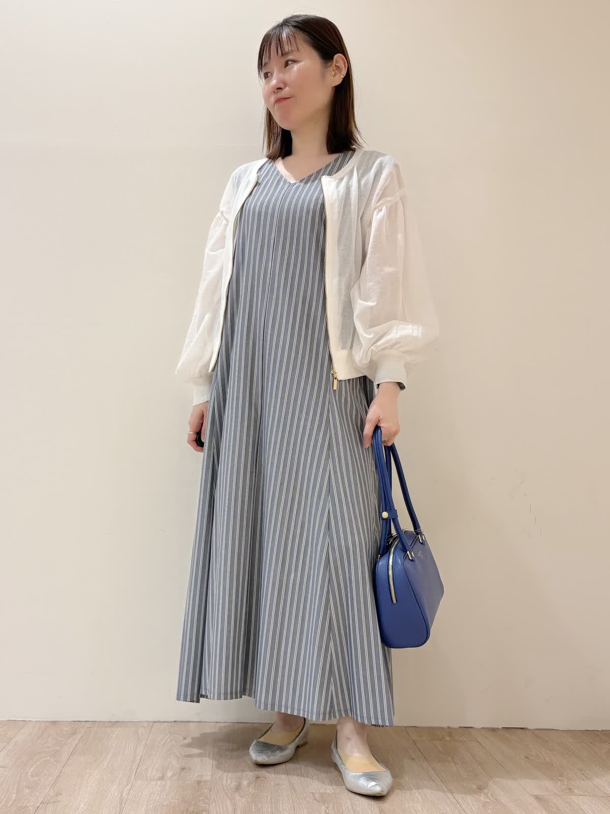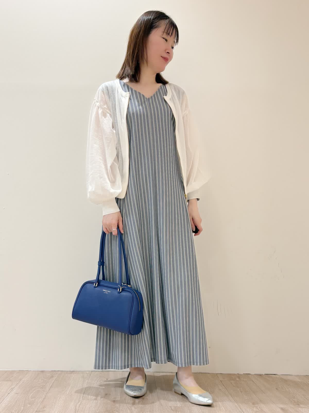 【着用サイズ】ワンピース:9号 カーディガン:9号【着用カラー】ワンピース:ネイビー カーディガン:オフホワイト 夏のおでかけスタイリング ストライプのワンピースは着心地が良いですしラインがすごく綺麗でスタイルアップしていただけます。シアーカーディガンはなつの羽織りにはかかせないアイテムです。