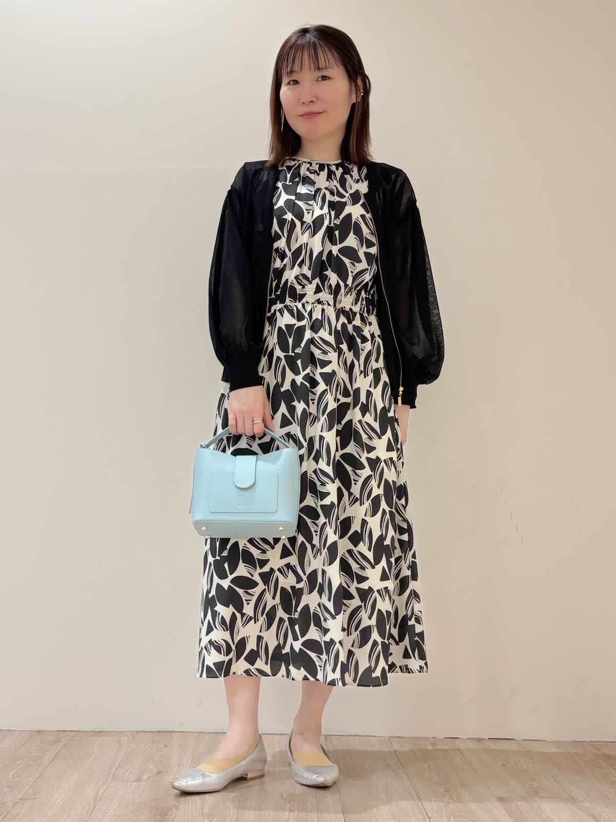 【着用サイズ】ワンピース:9号 カーディガン:9号【着用カラー】ワンピース:オフホワイト カーディガン:ブラック 夏のお食事スタイリング。 シワになりにくいとても着心地の良いワンピースです。ウエストはゴム仕様になっておりスッキリとしたシルエットです。