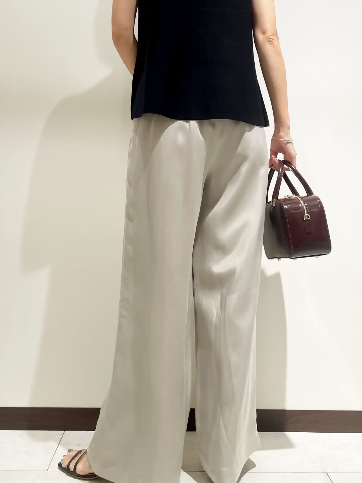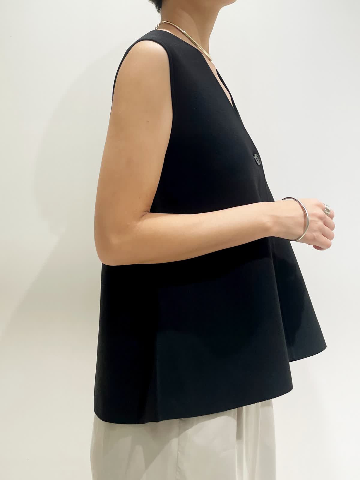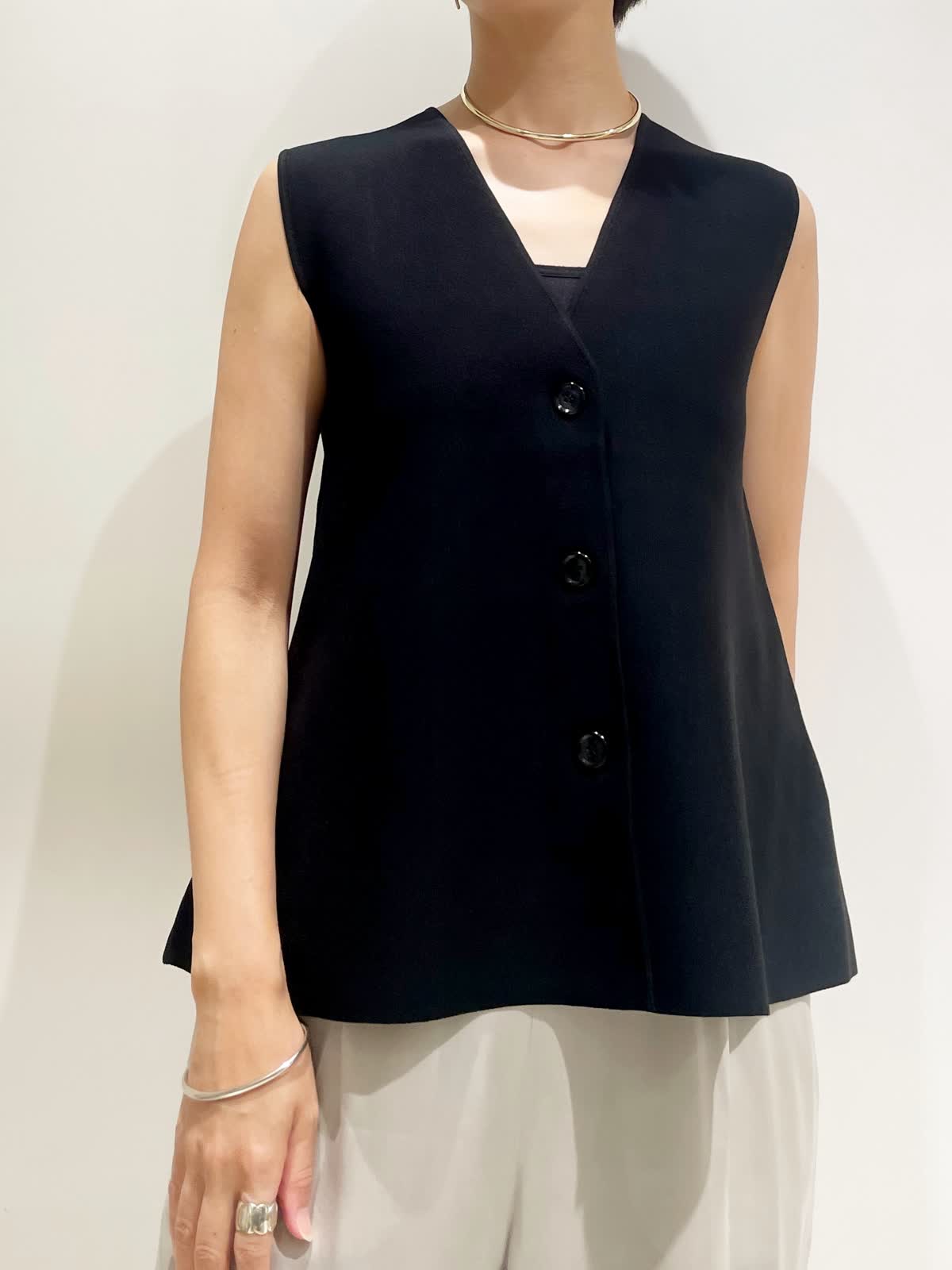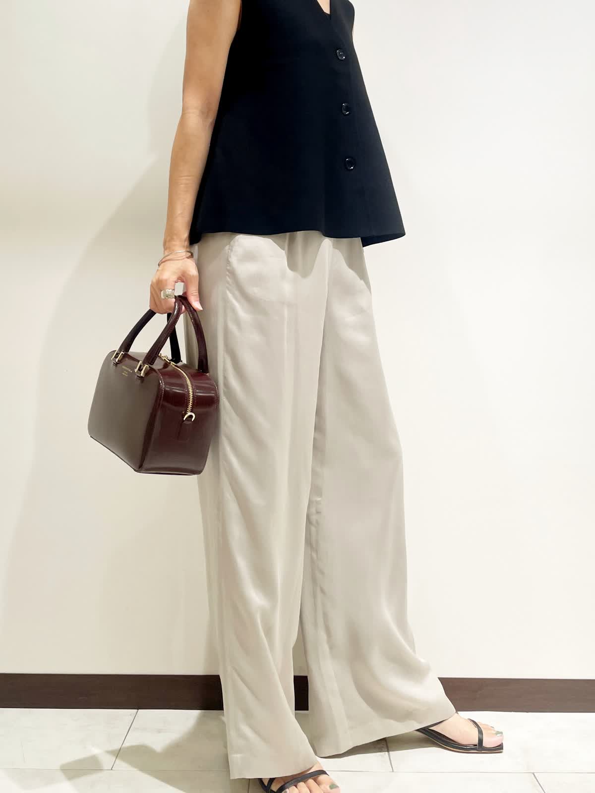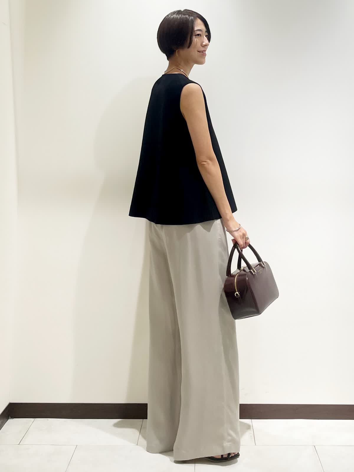 【着用サイズ】全て9号 【カラー】ジレ:ブラック パンツ:グレーベージュ バック:ワイン チョーカー:ゴールド 【コーディネートテーマ】 夏から秋へのスイッチコーデ 【サイズ感】 163p 普段9号サイズ 骨格ウェーブで上半身に比べてヒップがやや大きい ニットジレ:標準 パンツ:標準 ※ウエストのゴムですが、そこまで伸びないのでいつものおサイズでお選びいただくと良いと思います。