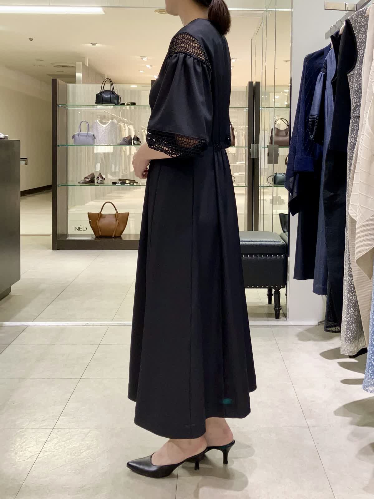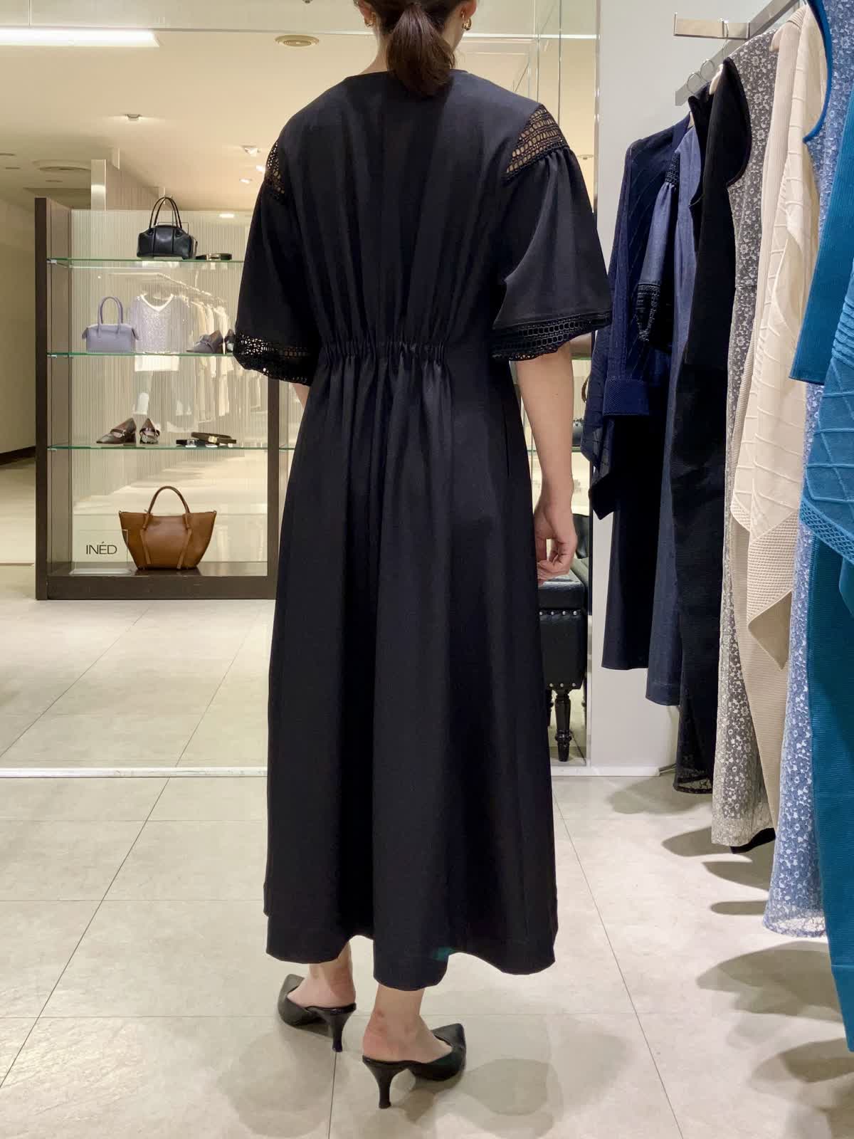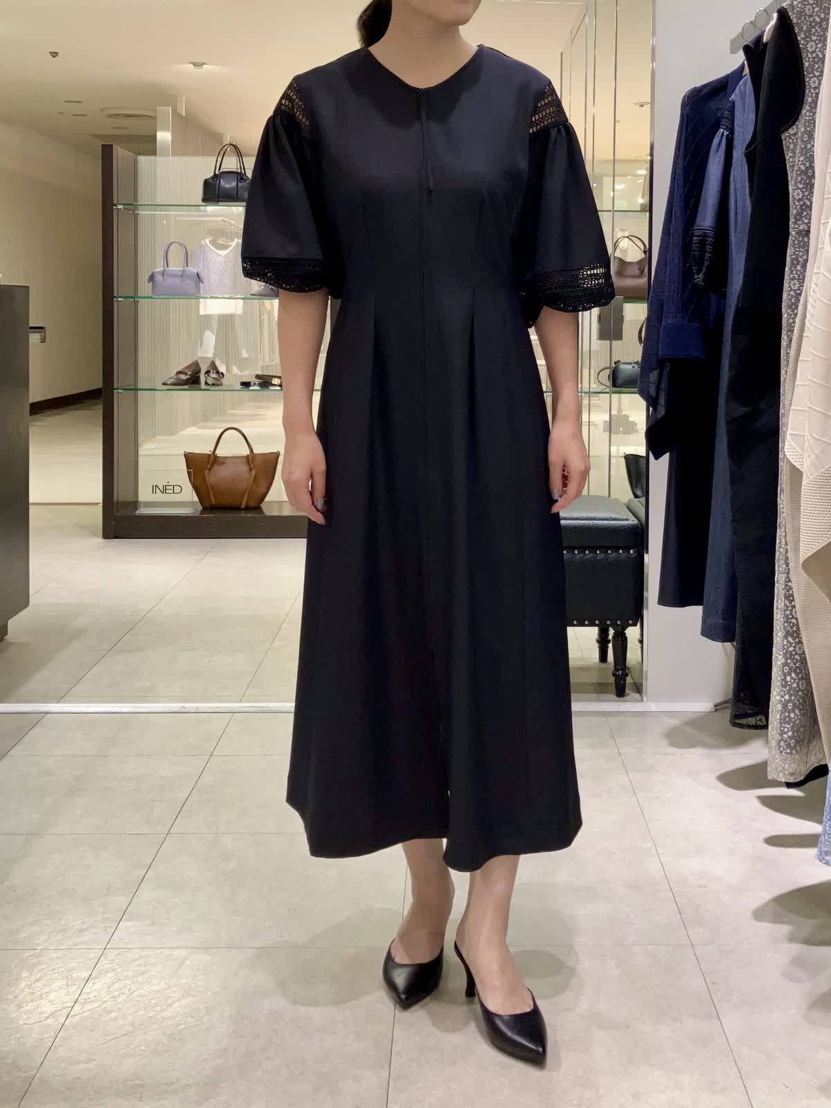 【着用サイズ】ワンピース:9号【着用カラー】ワンピース:ブラック きちんと感がありながら、フォーマル過ぎず、カジュアルなお食事シーンやおでかけシーンに使えるワンピース。ウエストに切り替えがあり、身体のラインを美しく魅せてくれます。フロントはジップ仕様のため着脱もラクチン。シワになりにくくて洗えるので長時間座る日も安心です。