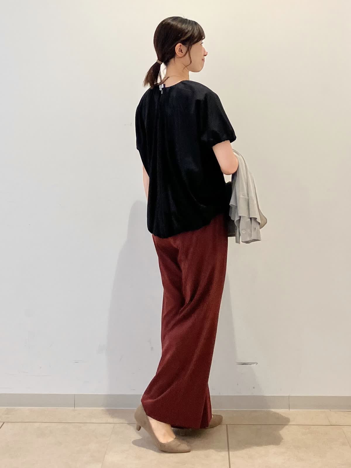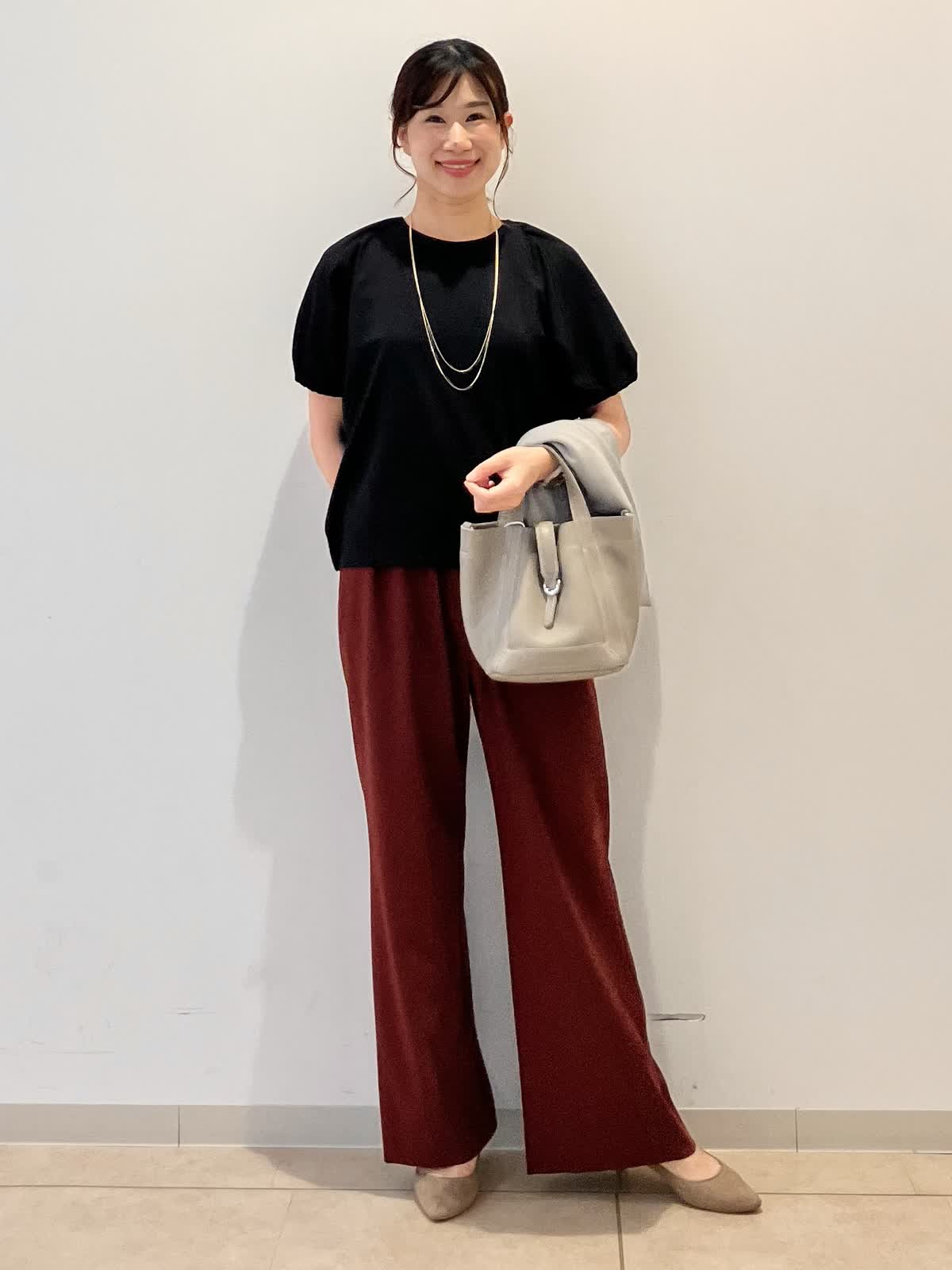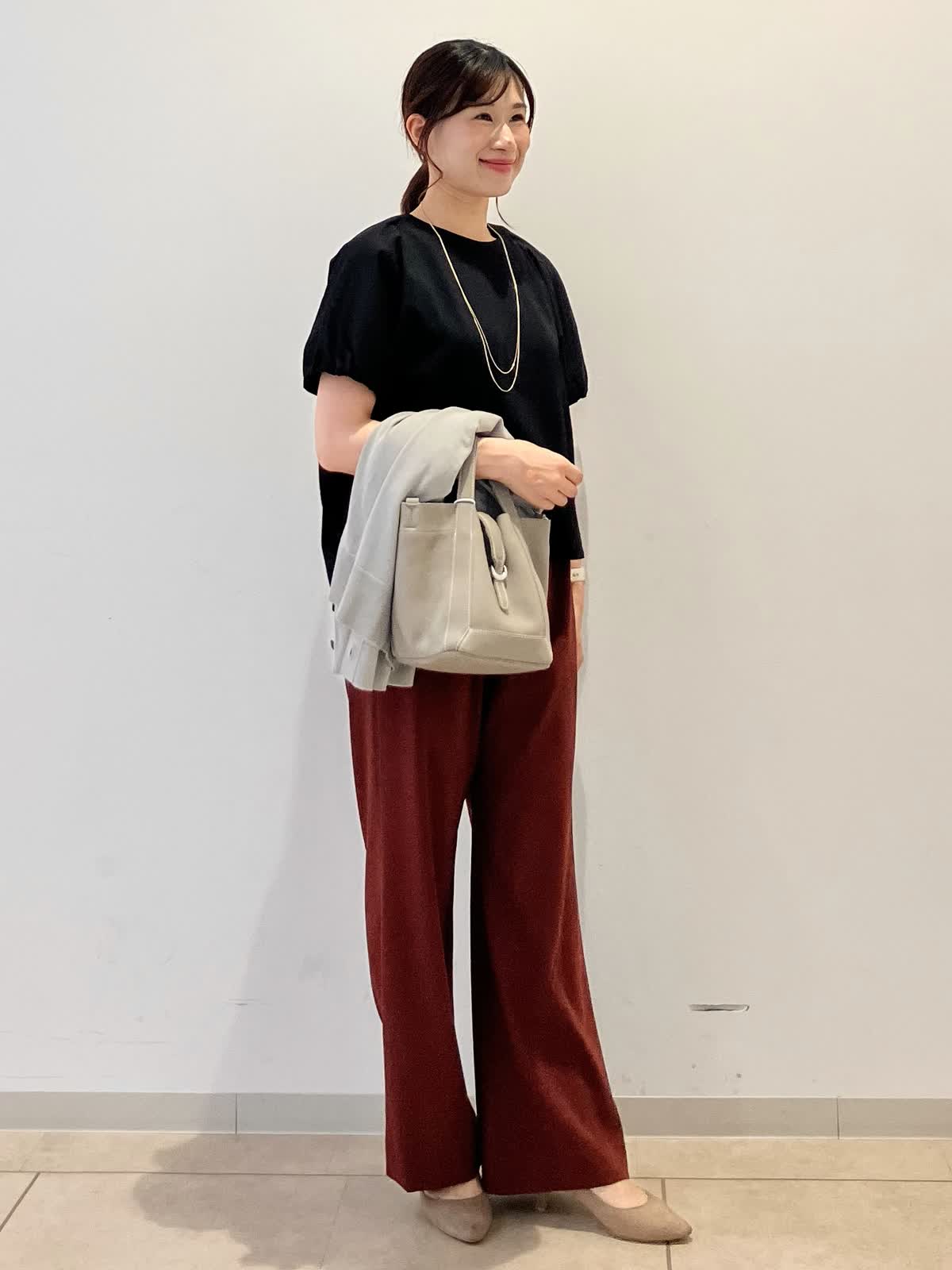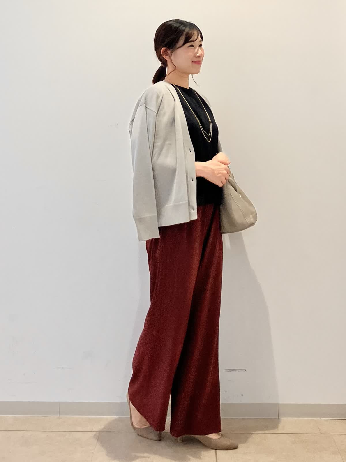 【着用サイズ】カーディガン:フリー カットソー:フリー パンツ:9号 「上品オフィスコーデ」 秋の始まりといえば、ブラック×ボルドーは相性抜群です! グレーのカーディガンで柔らかな印象に。冷房対策など、ほぼ閉まっておくことのないくらい、肌心地が良い万能カーディガンです。インナーはまだ暑いので、長めの半袖で!艶のある生地で上品さと清潔さときちんと感を自然に演出できます♪
