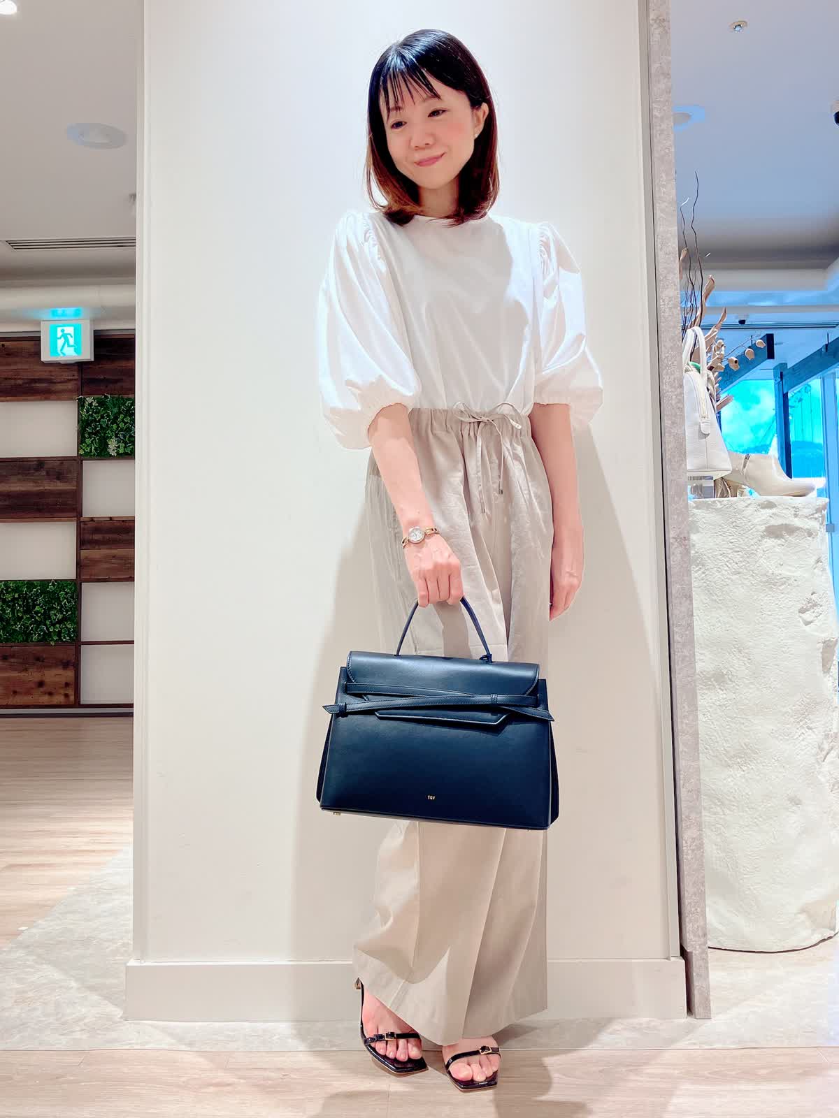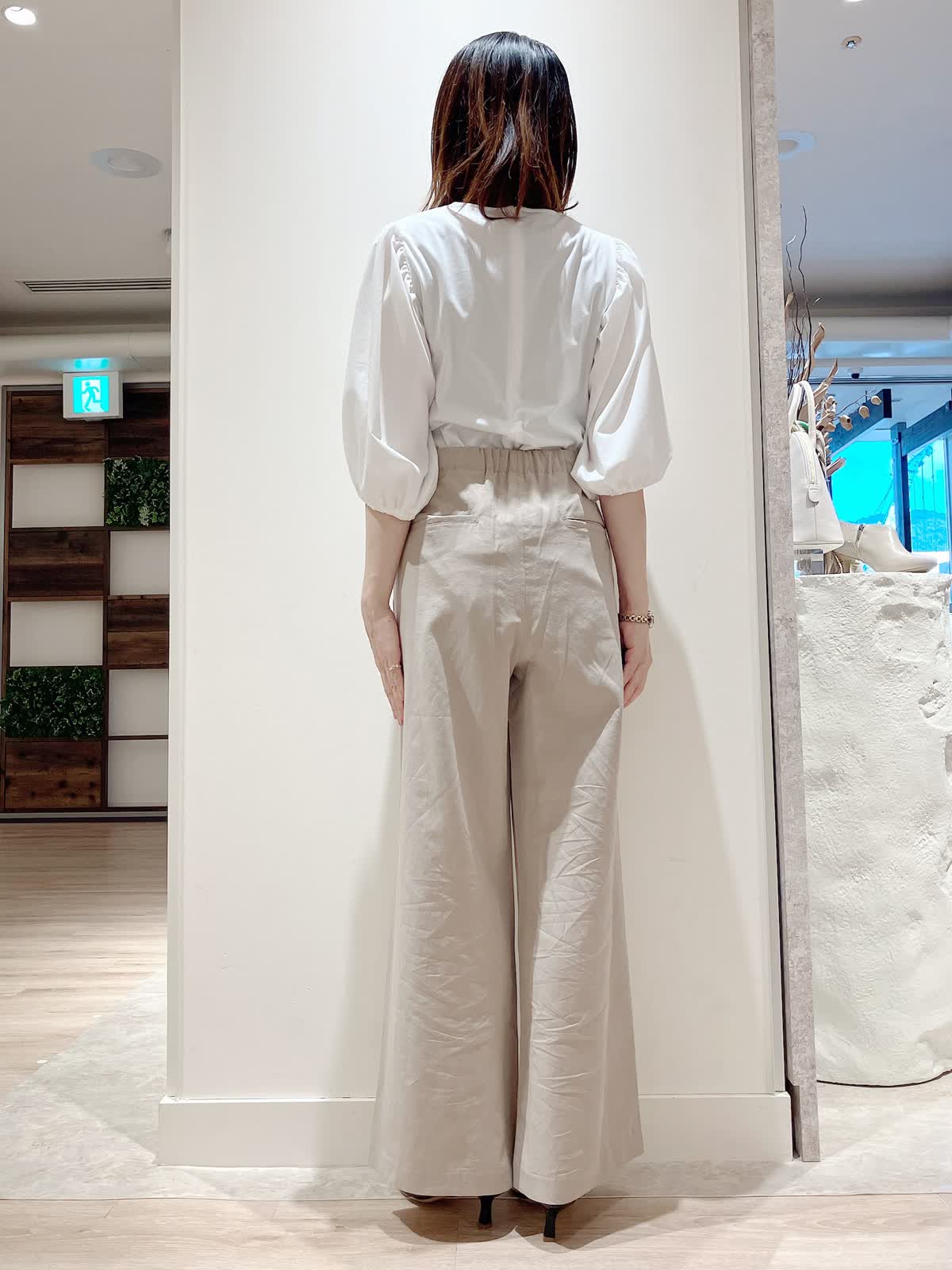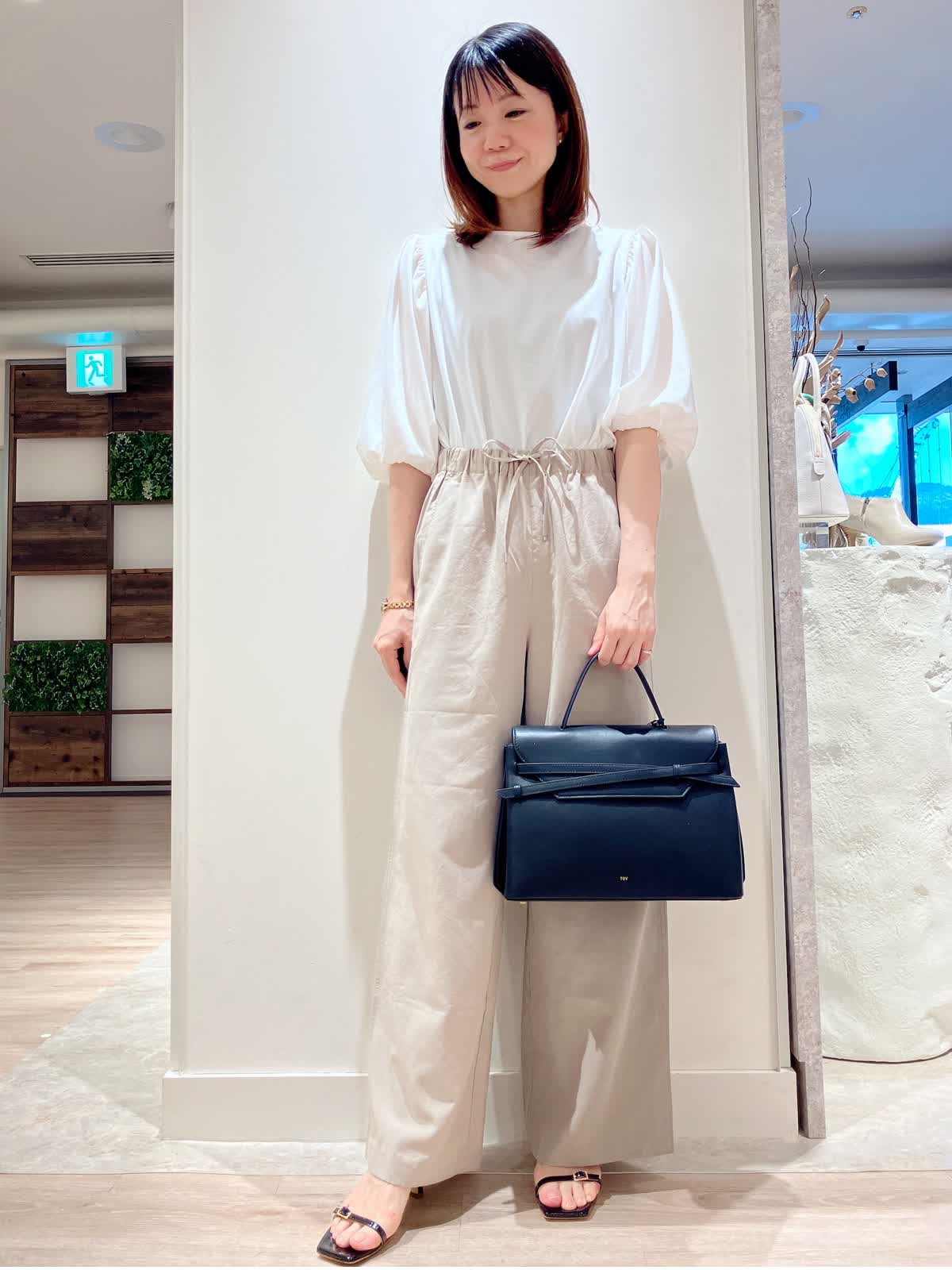 【着用サイズ】カットソー:9号 パンツ:7号 【着用カラー】カットソー:オフホワイト パンツ:ベージュ コーディネートのテーマは綺麗めカジュアルな通勤スタイリングです。 パフスリーブのカットソーは、さらっとした着心地で今からの時期大活躍。セットインスリーブでスッキリ見えも叶います。程よくゆるっとパンツにインしてきっちり見えで、お仕事着にもおすすめです。