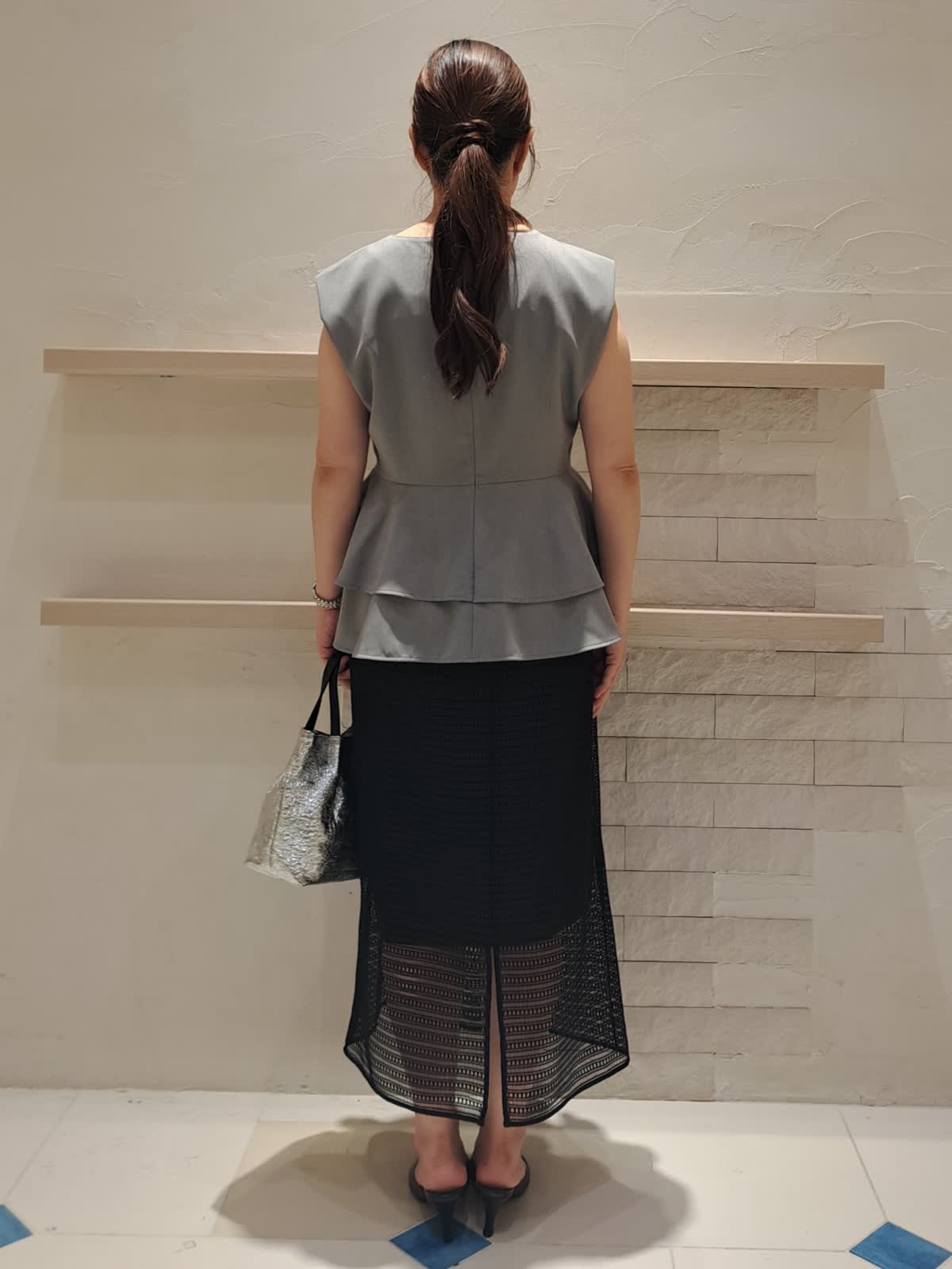 【着用サイズ】ブラウス:フリー スカート:フリー バック:フリー 【着用カラー】ブラウス:グレー スカート:ブラック バック:シルバー デートやお出かけにぴったり!ストーリーコラボブラウスコーディネート。一枚でも様になるデザインブラウス。スタイルアップして見える一着です。ボトムは透け感がキレイなスクエアレーススカート。リッチ感があり、華やかな印象に。