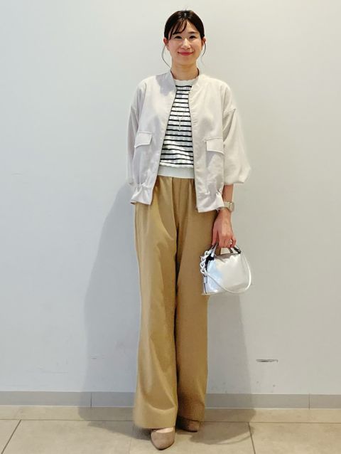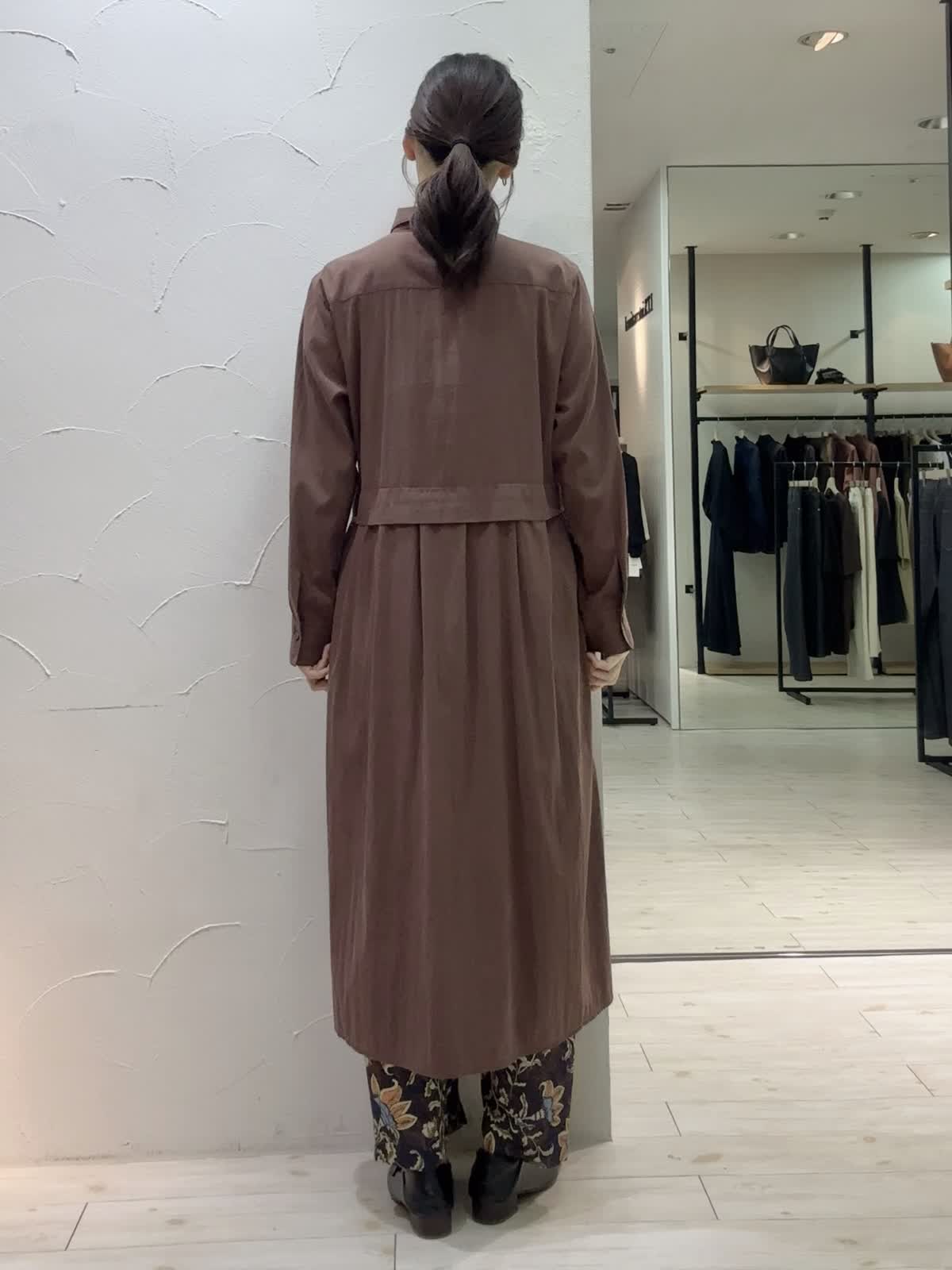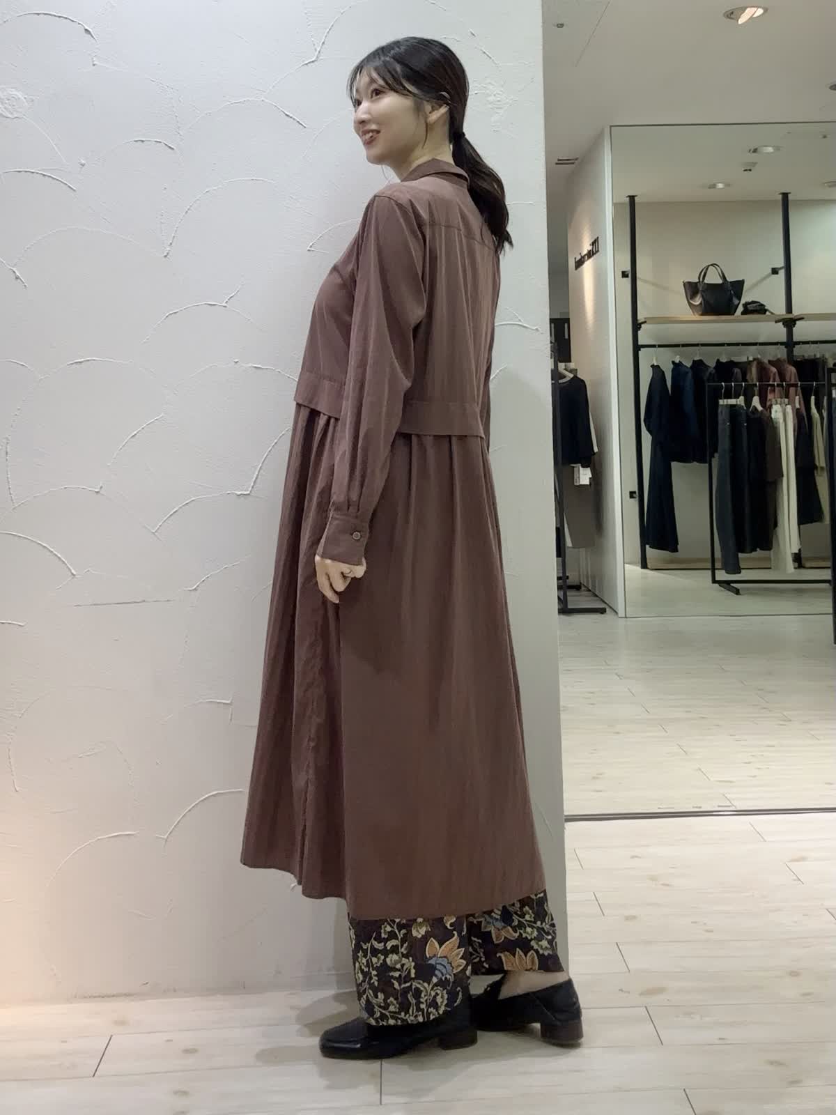【着用サイズ】ワンピース:9号 パンツ:9号 【着用カラー】ワンピース:ボルドー パンツ:ネイビー 秋先取りのリラックスコーデ。ワンピースがウエスト位置からギャザー仕様になっており、スタイルアップして着用できます。締め付け感がなく、一枚でもおしゃれに着こなせます。プリントパンツをレイヤードしてこなれ感のある雰囲気にしてみました。