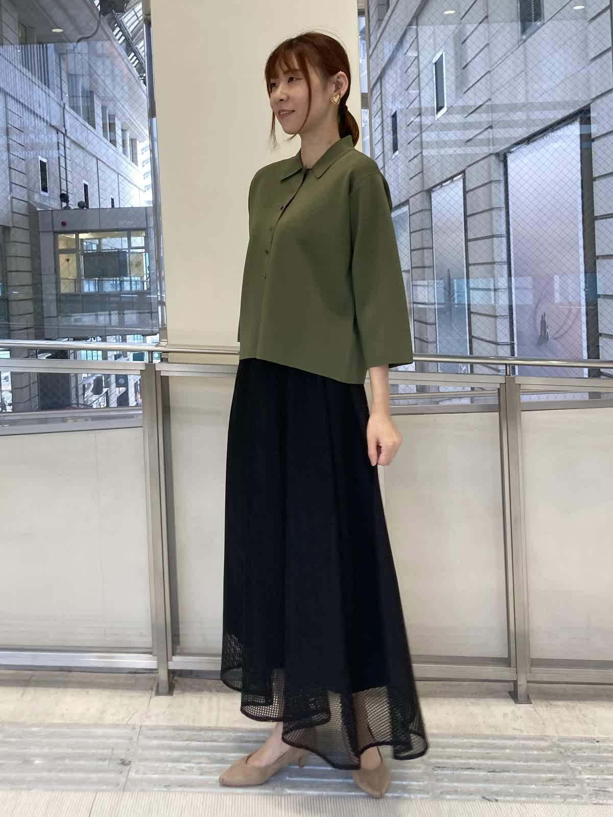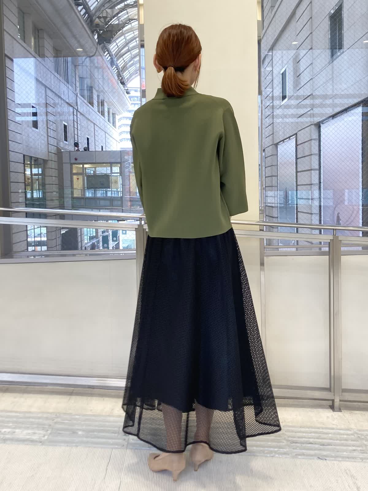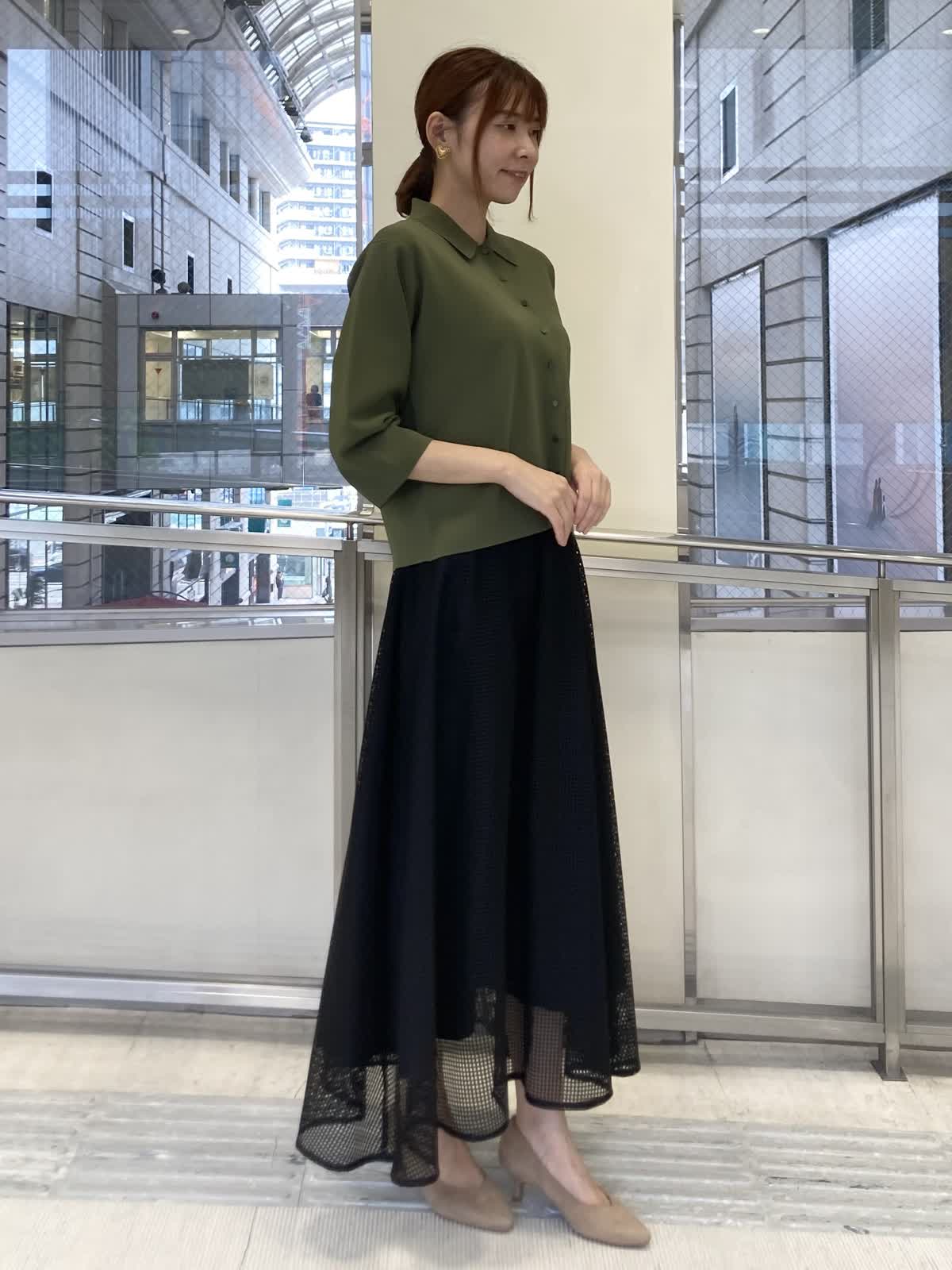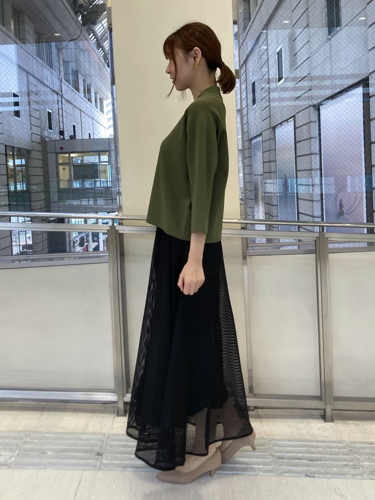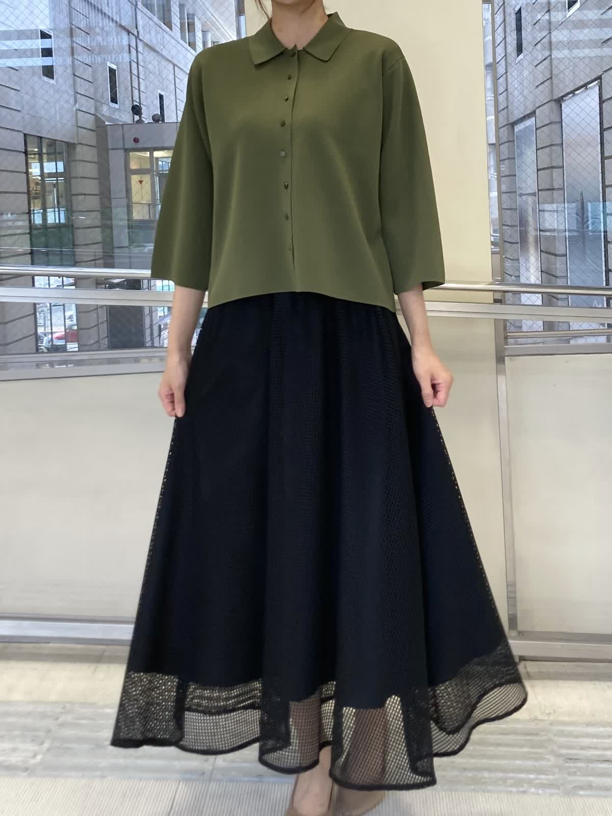 【着用サイズ】ニット : フリー スカート : 9号 【着用カラー】ニット:カーキ スカート : ブラック お食事会コーデ。 スッキリ見えするニットにスカートを合わせモードな雰囲気にしました。 伸縮性があり、とても着心地がよいニット。ボタンを閉めて着てもいいですし、開けてちょっとした羽織として着ても◎。 お袖がしっかりお肘まであるので、二の腕がカバーできます。 スカートはレースの透け感が重くなりすぎずに軽やかな印象にしてくれます。