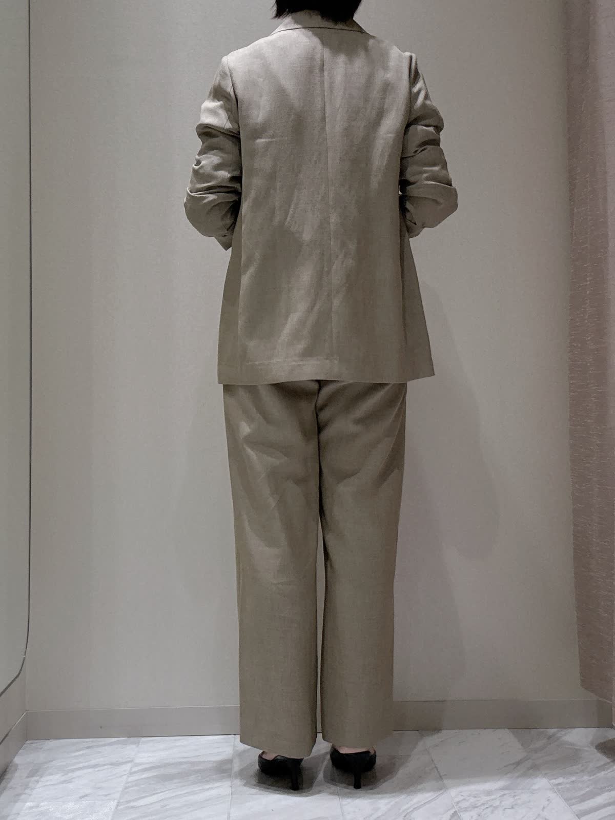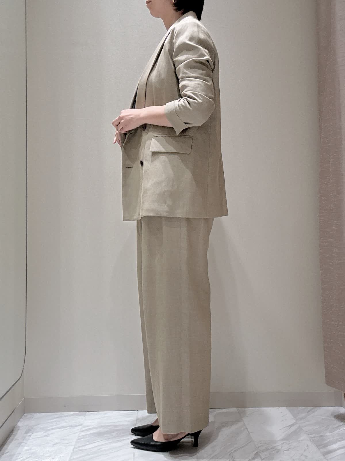 【着用サイズ】全て:9号 【着用カラー】ジャケット:ベージュ ブラウス: ブラック パンツ: ベージュ ジャケットはヒップにかかる長めの着丈でモダンなバランスの一着。きちんと感がありつつも、さらりと着用いただけます。パンツスタイルにはもちろん、ボリュームのあるスカートやワンピースなどとも好相性です。同シリーズのアイテムとのセットアップスタイルもおすすめ。 手洗い可能。