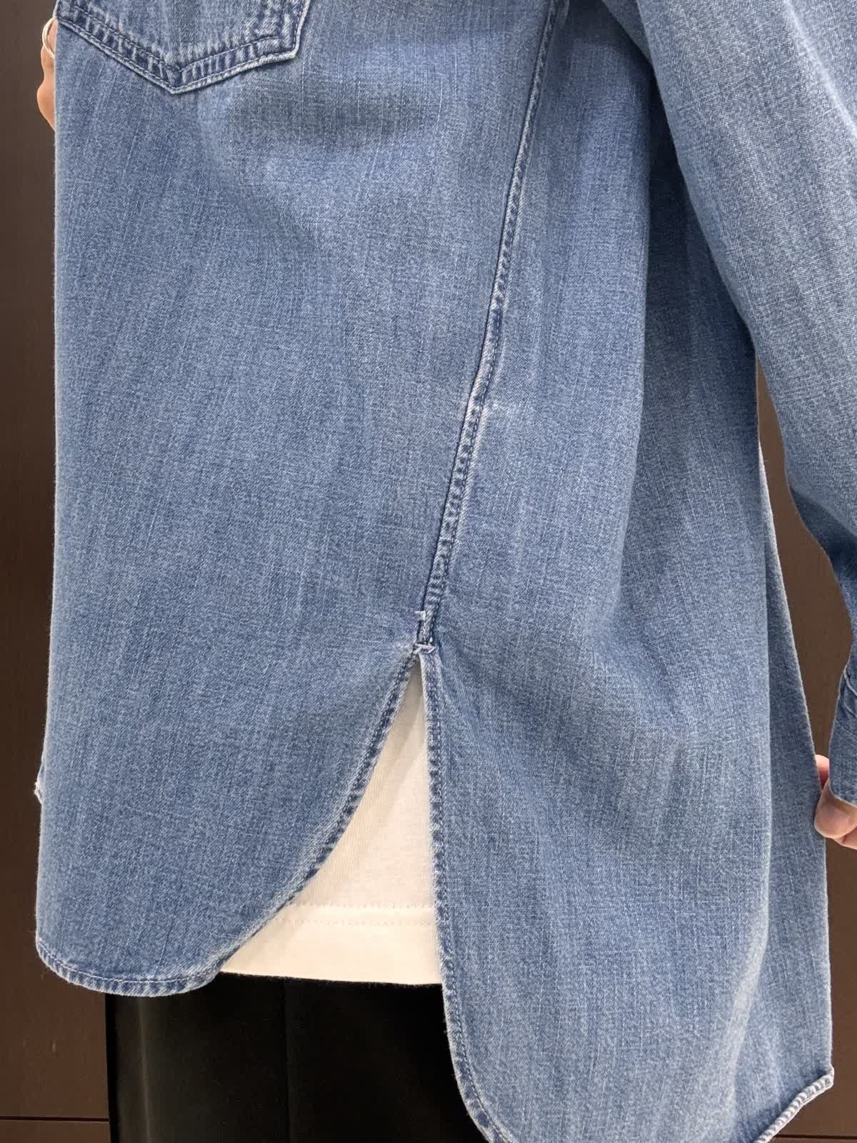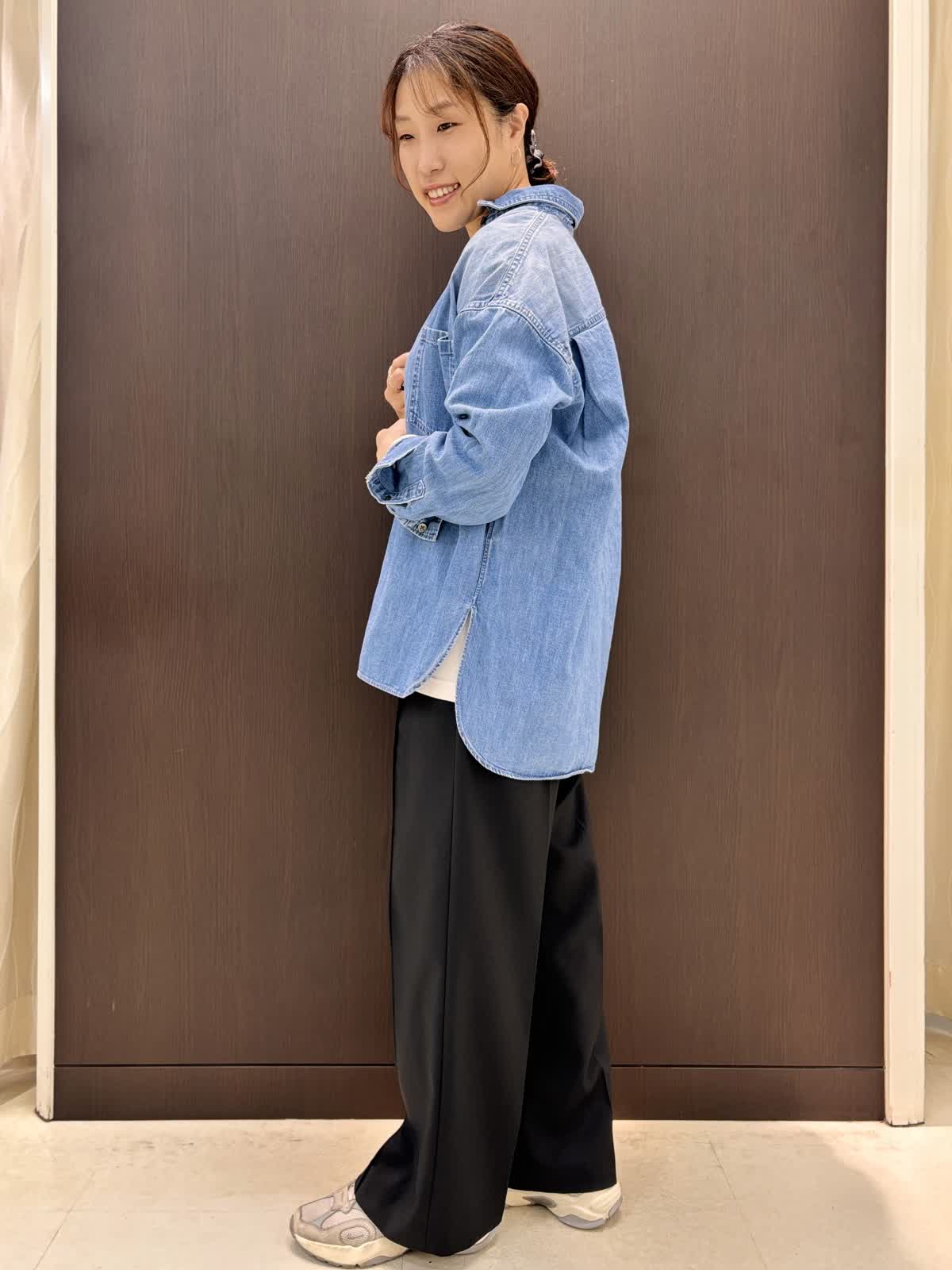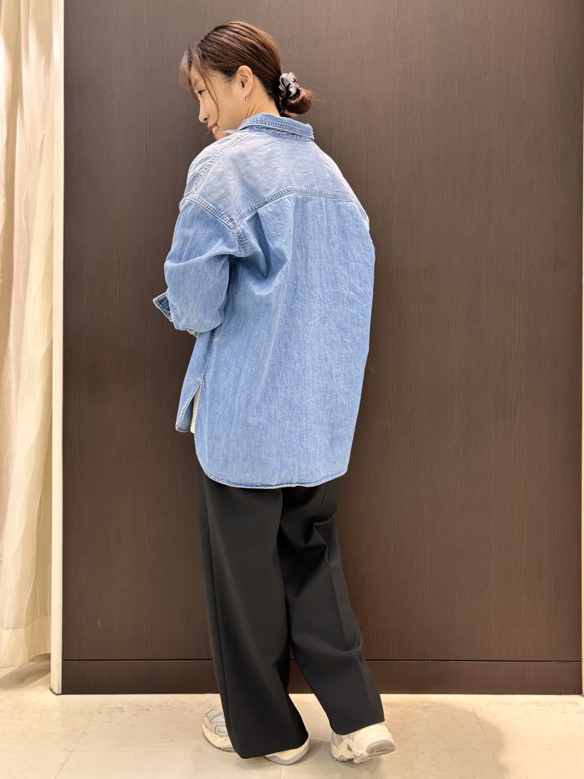 朝晩との気温差が大きい時期には羽織ものはマスト。軽めのシャツなら荷物にならずシワも気にせず旅行やレジャーにも持って行きやすいですよ。少し肩落としたゆったりのデザインでインナーの大きさを気にせず使えます。腰巻きにしてもコーデのアクセントになりかわいいです。合わせたパンツはセンターラインがカッコよくて、シワになりにくくストレッチが良く効いています。ストレートワイドくらいでスッキリはけます。