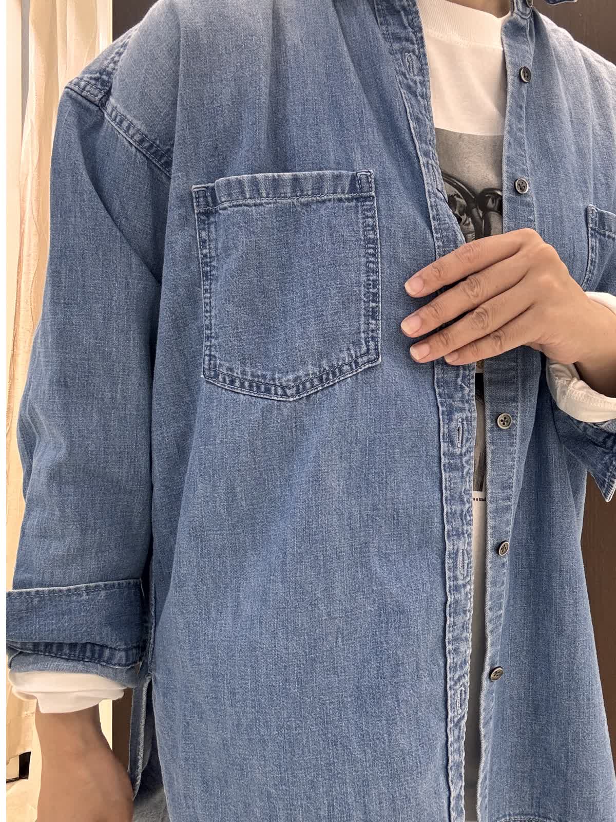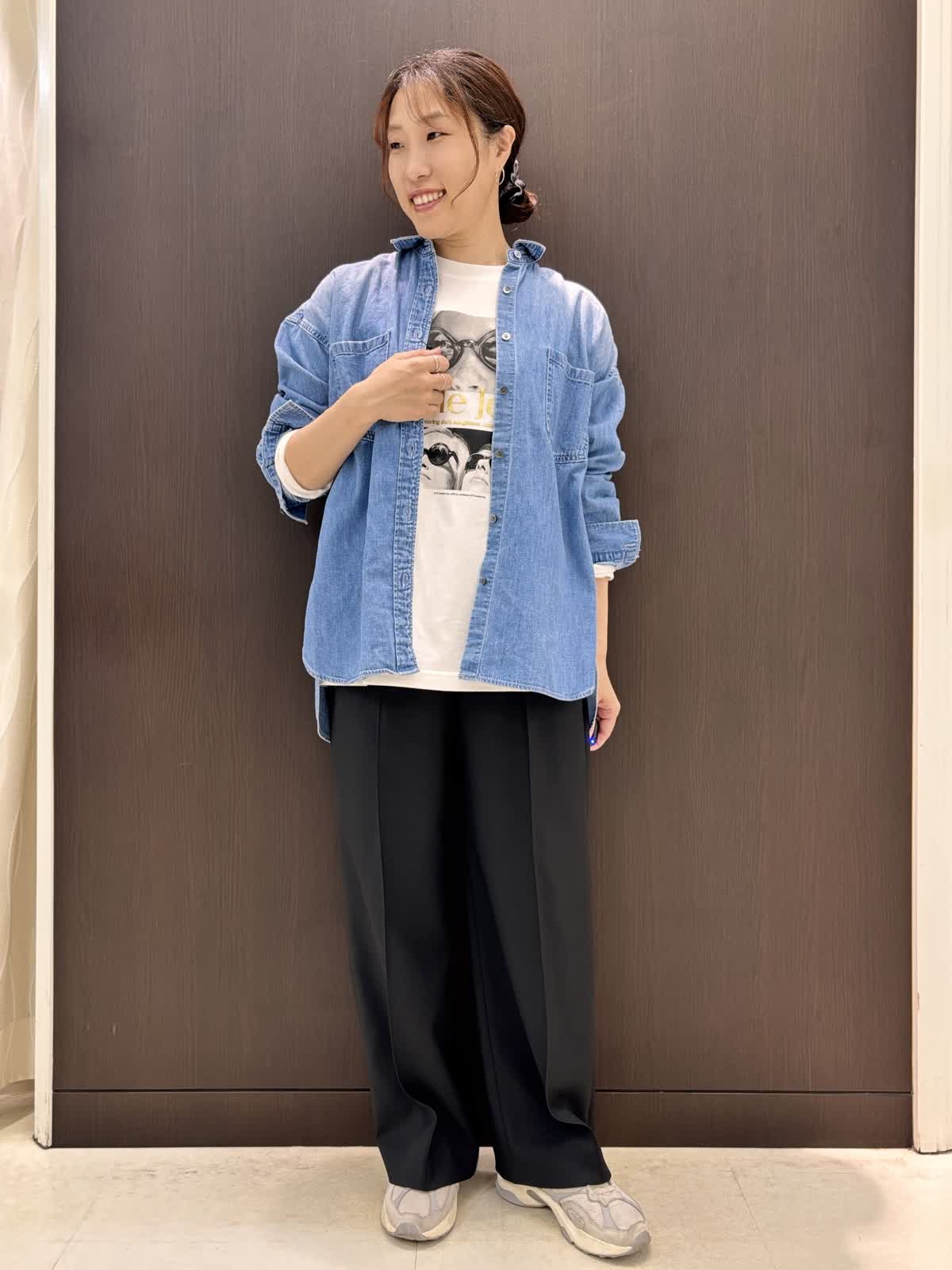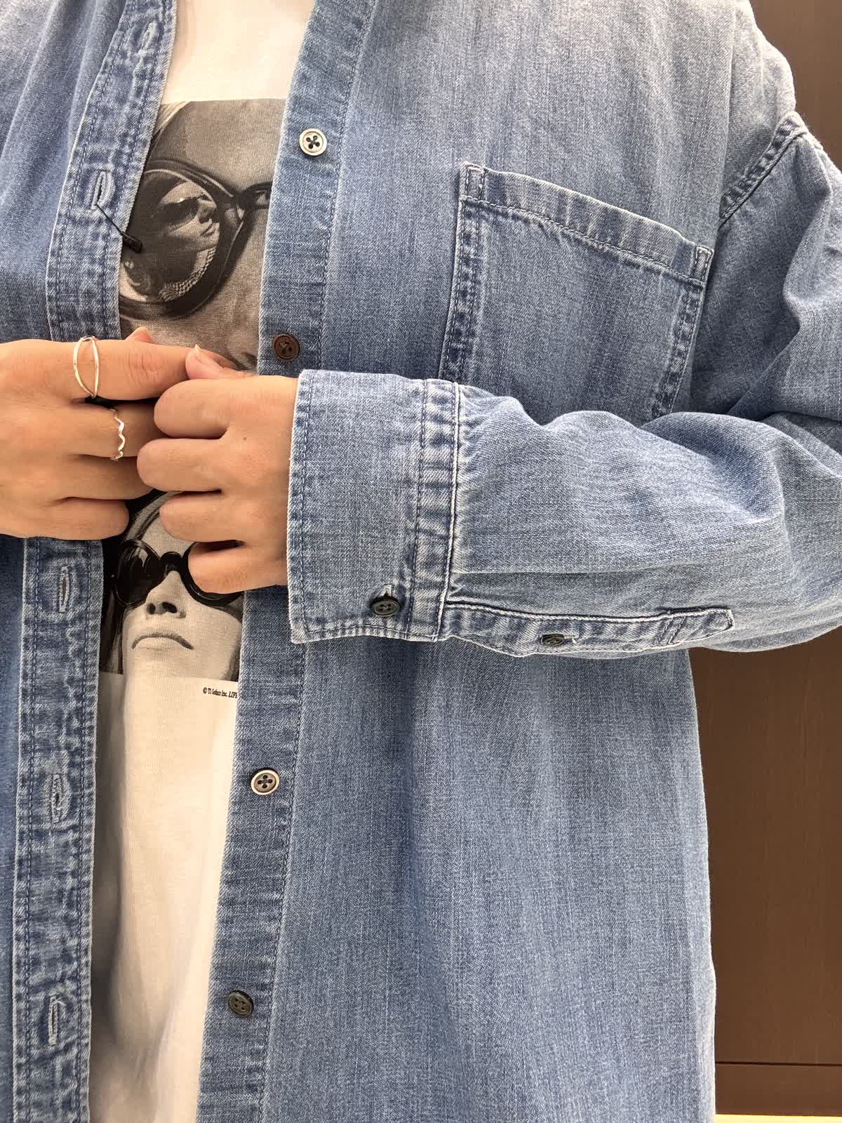 朝晩との気温差が大きい時期には羽織ものはマスト。軽めのシャツなら荷物にならずシワも気にせず旅行やレジャーにも持って行きやすいですよ。少し肩落としたゆったりのデザインでインナーの大きさを気にせず使えます。腰巻きにしてもコーデのアクセントになりかわいいです。合わせたパンツはセンターラインがカッコよくて、シワになりにくくストレッチが良く効いています。ストレートワイドくらいでスッキリはけます。