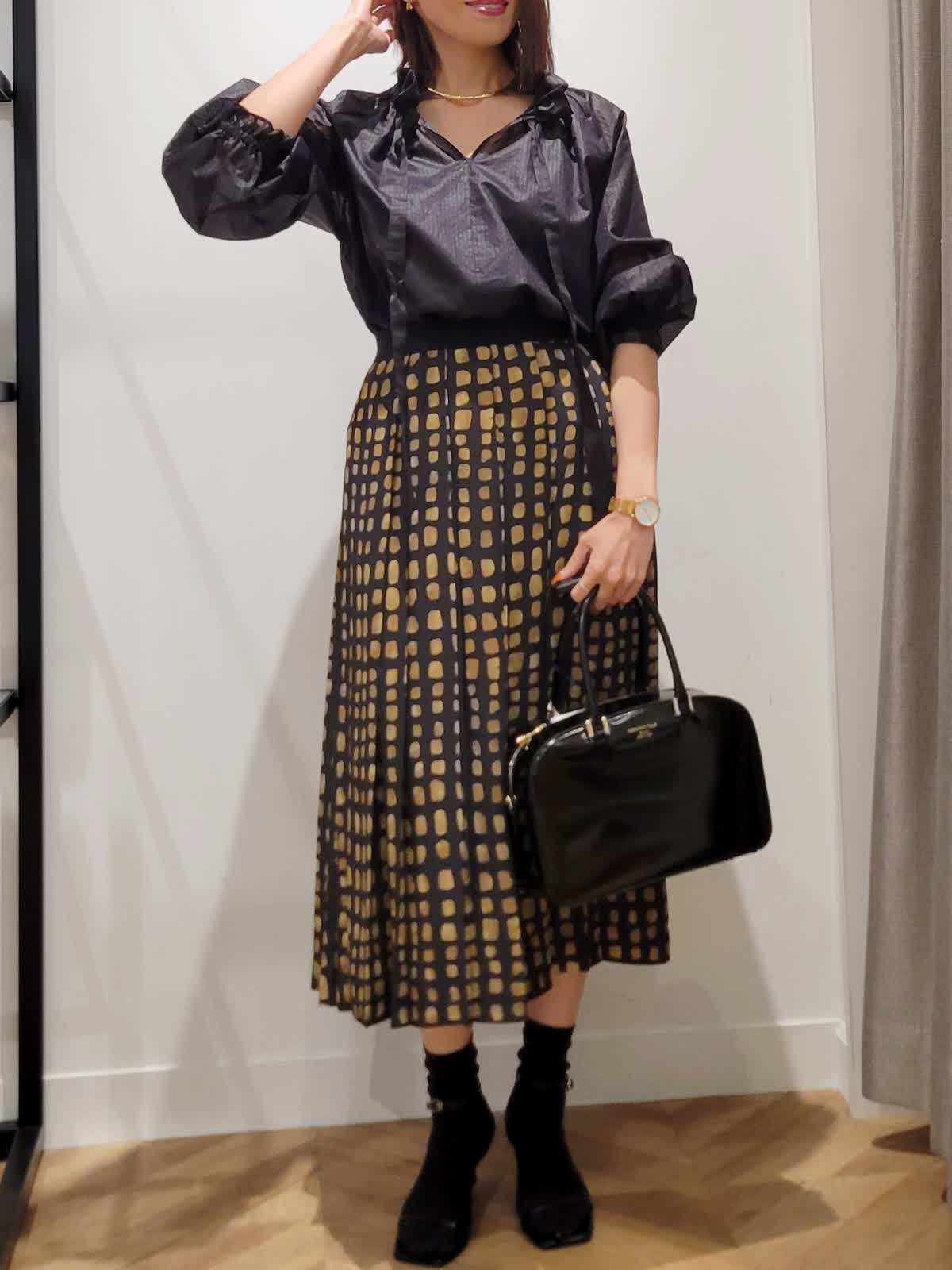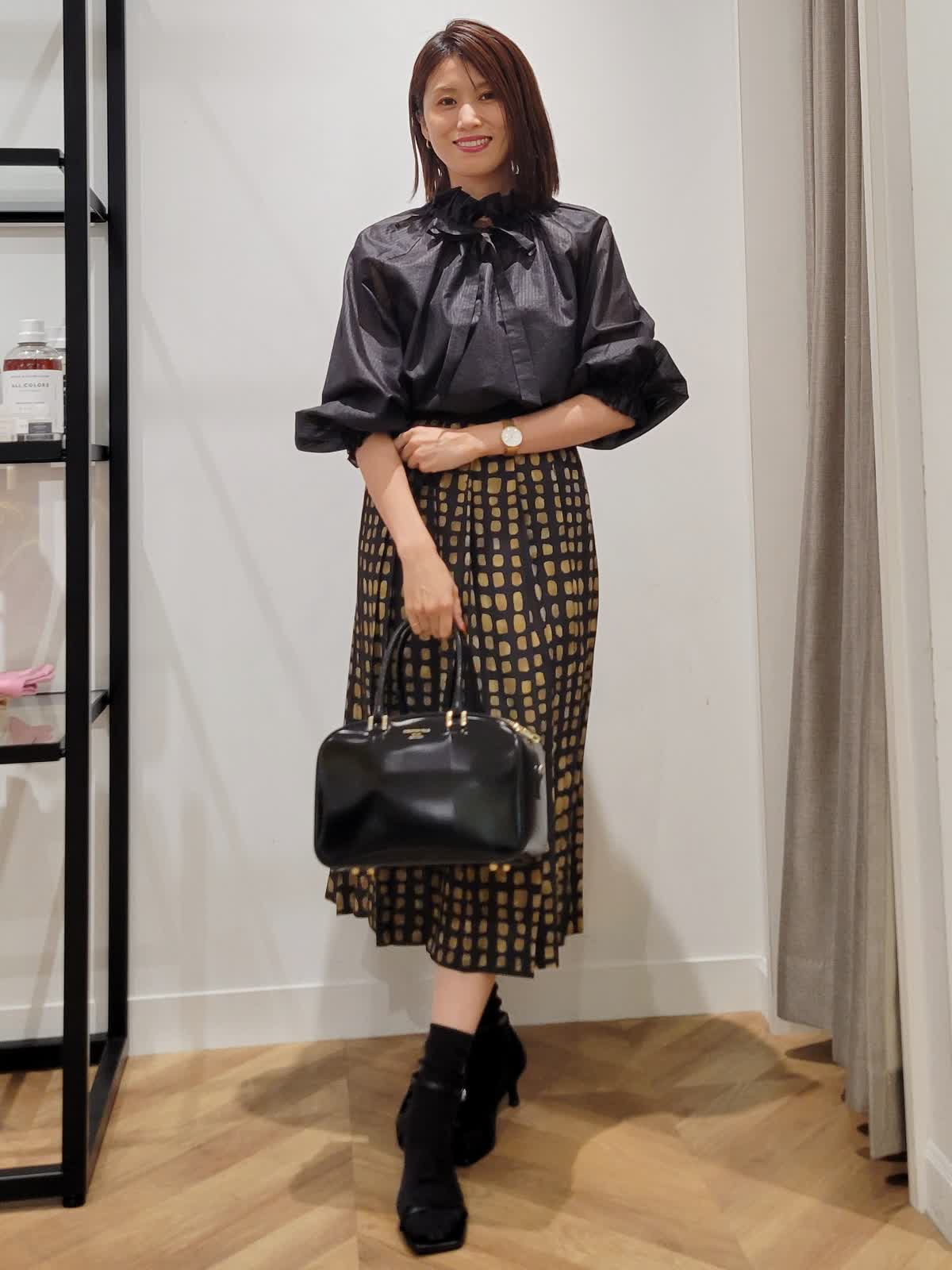 INEDブラウスとINED LブラウスとINEDスカートとニットとFAVORITE SUKINAMONOバッグ(岡山天満屋SUPERIORCLOSET)