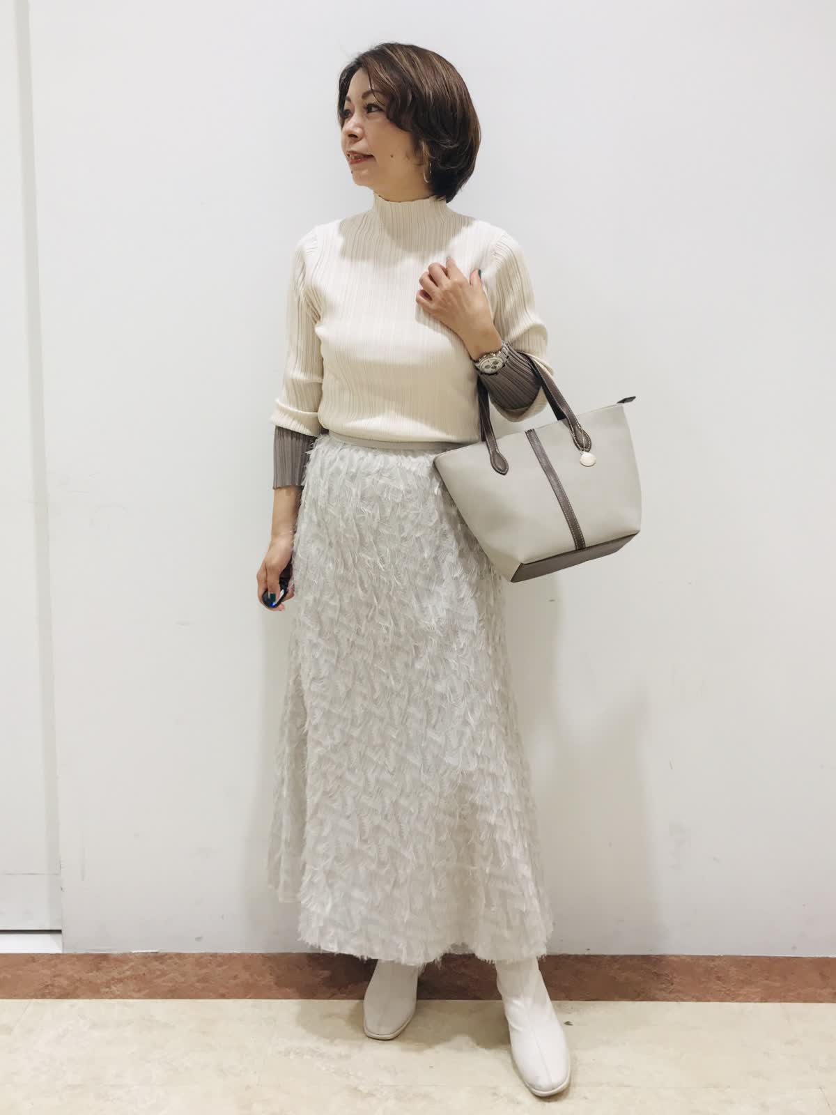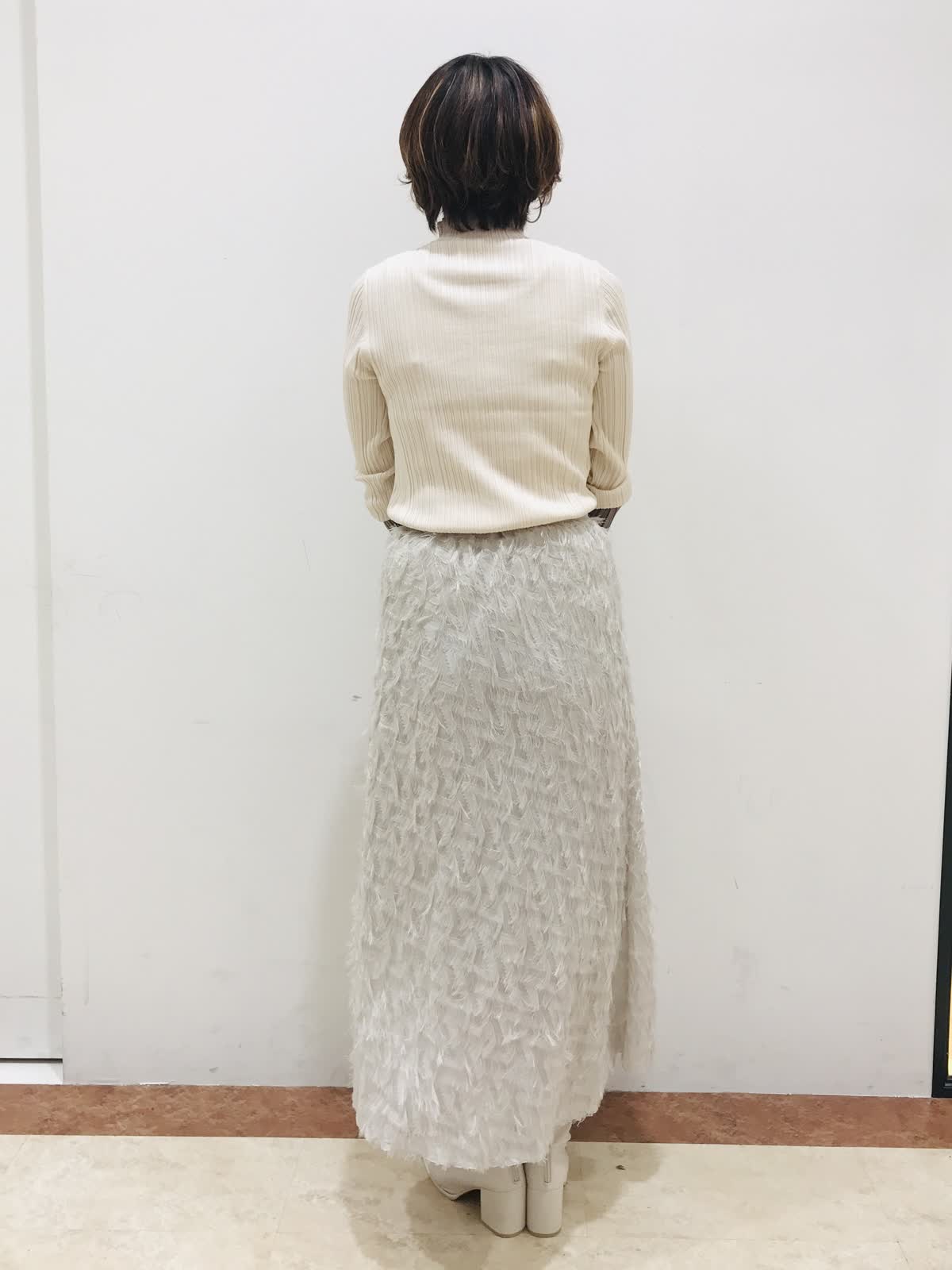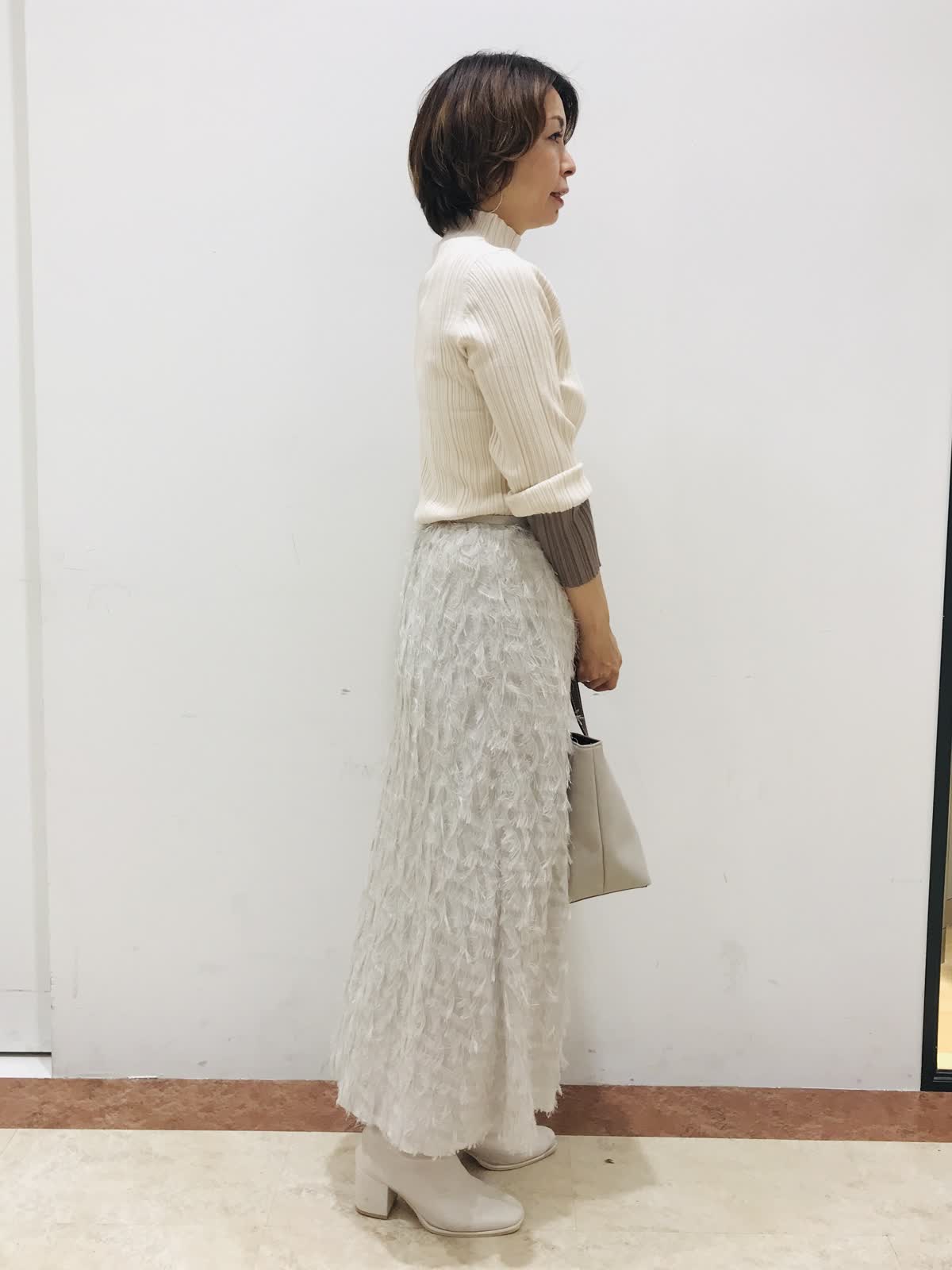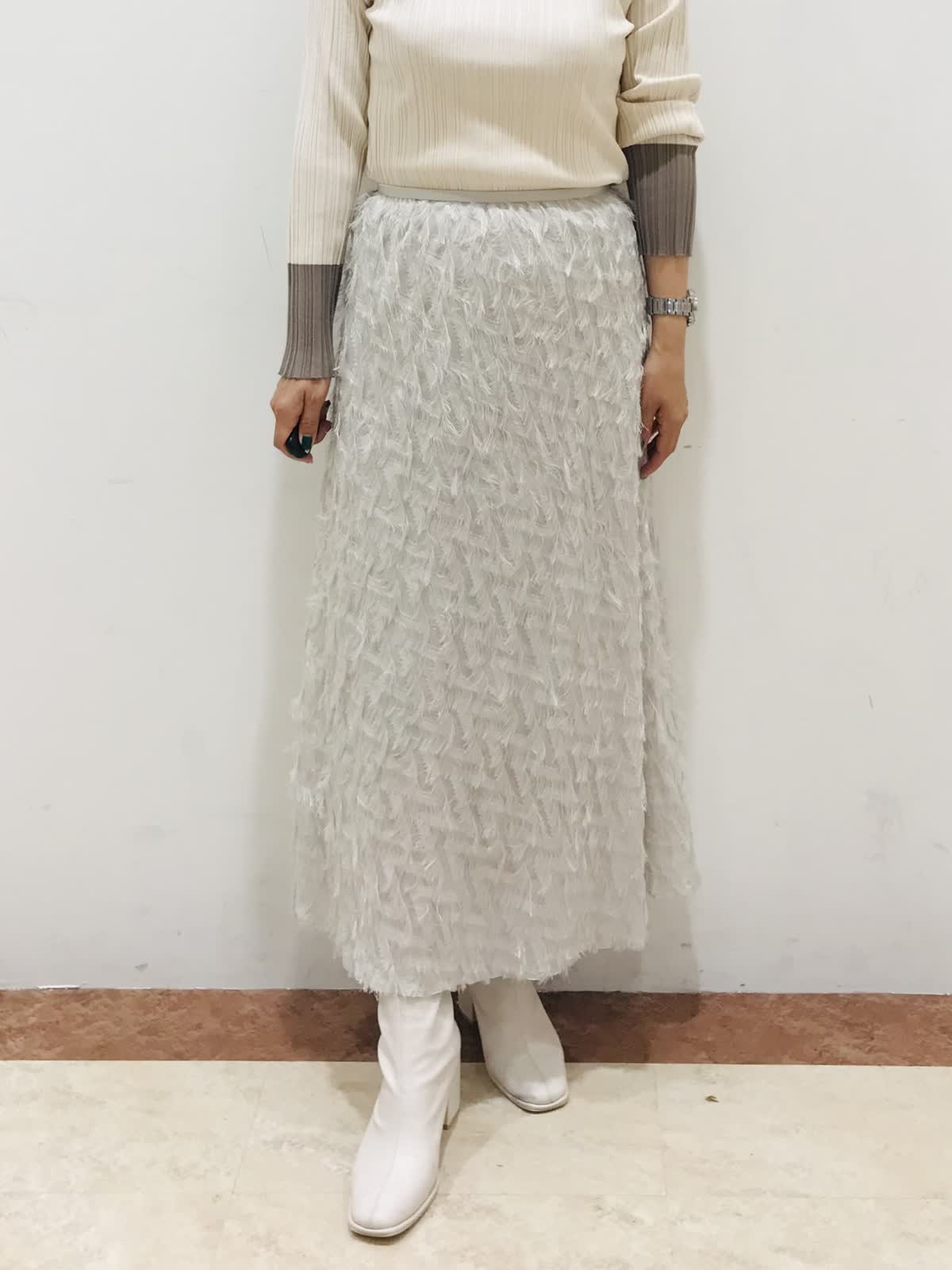 ウエストゴム仕様のロングスカートは楽に着脱できますし毛足の長いフリンジデザインがおすすめポイントです。