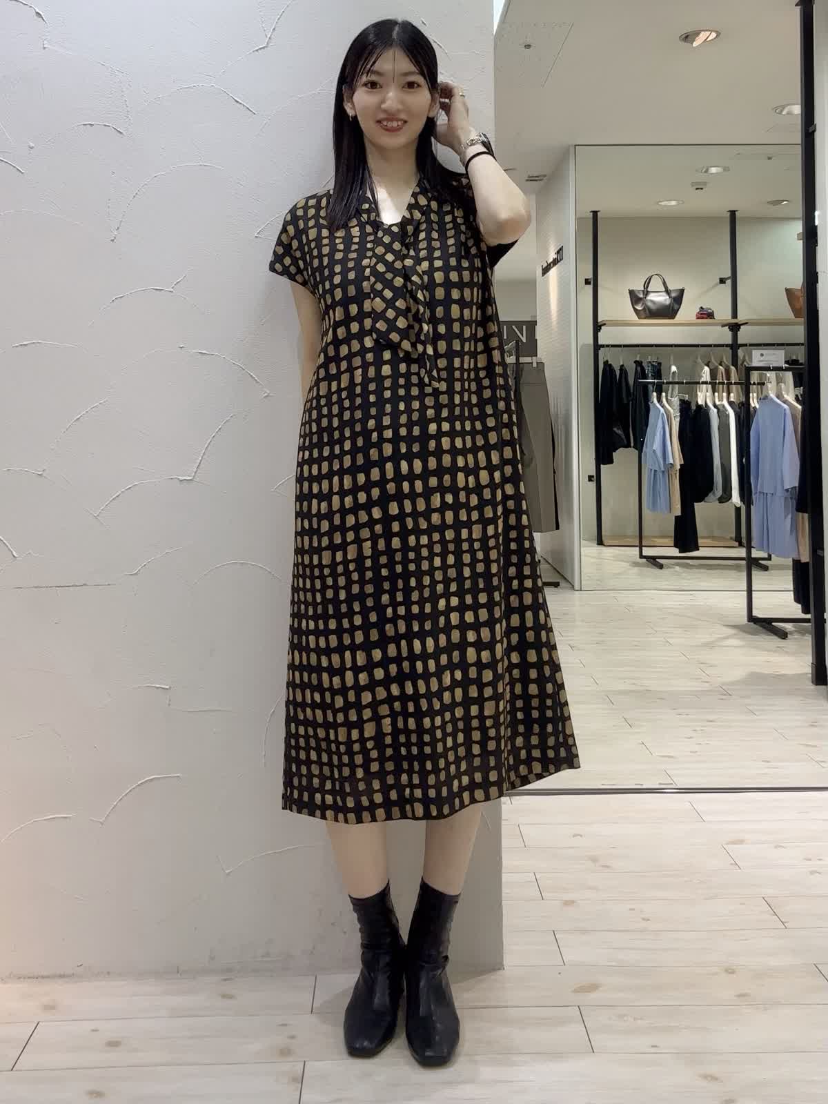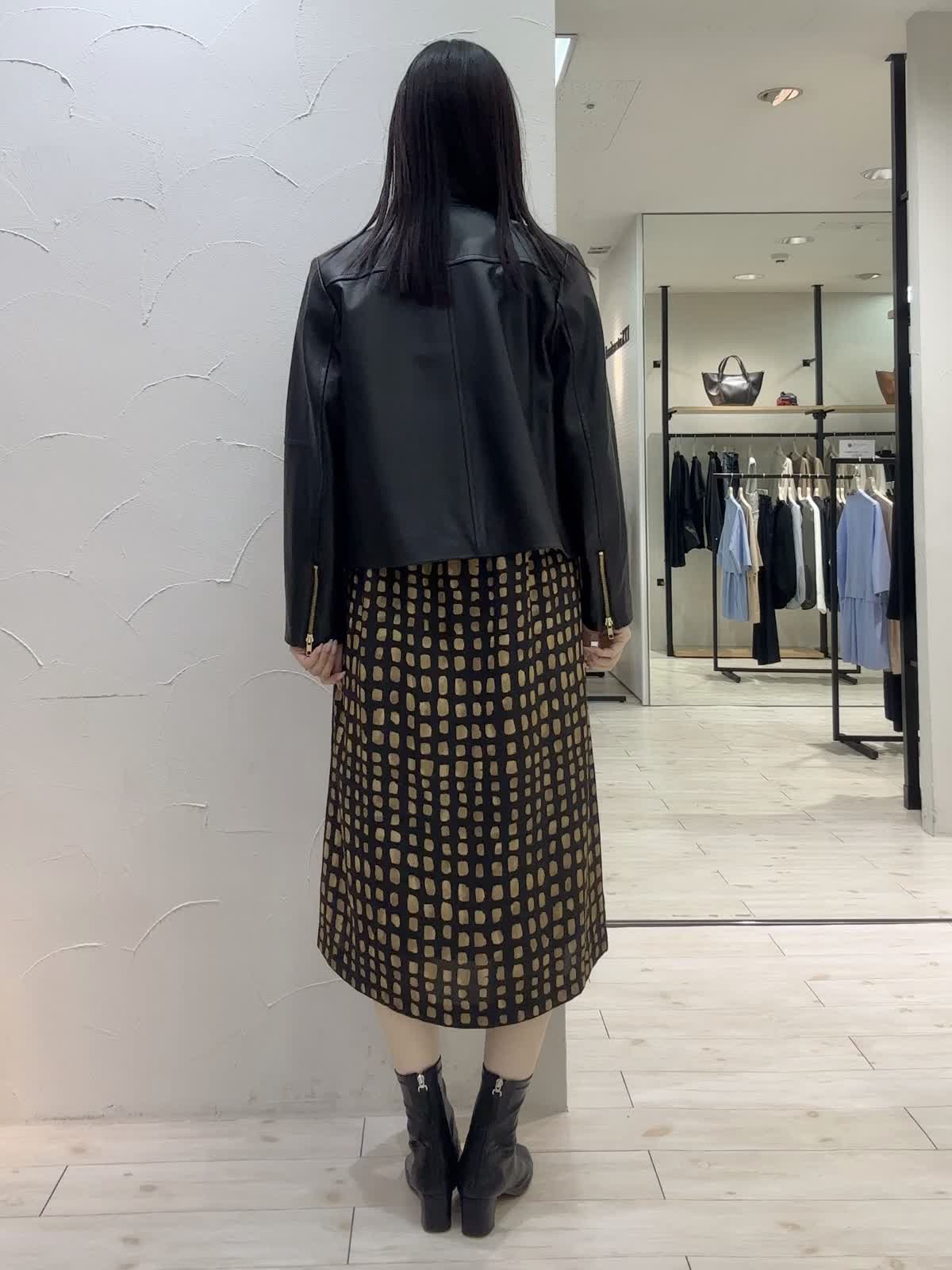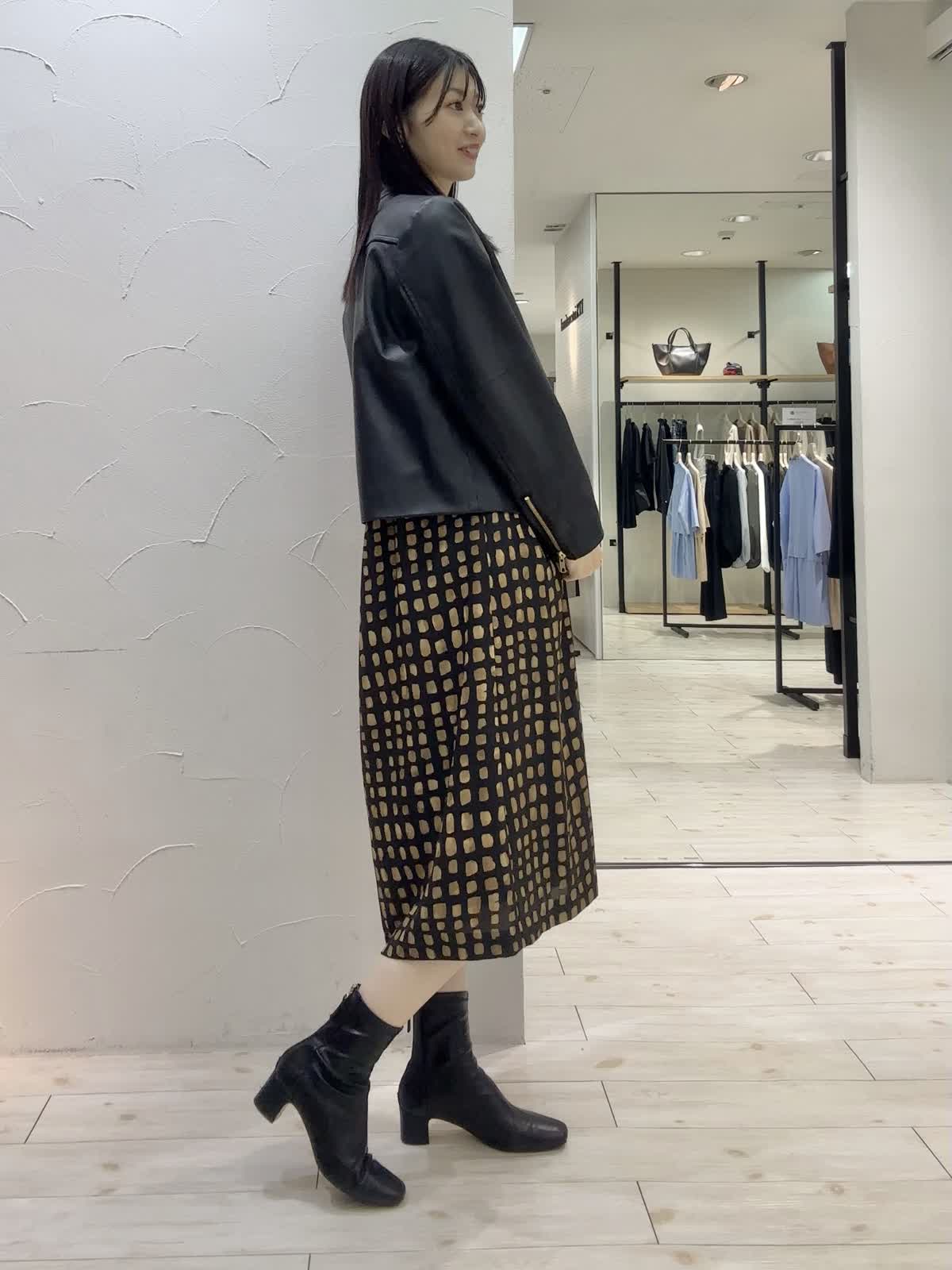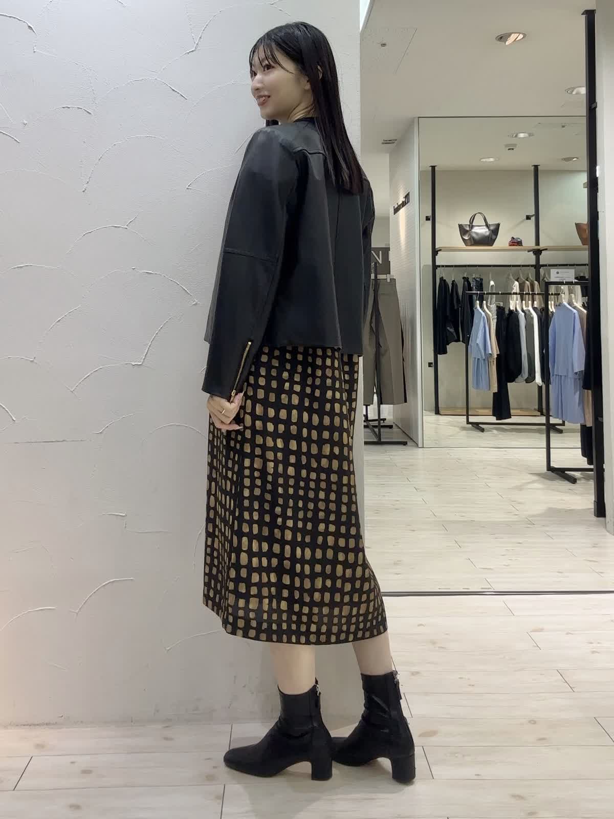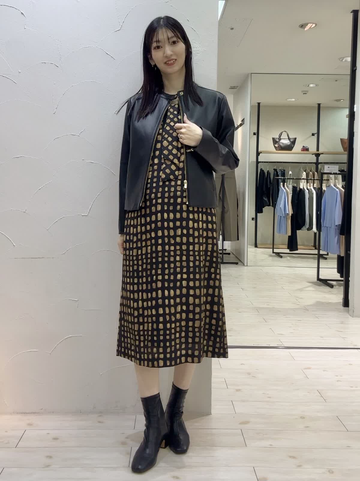 【着用サイズ】ジャケット:9号 ワンピース:9号 【着用カラー】ジャケット:ブラック ワンピース:ブラック 秋のシックコーデ。ワンピースは、チェック柄がポイントでリラックス感のあるシルエット。ボウタイ付きできちんと感もあります。レザージャケットを羽織ってかっこいいコーディネートにしてみました。シンプルなデザインでオンオフ問わずお召しいただけます。