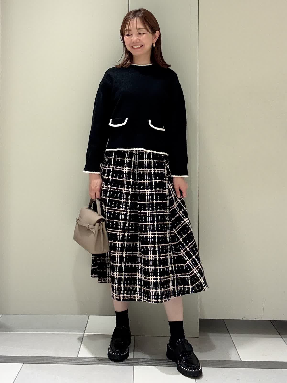 【着用サイズ/カラー】ニット:9号/ブラック パンツ:9号/ブラック スカート:7号/ブラック 秋のお出かけコーデ お買い物からテーマパーク、ご旅行など動きやすいスタイリングです。ニットはコンパクトめですがいつものサイズで大丈夫ですが、お腹周りがピタッとなりたくない方はワンサイズあげてもいいと思います。