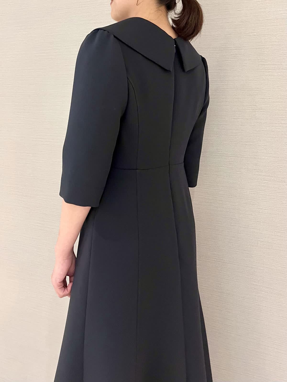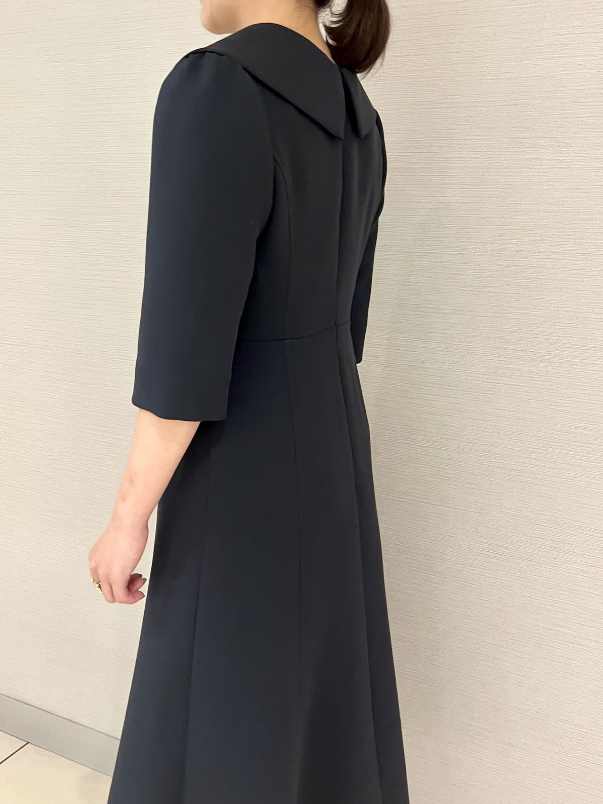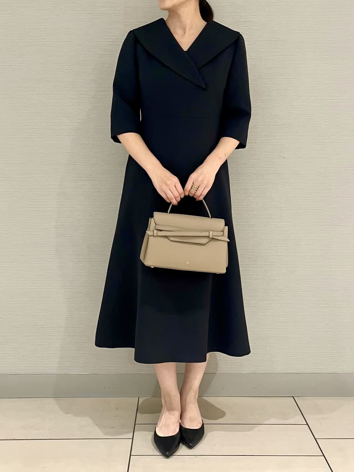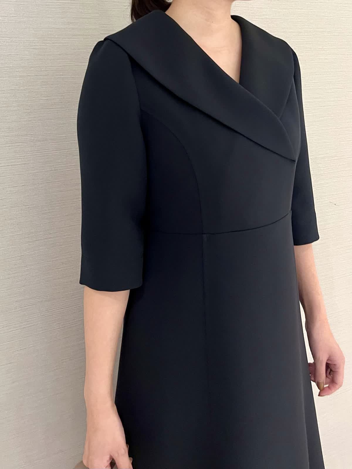 【着用サイズ】ワンピース:9号【着用カラー】ワンピース:ネイビー 女性らしいショールカラーのワンピース。着るだけで美しいシルエットが生まれ、身体のラインを綺麗に魅せてくれます。お呼ばれやお食事会などのフォーマルなシーンにもおすすめ。肘まで隠れる袖丈で長いシーズンご着用いただけます。
