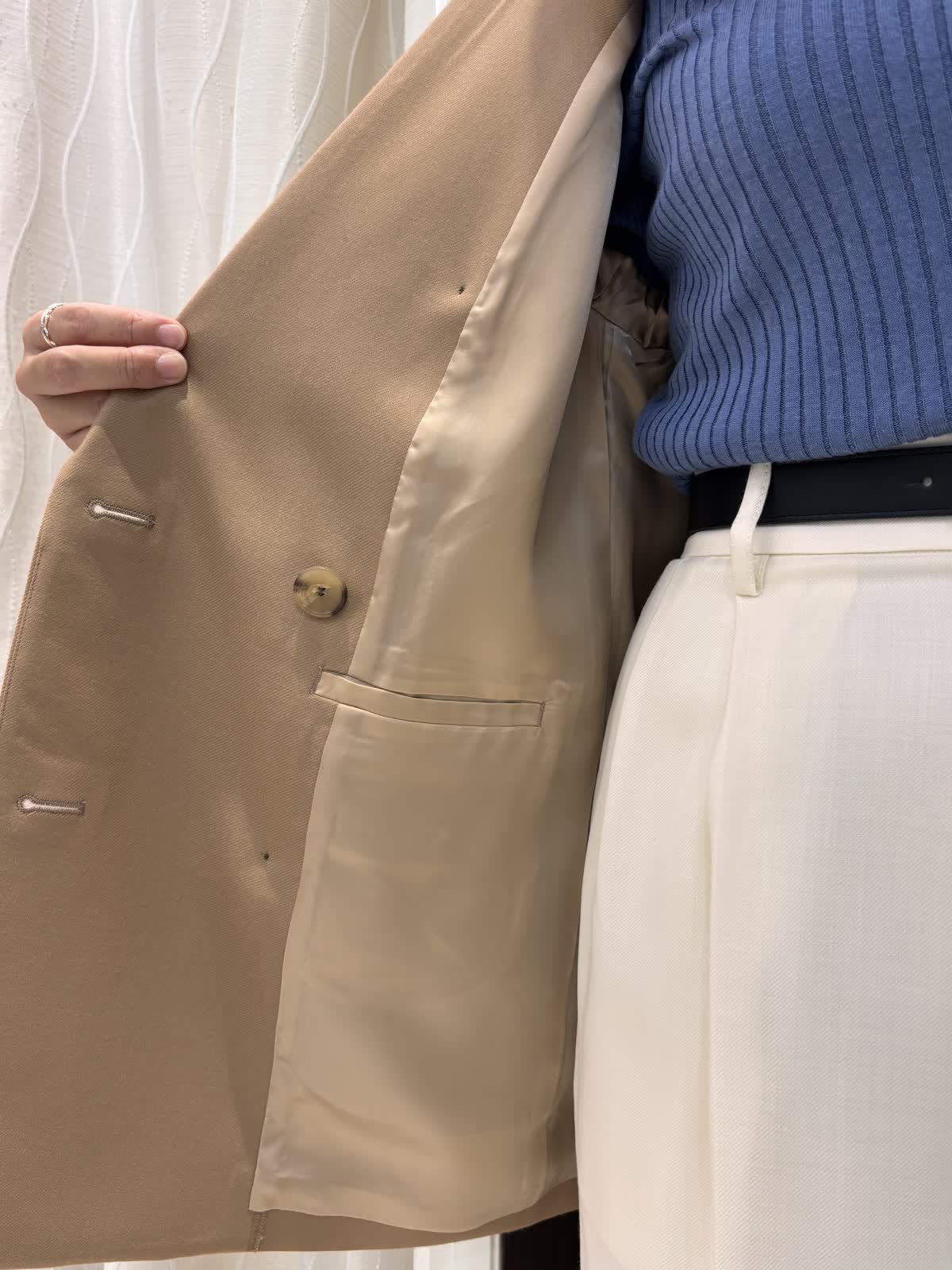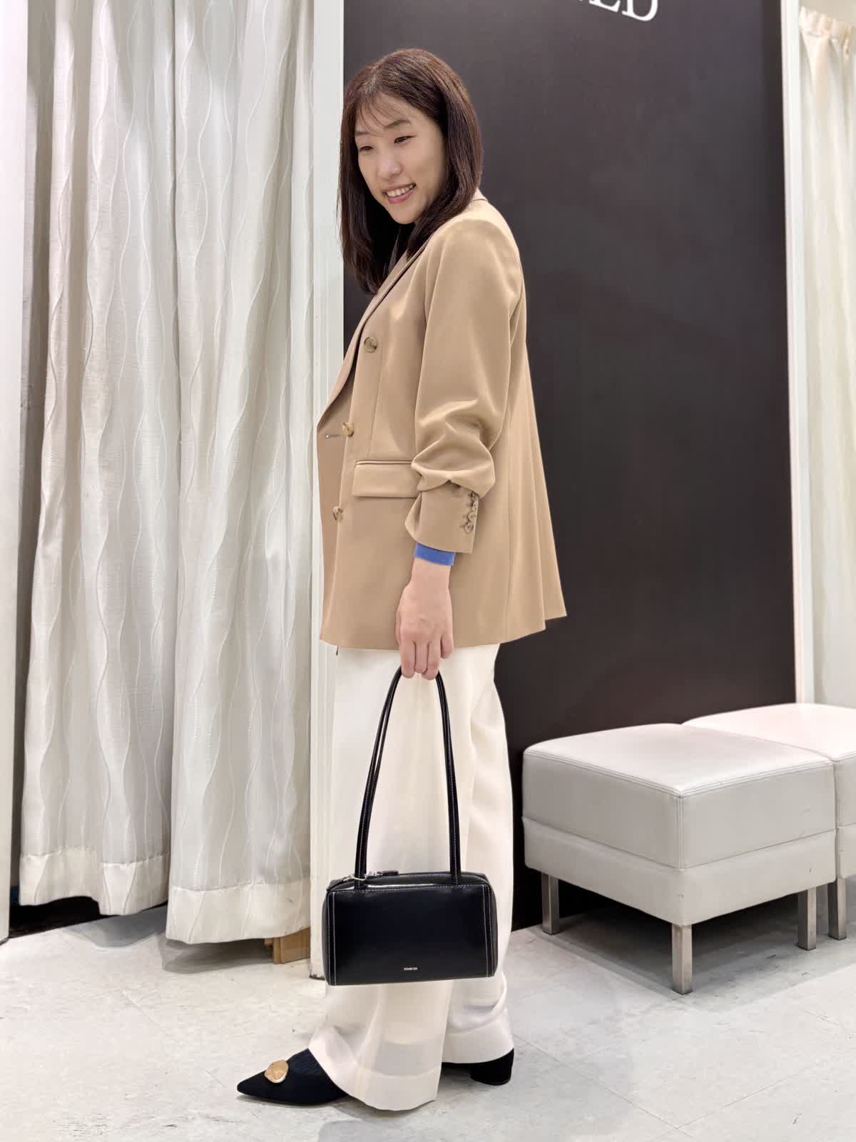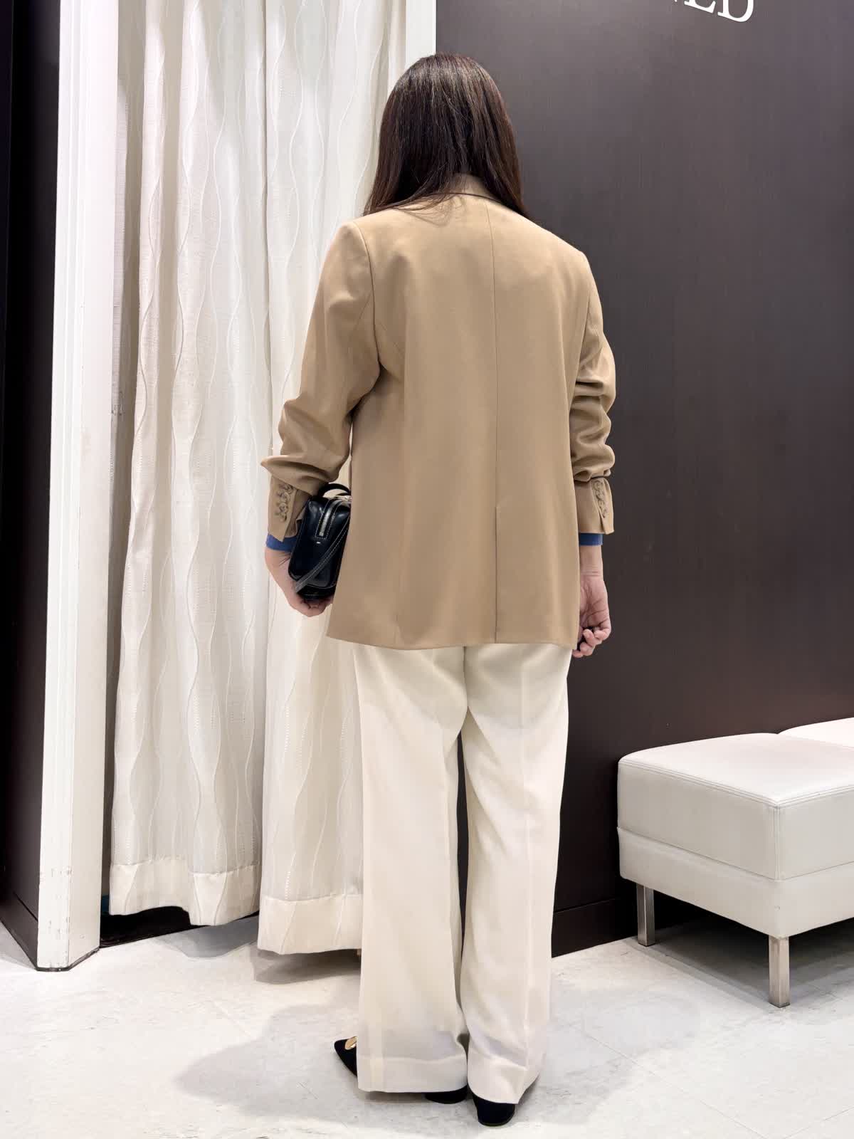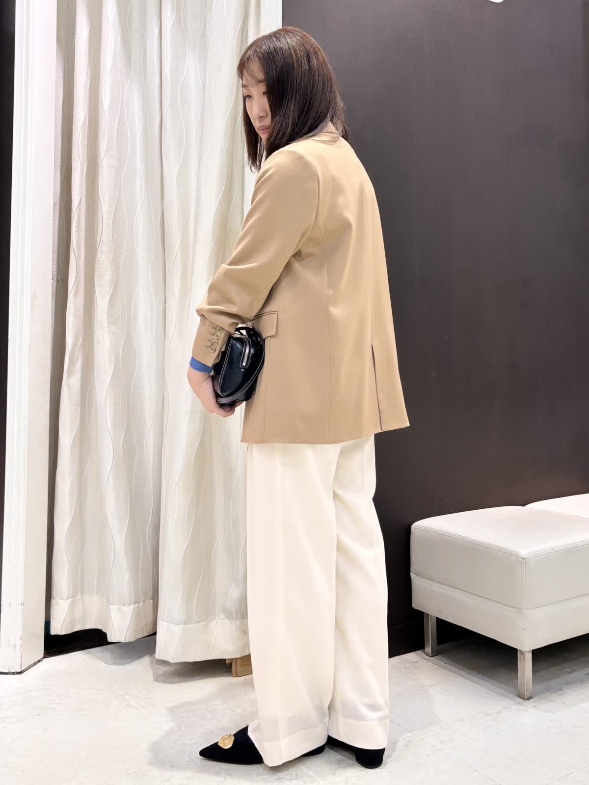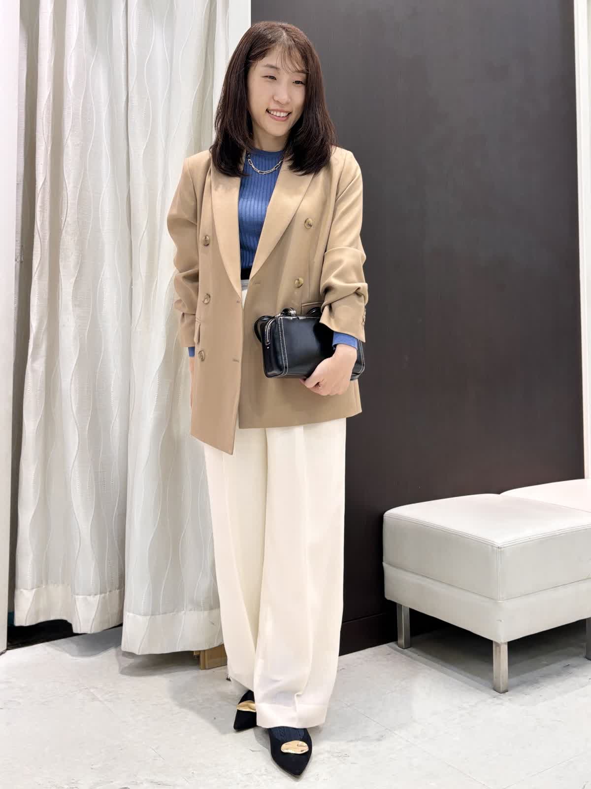 【着用カラー】ジャケット:ベージュ ニット:パンツ:オフホワイト