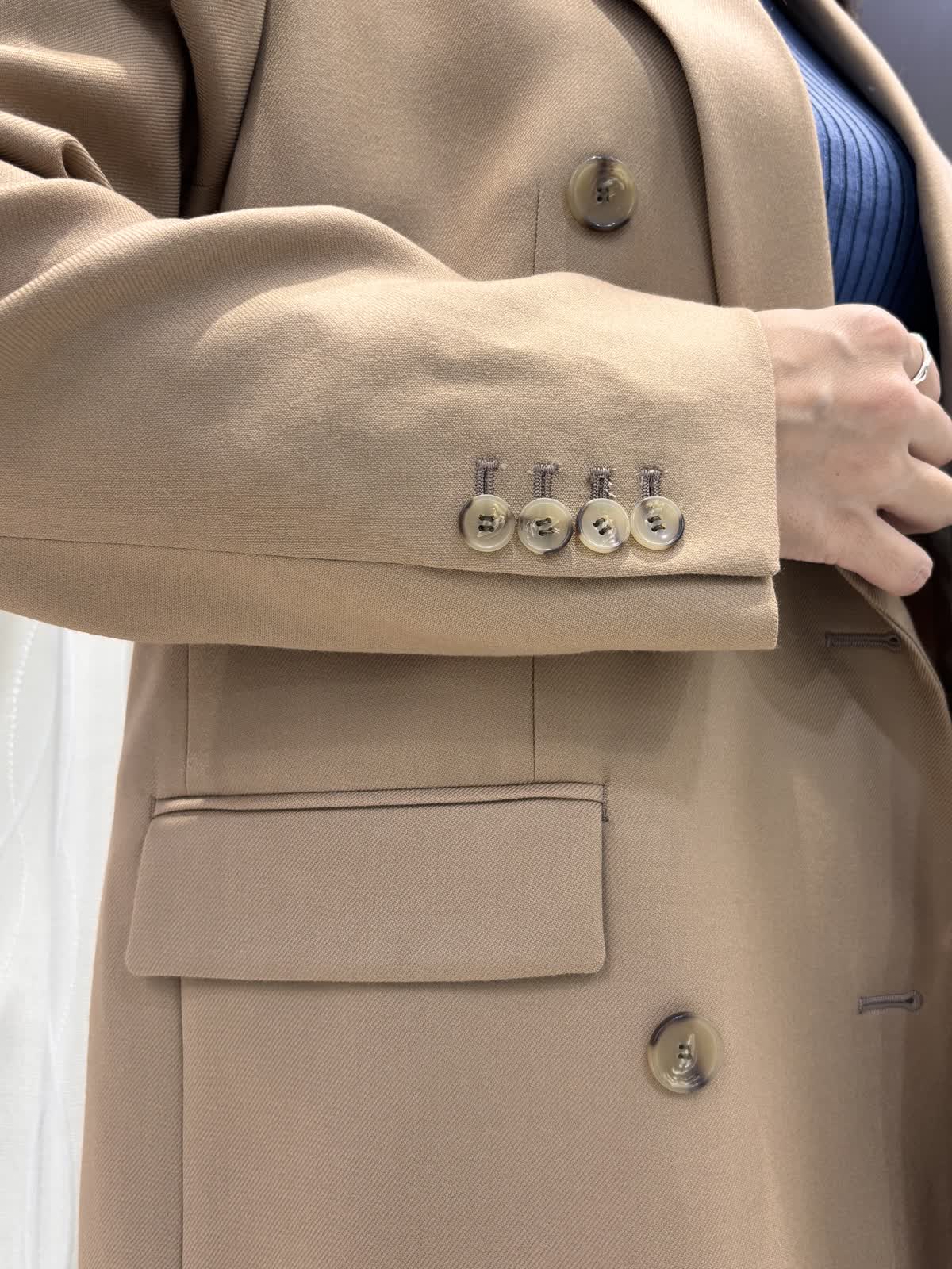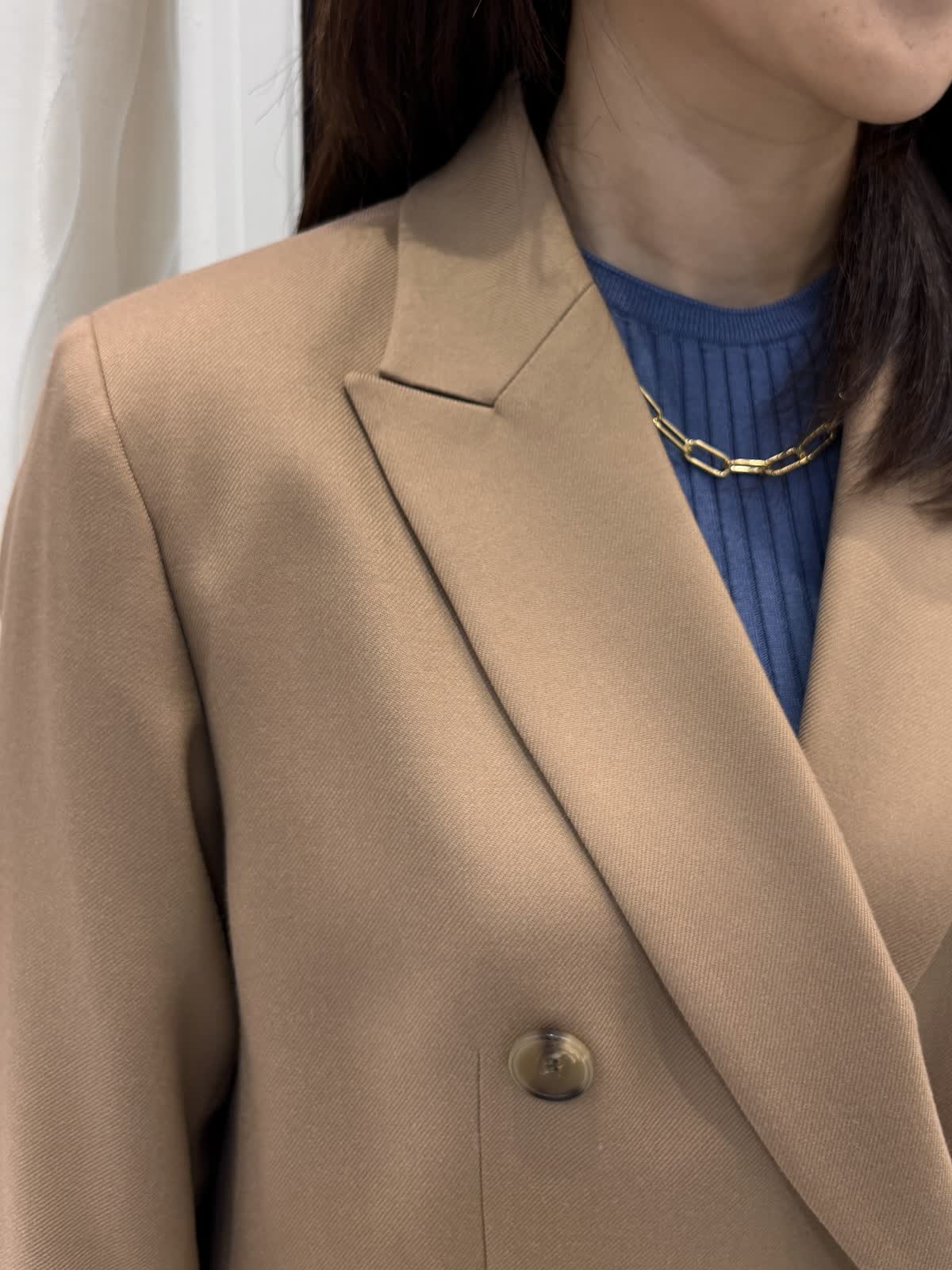 この秋冬、トラッドな雰囲気が復活な兆し。持っておきたいのはコート未満のアウターとしロングシーズン着回せるジャケット。ジャケットのトレンドはセットインのデザインが戻りつつありますが、シルエットは程よくゆったりなオーバサイズ。ウール100%なのにとっても軽くて柔らかく、ジャケットとは思えない楽な着心地です。カラーはベージュを選べばビジネスシーンはもちろん、お休みの日のお出かけ使いにも◎カラーニットに白のパンツ合わせで全体を明るめなコーデにしました。