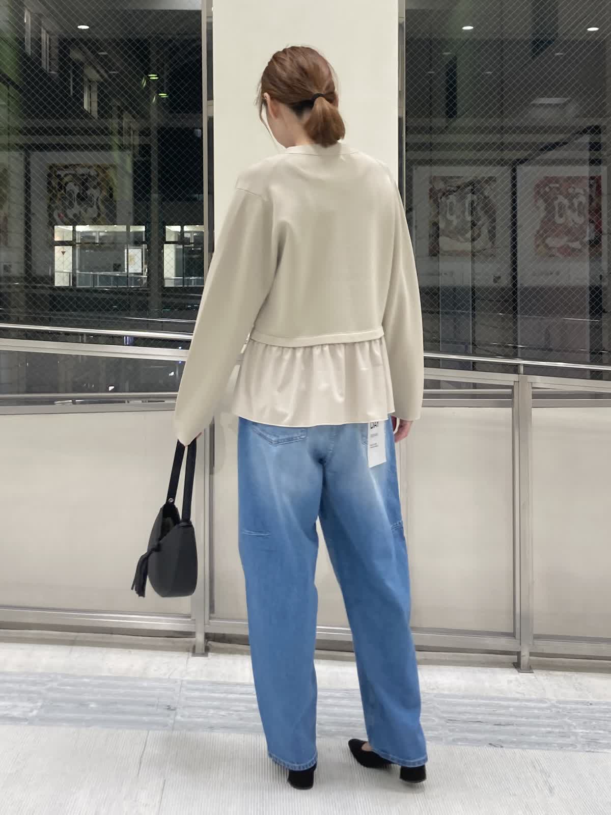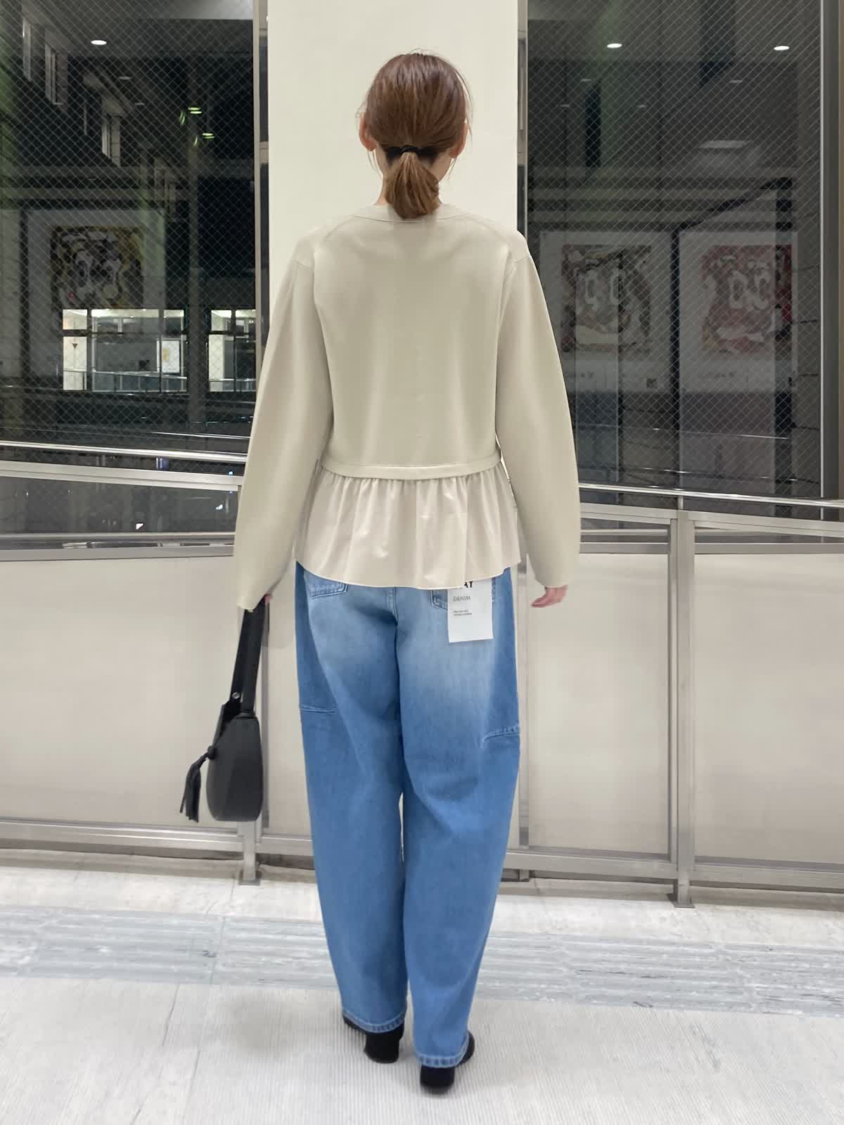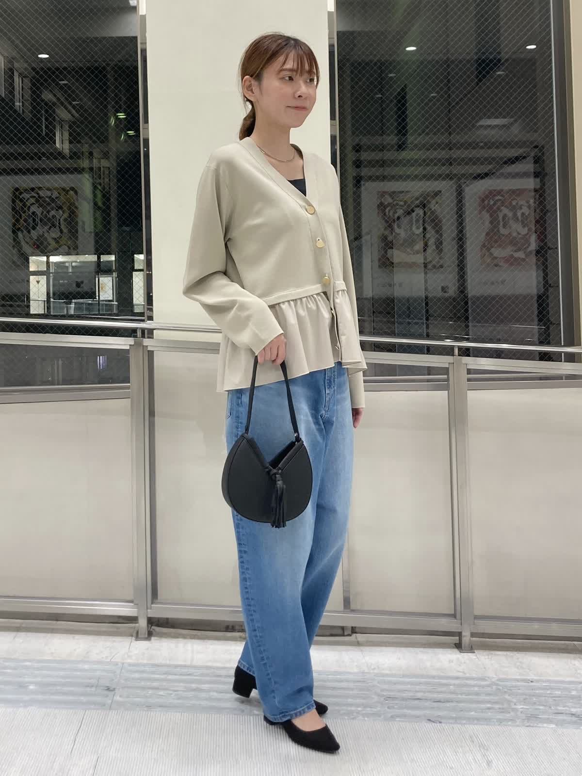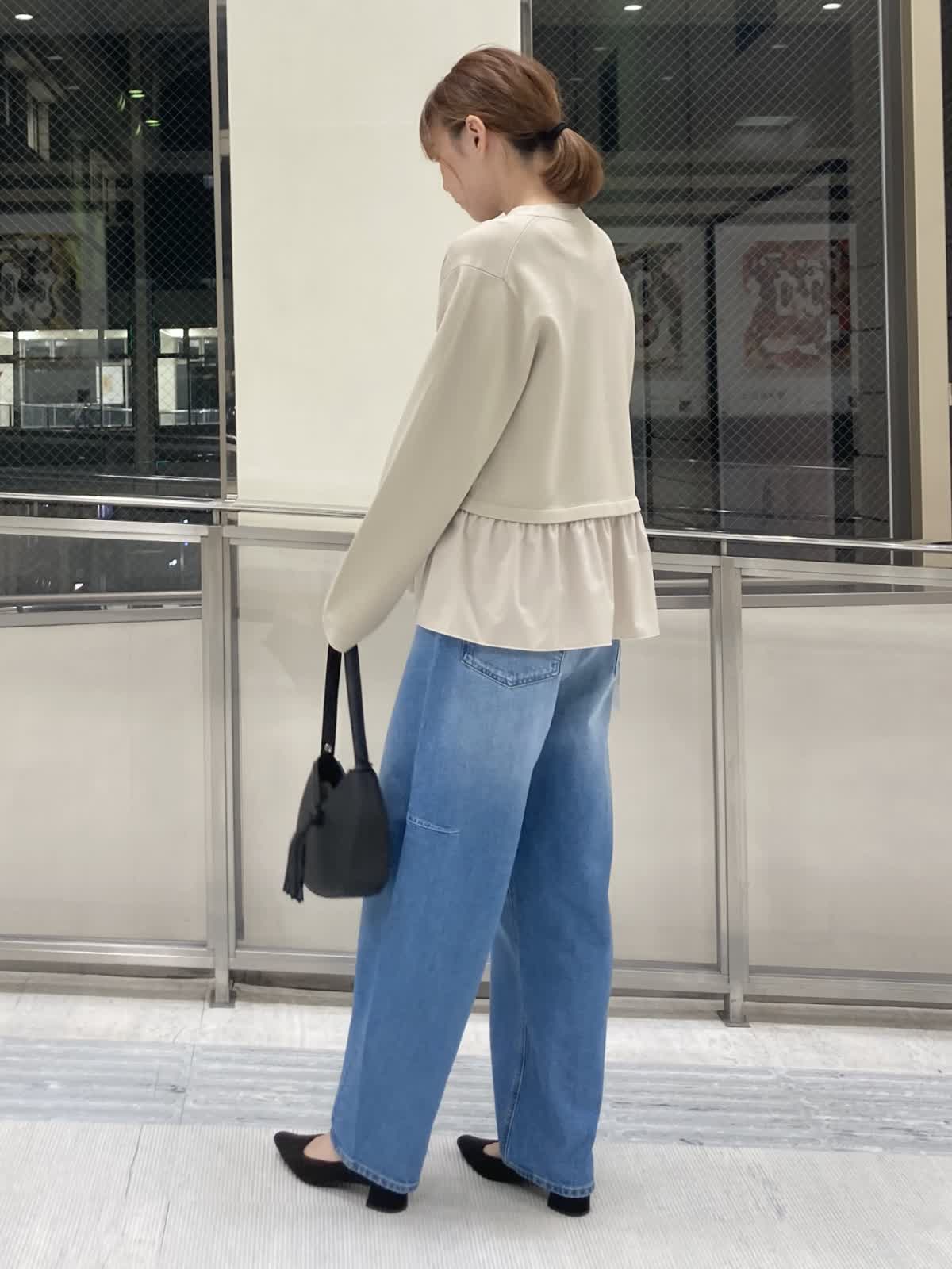 【着用サイズ】カーディガン : フリー パンツ : 9号 【着用カラー】カーディガン : ベージュ パンツ : ブルー 異素材のフリルがポイントのカーディガンをメインに今っぽくバレルデニムを合わせ、大人の綺麗めカジュアルコーデにしました。ストレッチ性があり、柔らかい肌触りで着ていてとても着心地が良いです。Vネックが首元をすっきりさせてくれます。