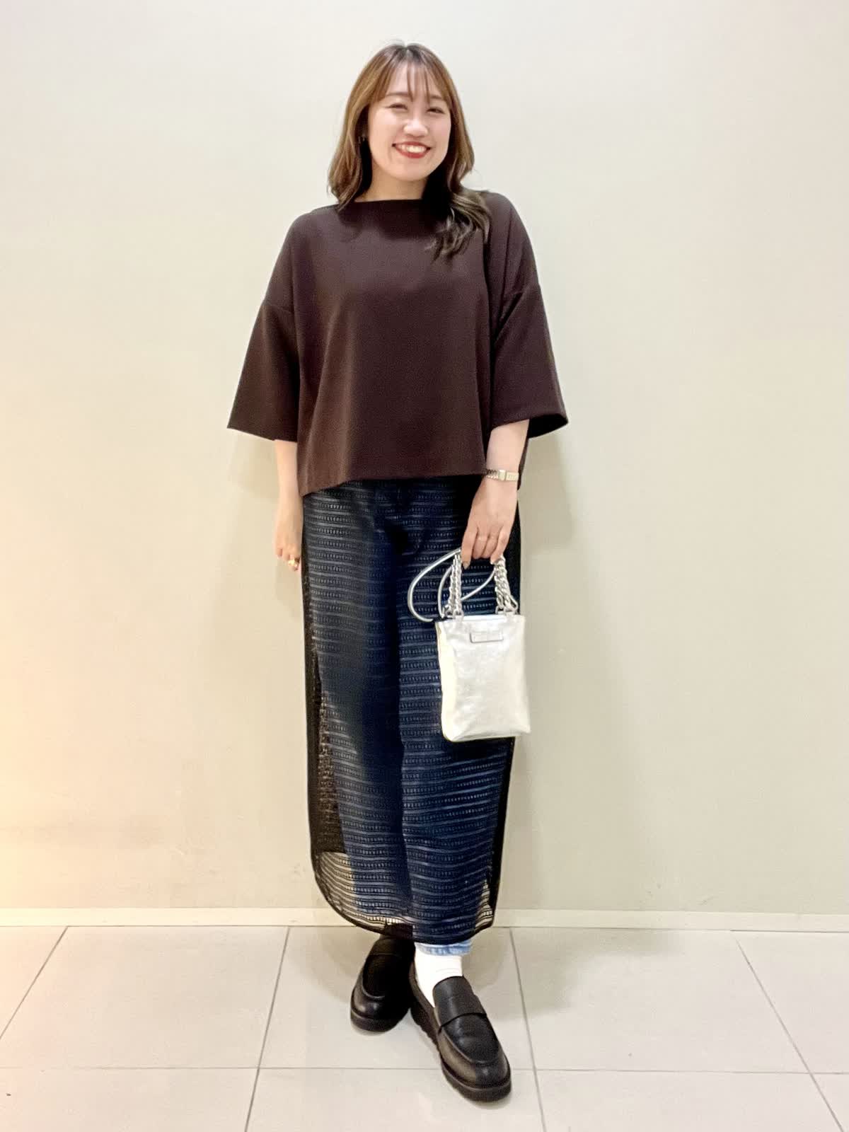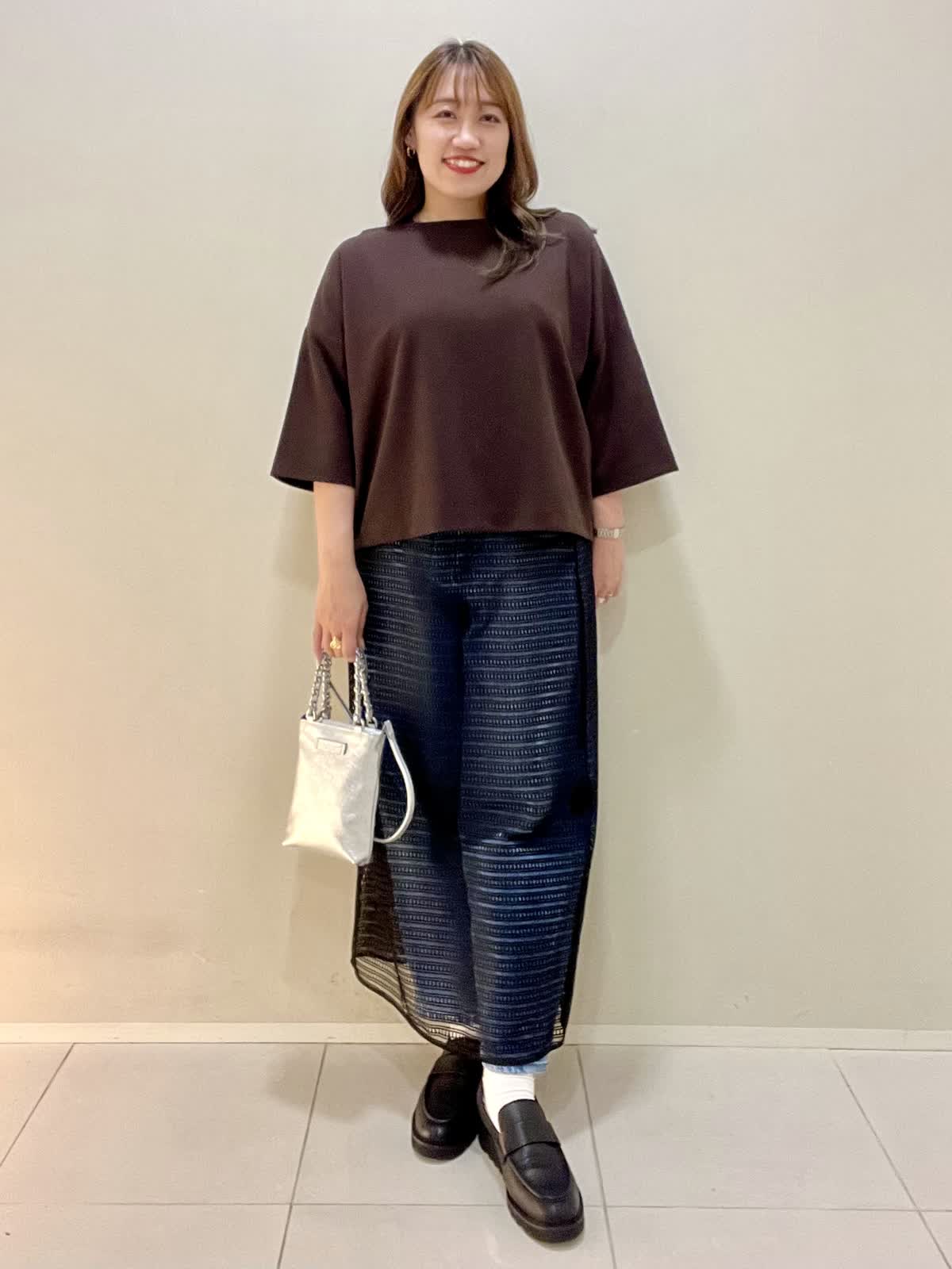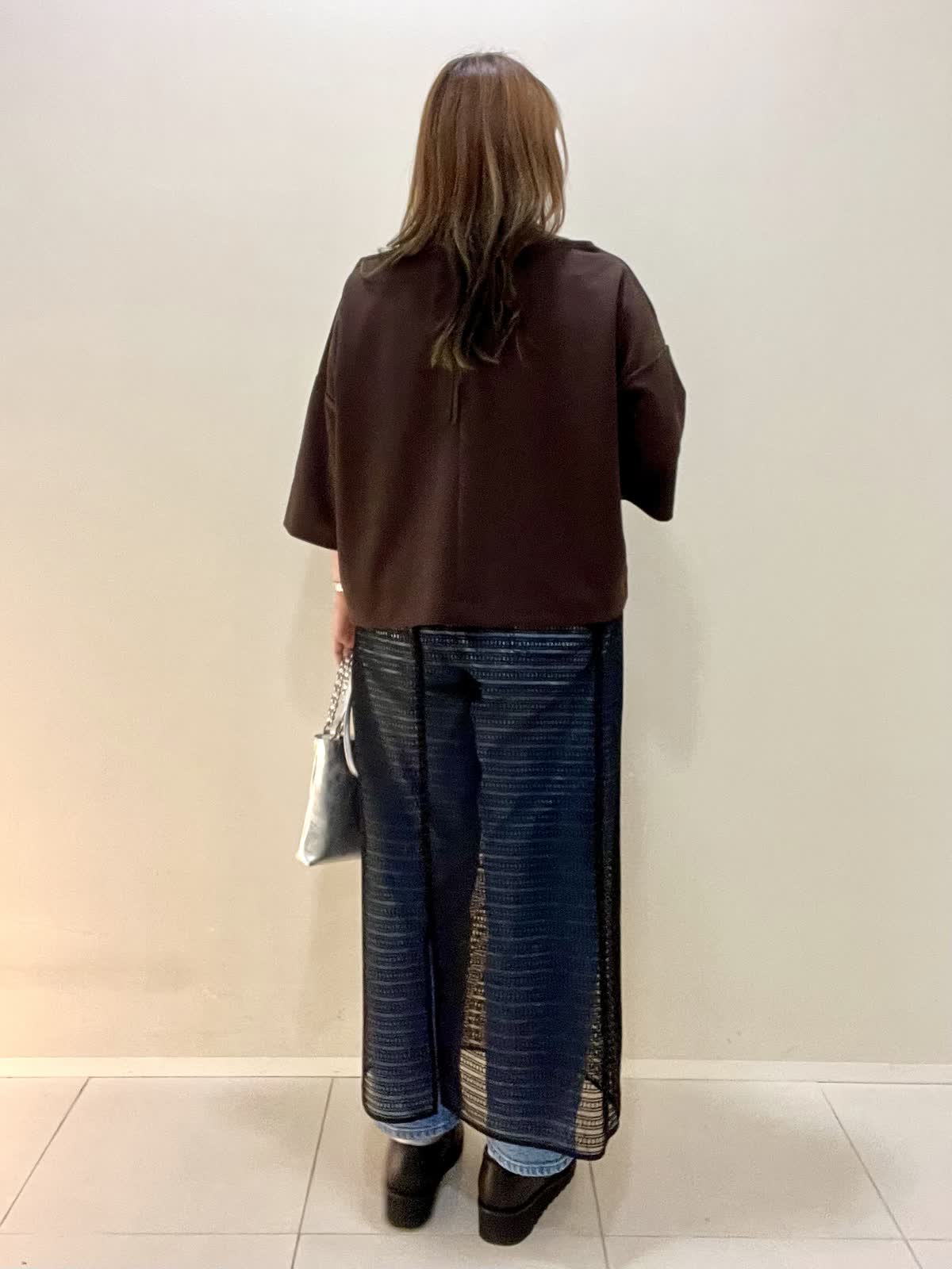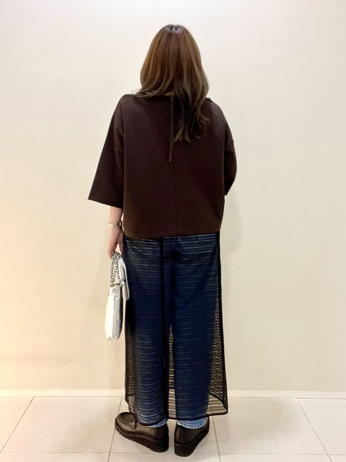 【着用サイズ】カットソー:フリー スカート:フリー パンツ:M 【着用カラー】カットソー:ブラウン スカートブラック パンツ:ブルー レイヤードスタイル。今年はレイヤードするコーディネートがトレンドですよね。DAY by DAY のアイテムでもトレンドのレイヤードスタイルができるアイテムがあります!このスクエアレースのスカート。ペチコートもついているのでスカートとしてももちろん履けますが、ペチコート無しでデニムなどの上から履けば一気にトレンドコーディネートに!このスカートのレースはスクエアになっているので、可愛らしい感じが控えめです。レースだけどかっこいい雰囲気で着ていただけます。カットソーは一見ブラウスに見える素材感ですが、ジャージ素材で着やすいです。ジャージ素材のようには見えないので、綺麗めにも使いやすいです。