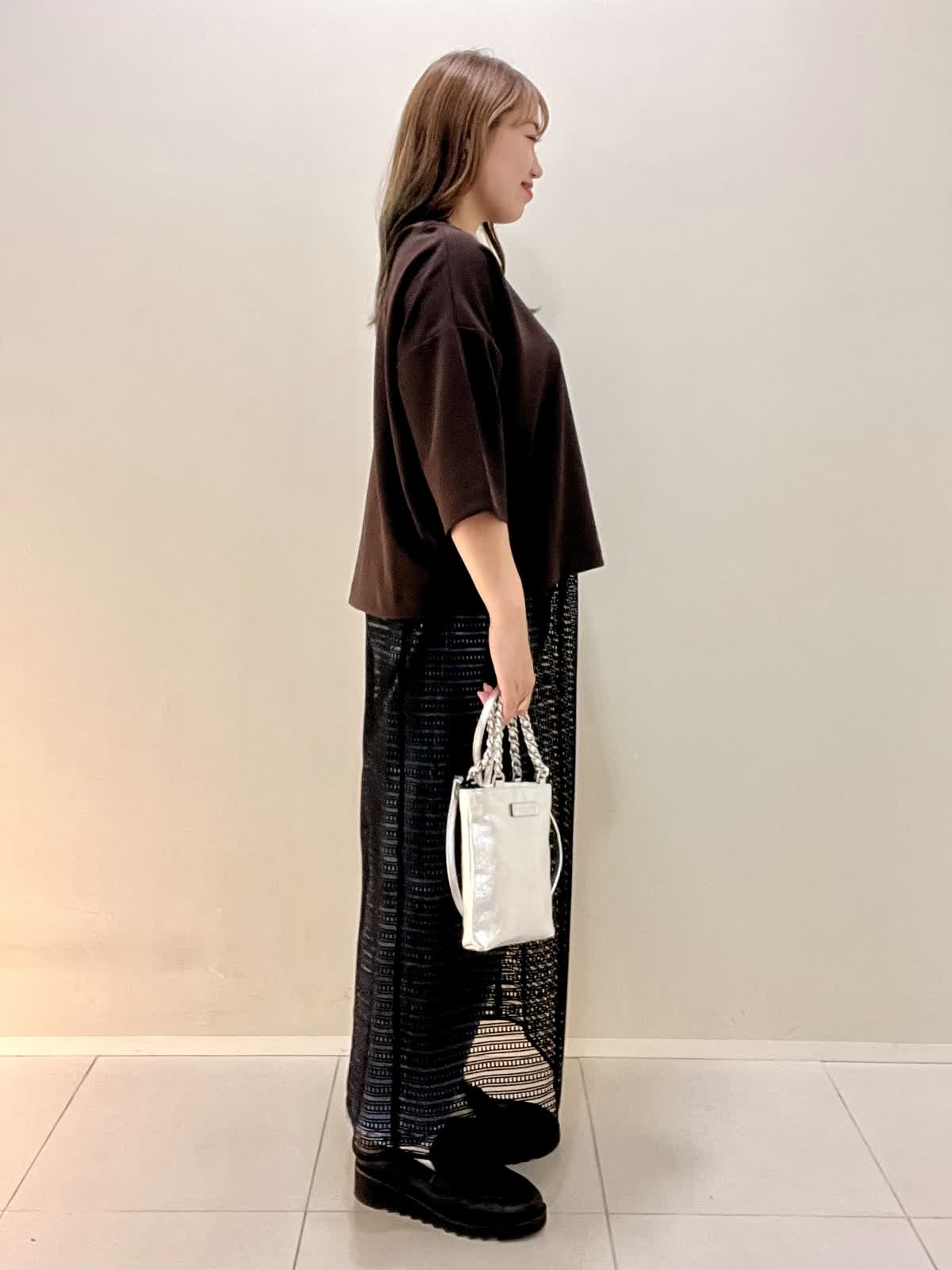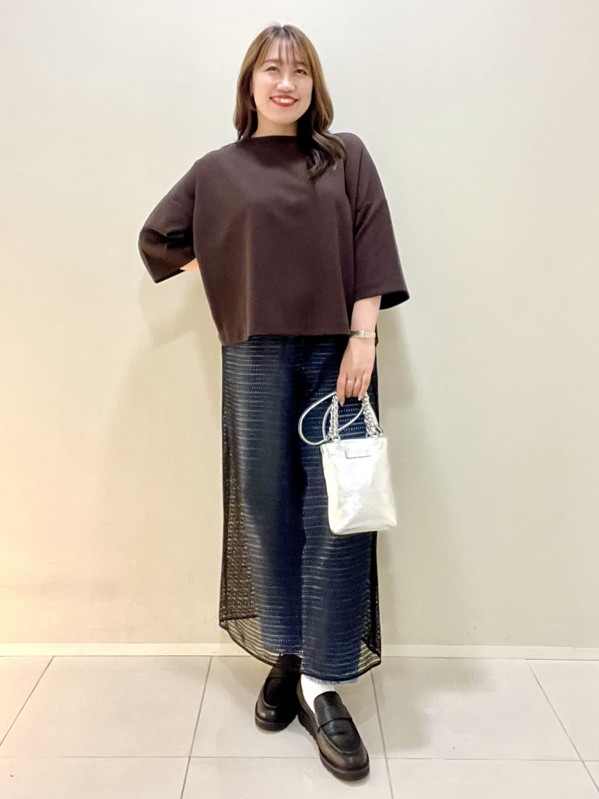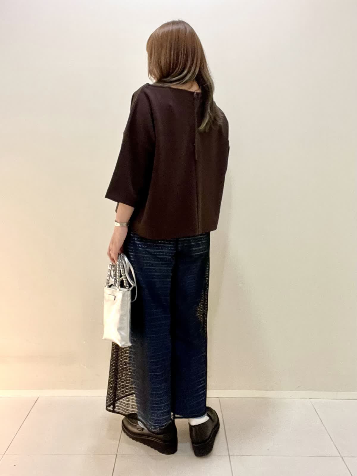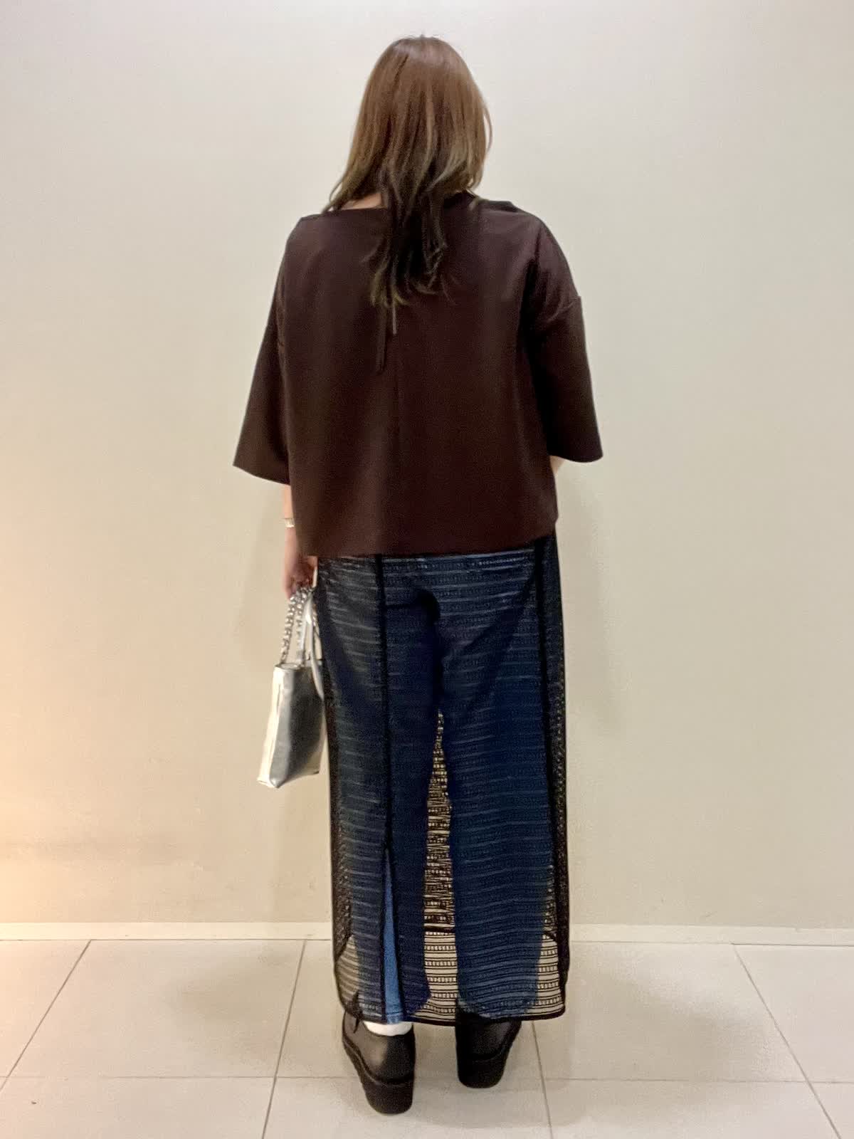 【着用サイズ】カットソー:フリー スカート:フリー パンツ:M 【着用カラー】カットソー:ブラウン スカートブラック パンツ:ブルー レイヤードスタイル。今年はレイヤードするコーディネートがトレンドですよね。DAY by DAY のアイテムでもトレンドのレイヤードスタイルができるアイテムがあります!このスクエアレースのスカート。ペチコートもついているのでスカートとしてももちろん履けますが、ペチコート無しでデニムなどの上から履けば一気にトレンドコーディネートに!このスカートのレースはスクエアになっているので、可愛らしい感じが控えめです。レースだけどかっこいい雰囲気で着ていただけます。カットソーは一見ブラウスに見える素材感ですが、ジャージ素材で着やすいです。ジャージ素材のようには見えないので、綺麗めにも使いやすいです。