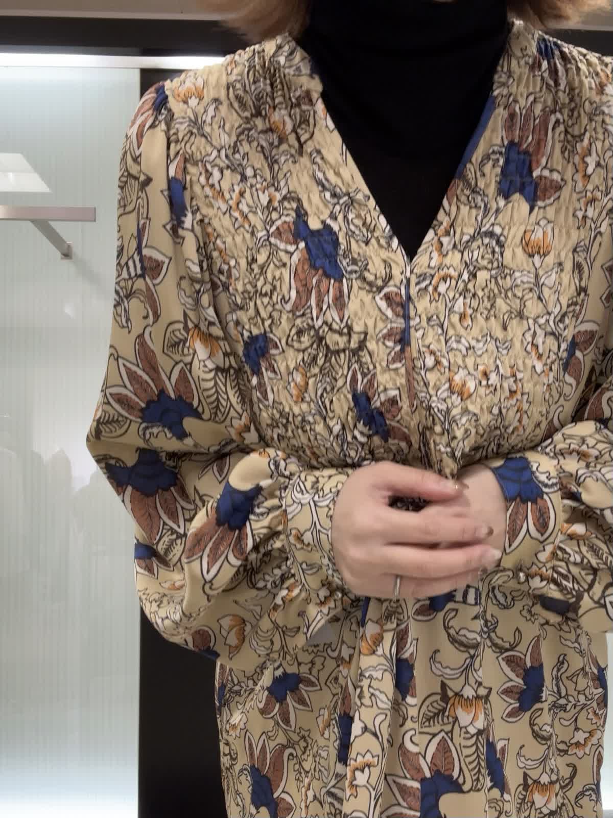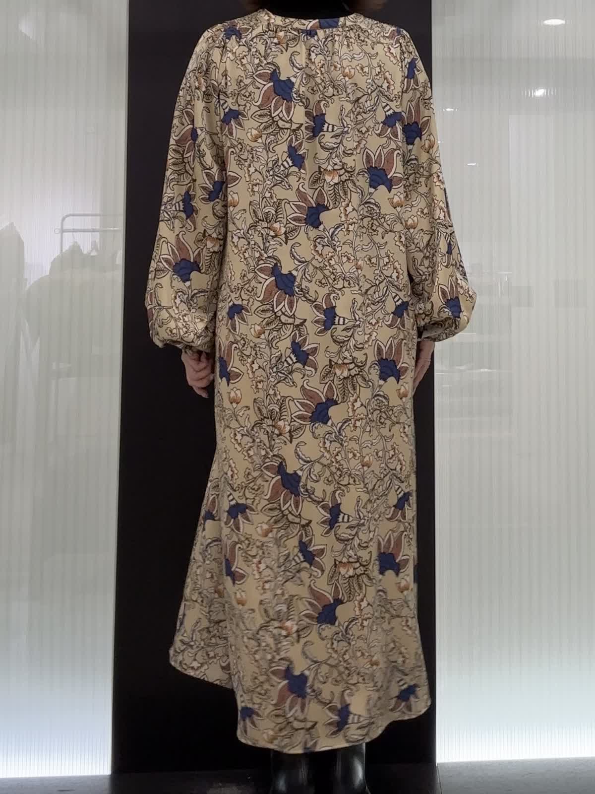 【着用サイズ】フリー 【着用カラー】ベージュ 顔周りをすっきりと見せる華奢なキーネックもポイント。一枚ではもちろん、インナーを合わせてレイヤードも楽しんでいただけます。軽くて滑りが良く、落ち感のある着心地の良い素材感もポイントです。