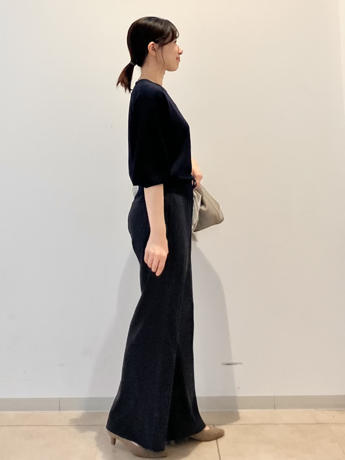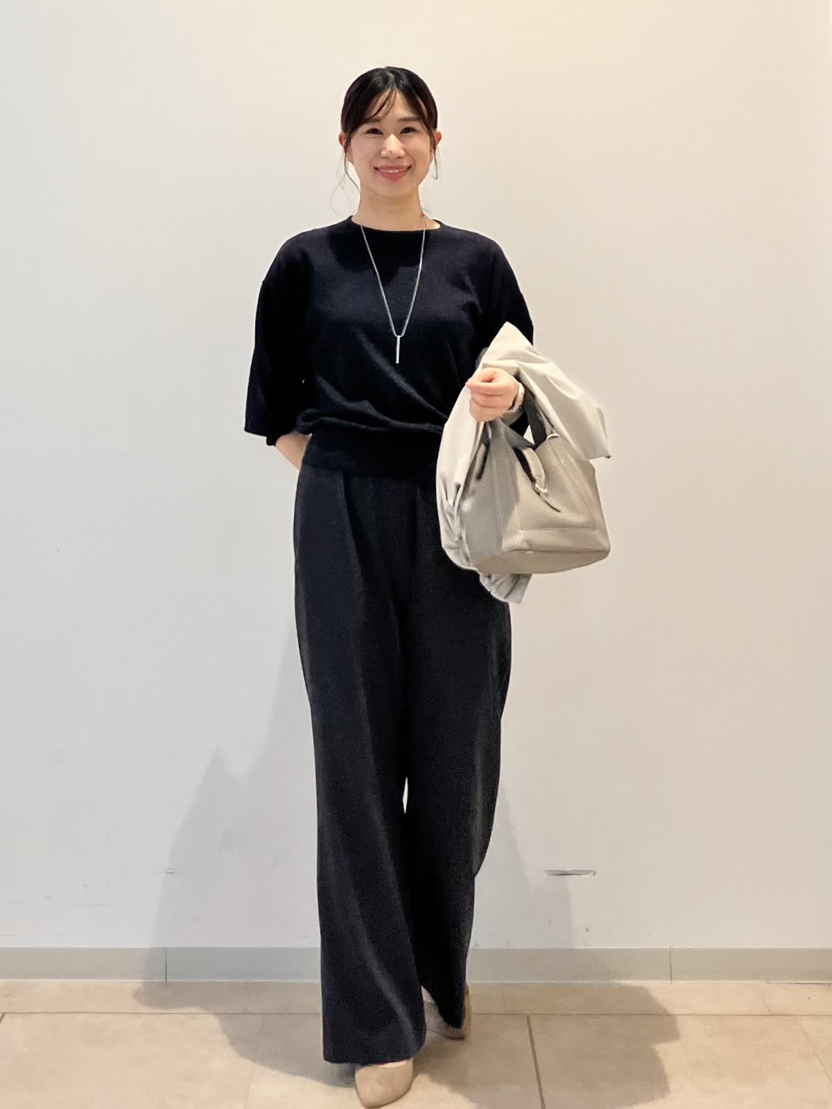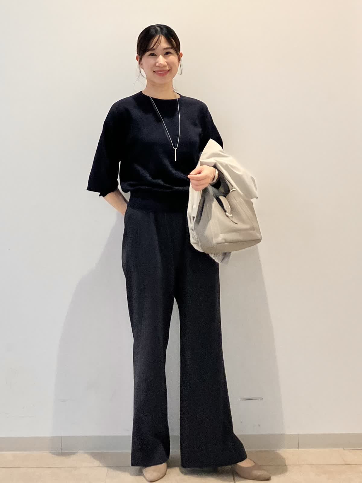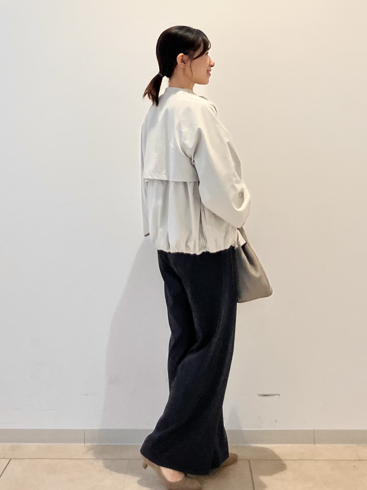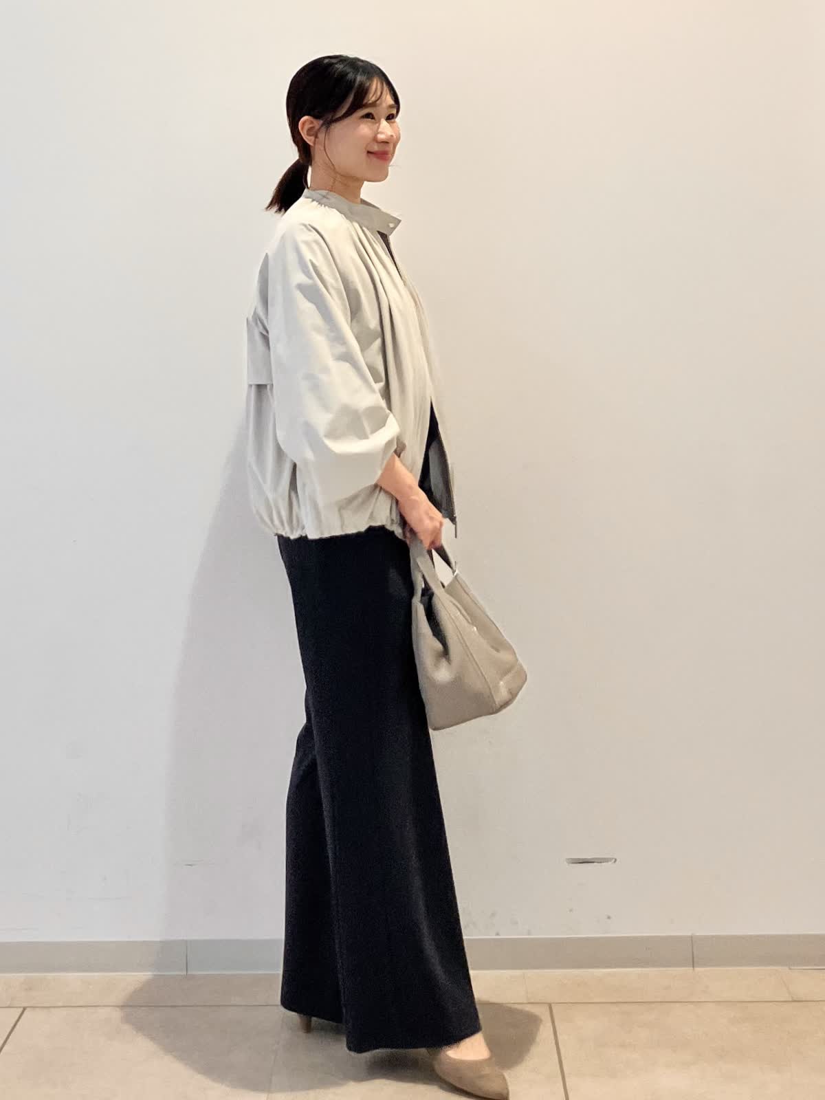 【着用サイズ】ブルゾン:フリー ニット:フリー パンツ:9号 快適とオシャレを両立できるお出かけコーデ。 気温差が出てきた季節に便利なブルゾン。さらっとしっとりとしていてカサカサしにくい素材です。伸び感があるので動きやすい! そして、脚長効果もあるフレアパンツ。こちらもさらっとした素材です。足元はスニーカーでも合いますよ♪これからお出かけが増える季節、おしゃれと快適さを兼ね備えたスタイリングをオススメします♪
