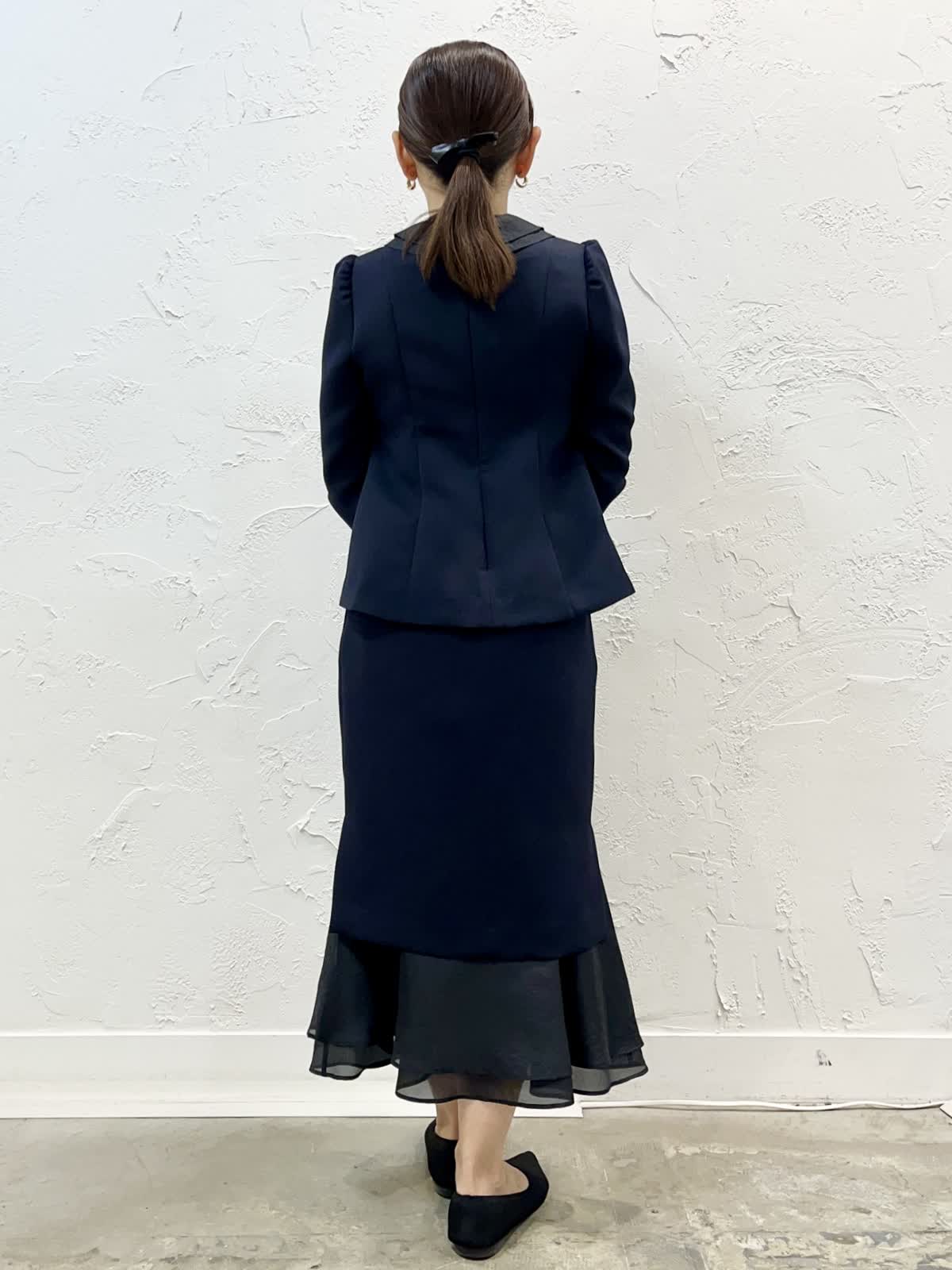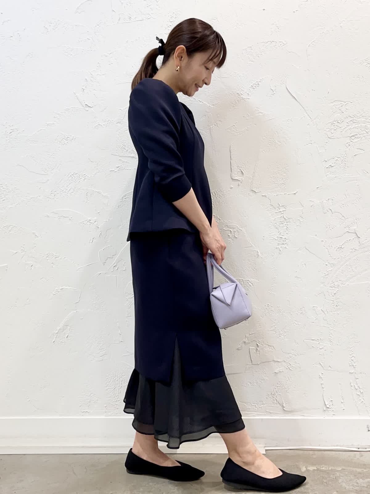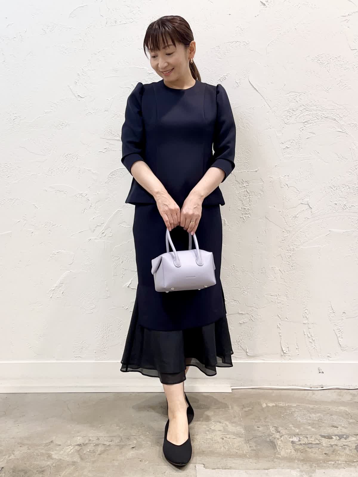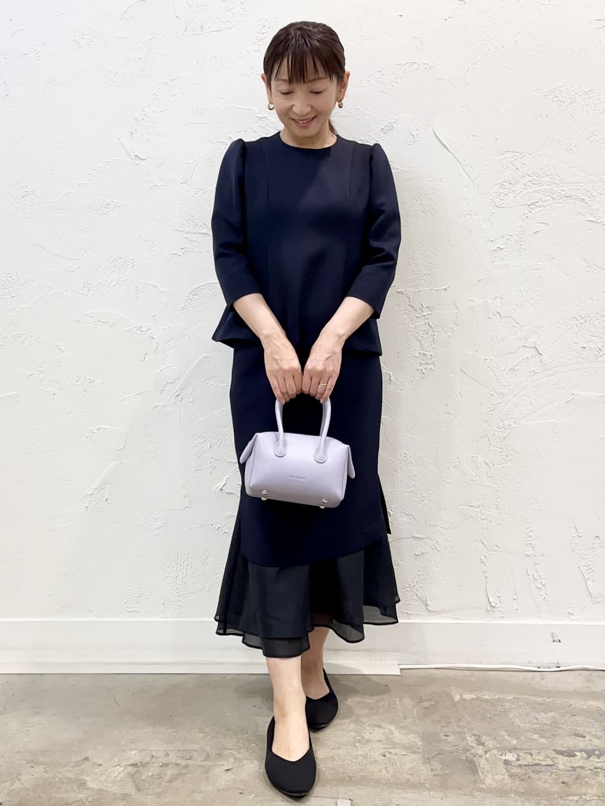 【着用サイズ/カラー】 ブラウス:7号/ネイビー スカート:7号/ネイビー バッグ:ラベンダー ネイビーのセットアップ。清楚なネイビーは行事にも学校用にもおすすめです。単品コーデで普段使いもしやすいです◎いろいろな着こなしを楽しめちゃいます♪ネイビーは7号着用で、ドットでは9号着用です。ぜひサイズ感を比べてみてください。
