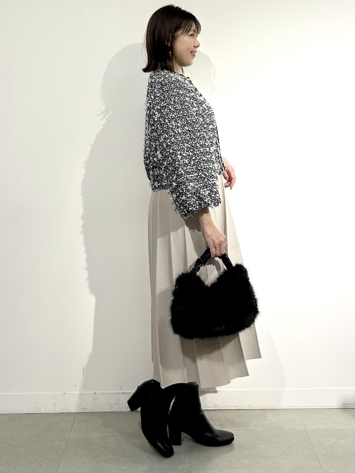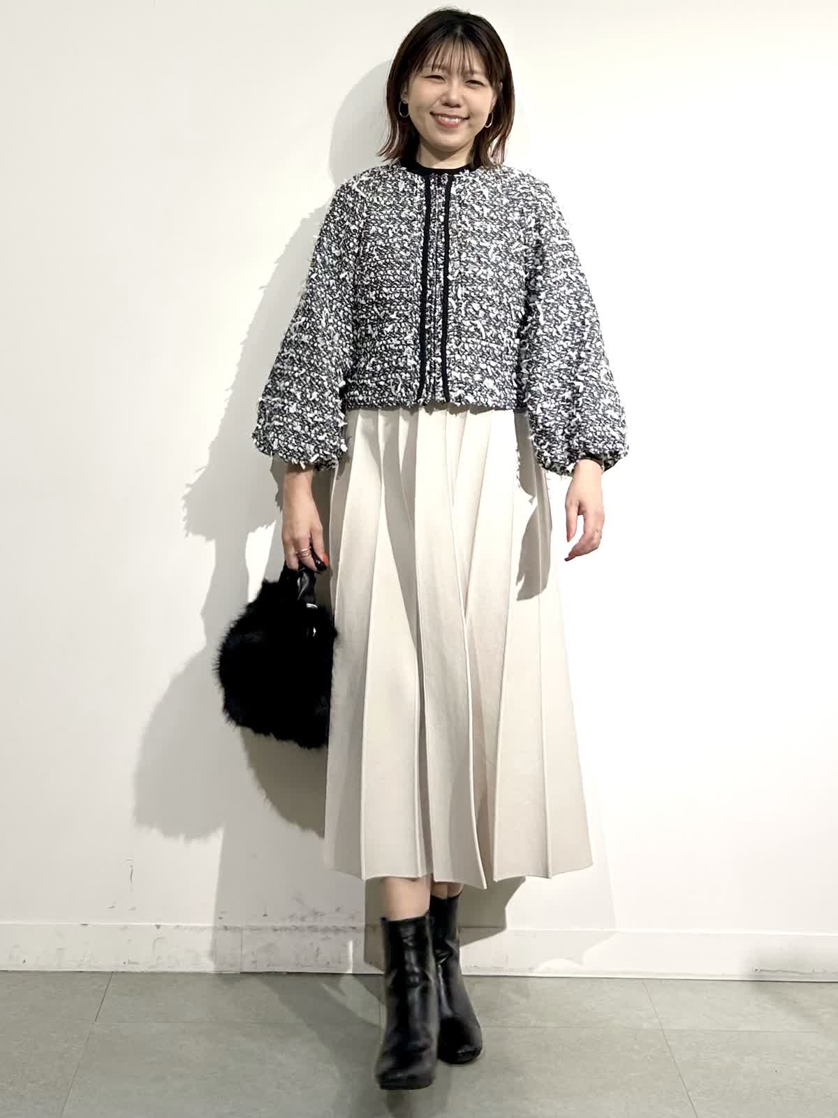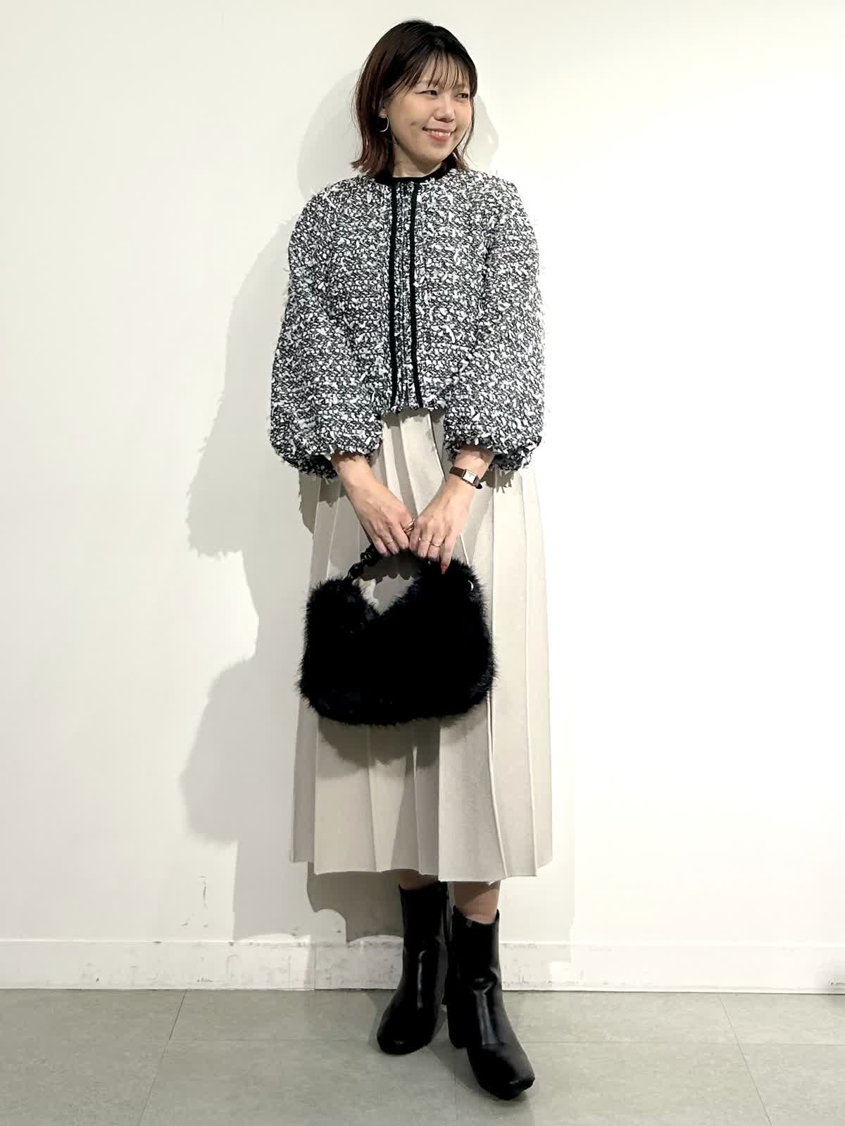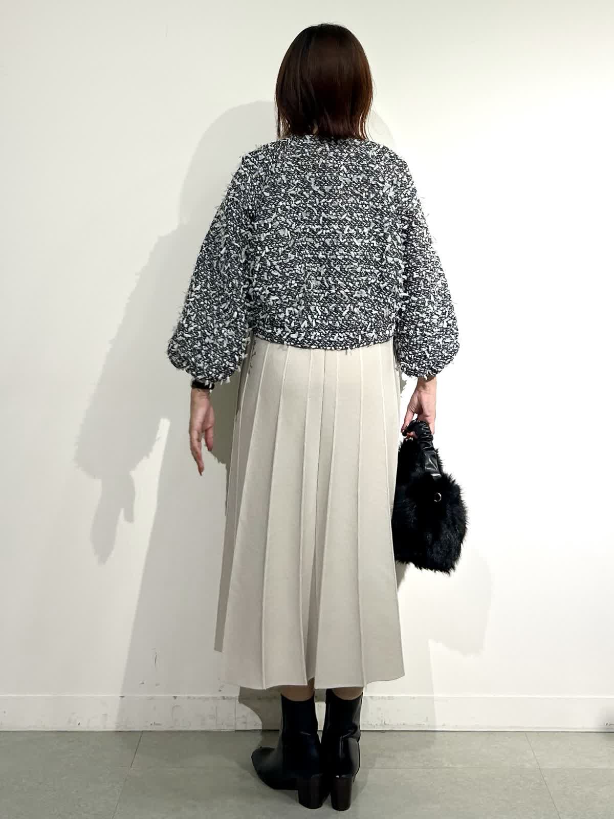 ふんわりとした可愛らしさがたっぷりのブルゾンはオリジナルのファンシーツィード。袖口の丸みシルエットがたまらなく可愛いです。