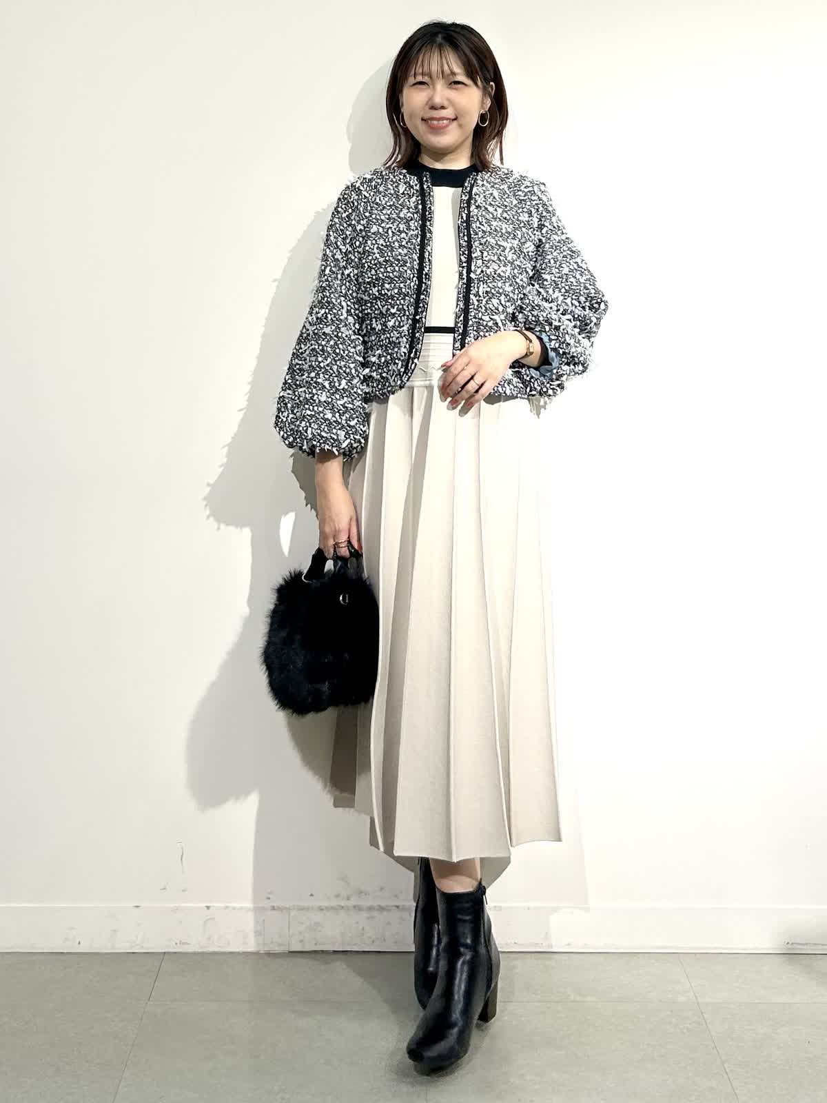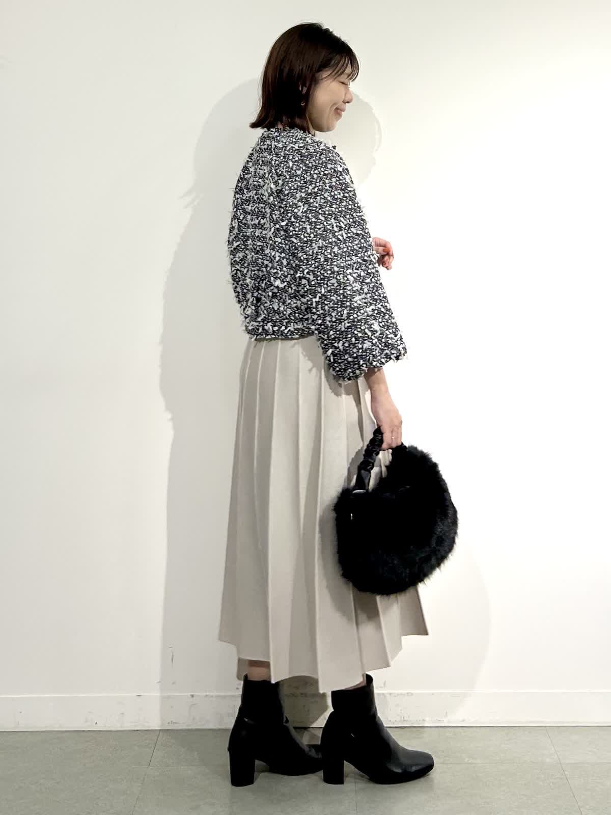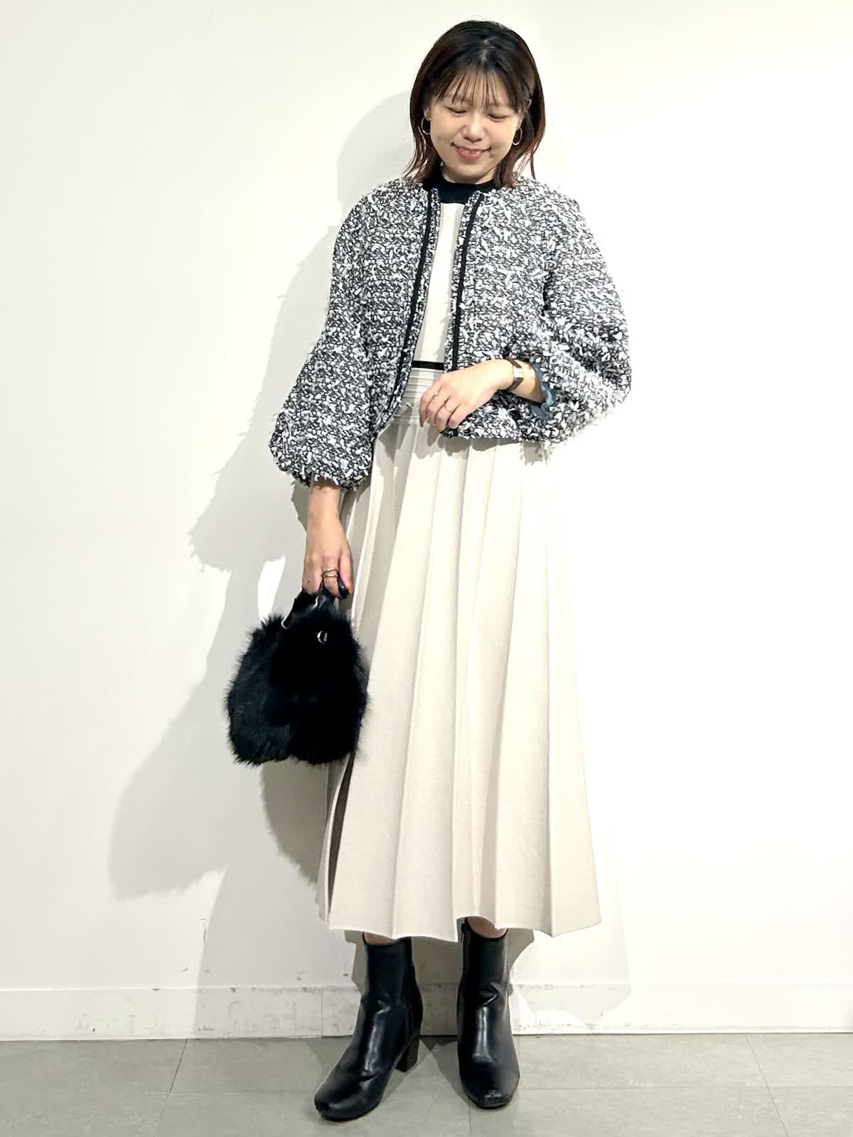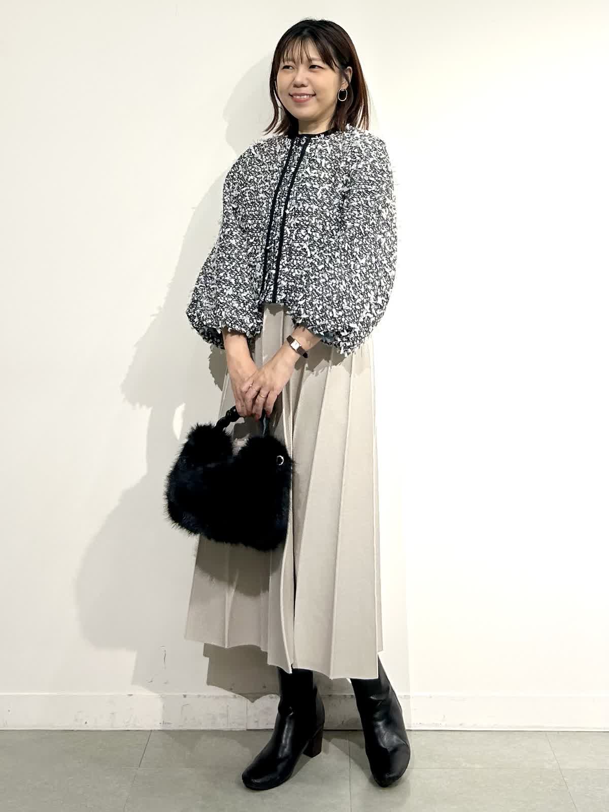 ふんわりとした可愛らしさがたっぷりのブルゾンはオリジナルのファンシーツィード。袖口の丸みシルエットがたまらなく可愛いです。