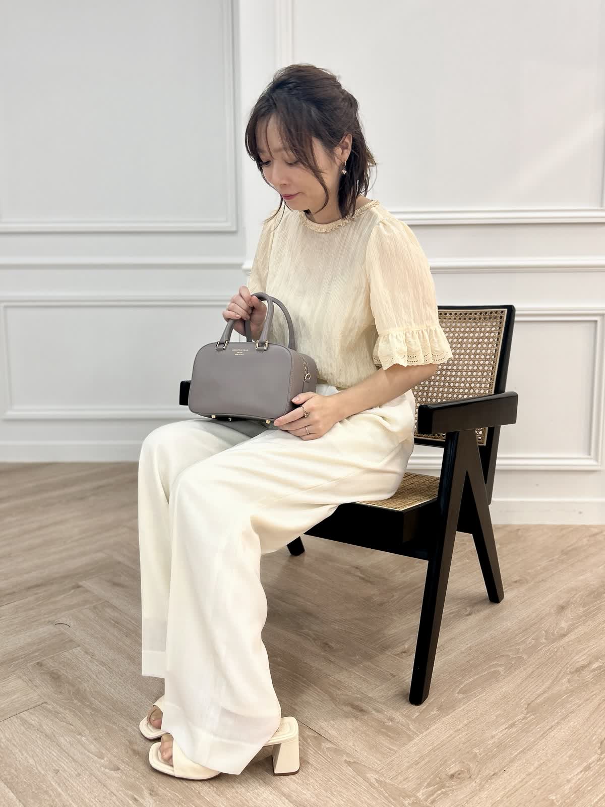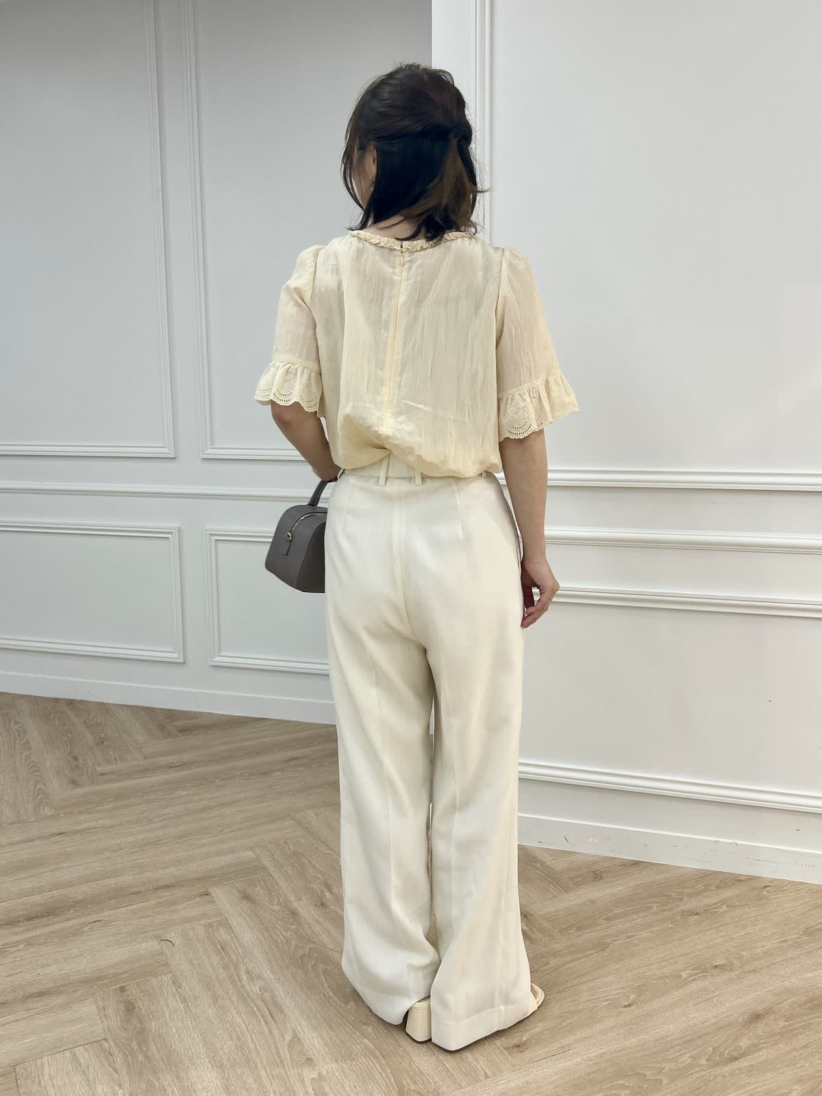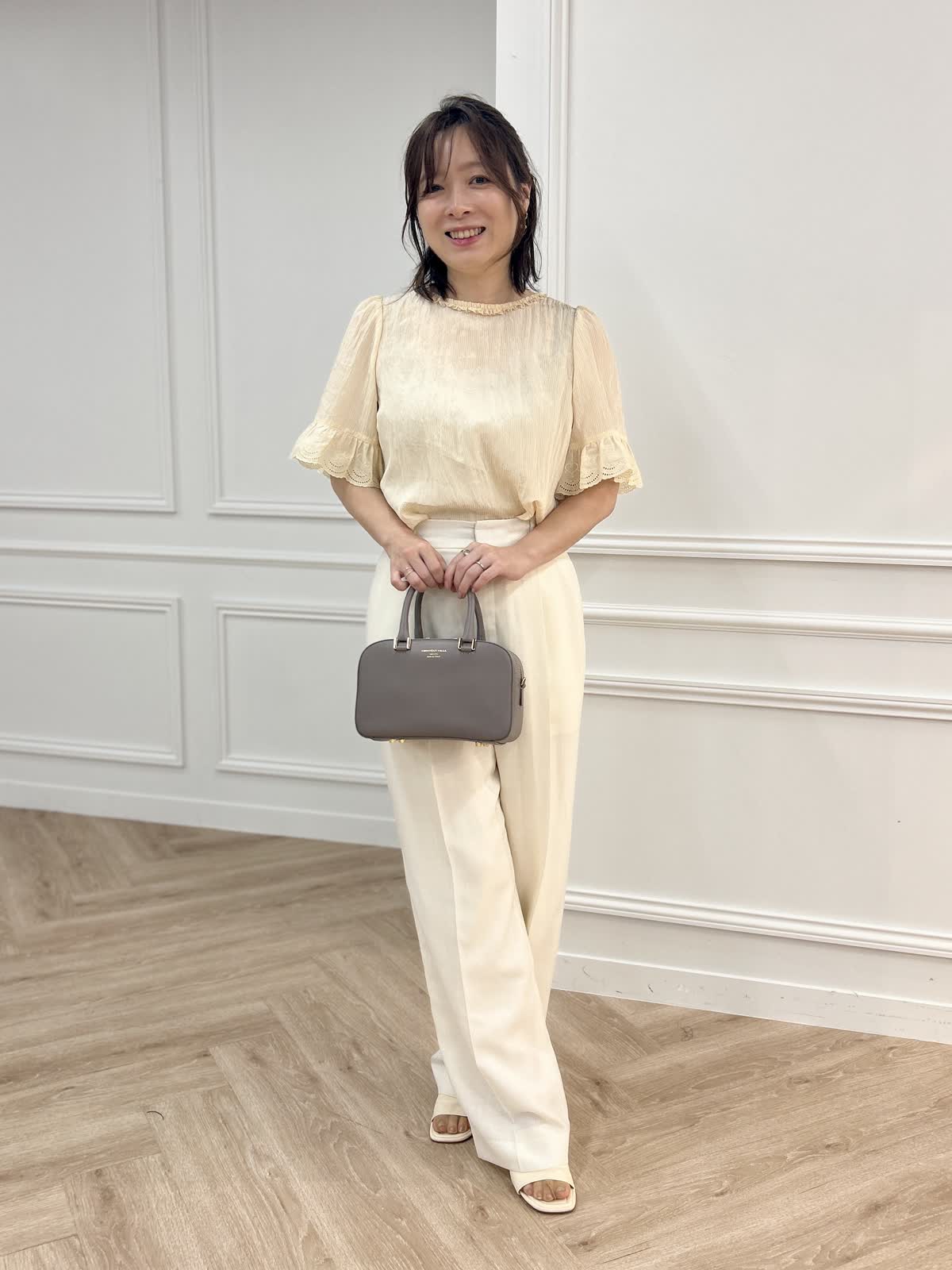 Maglie le cassettoブラウスとINEDパンツとFAVORITE SUKINAMONOバッグ(ECスタッフ)