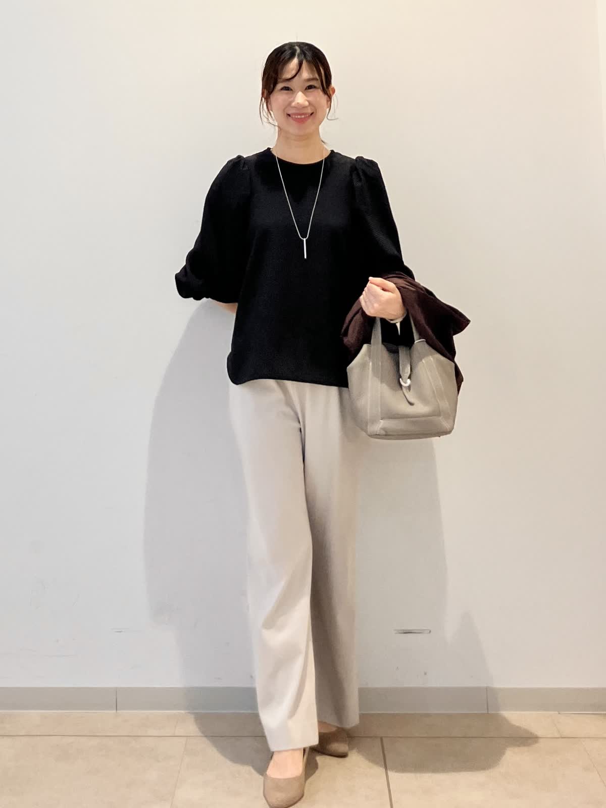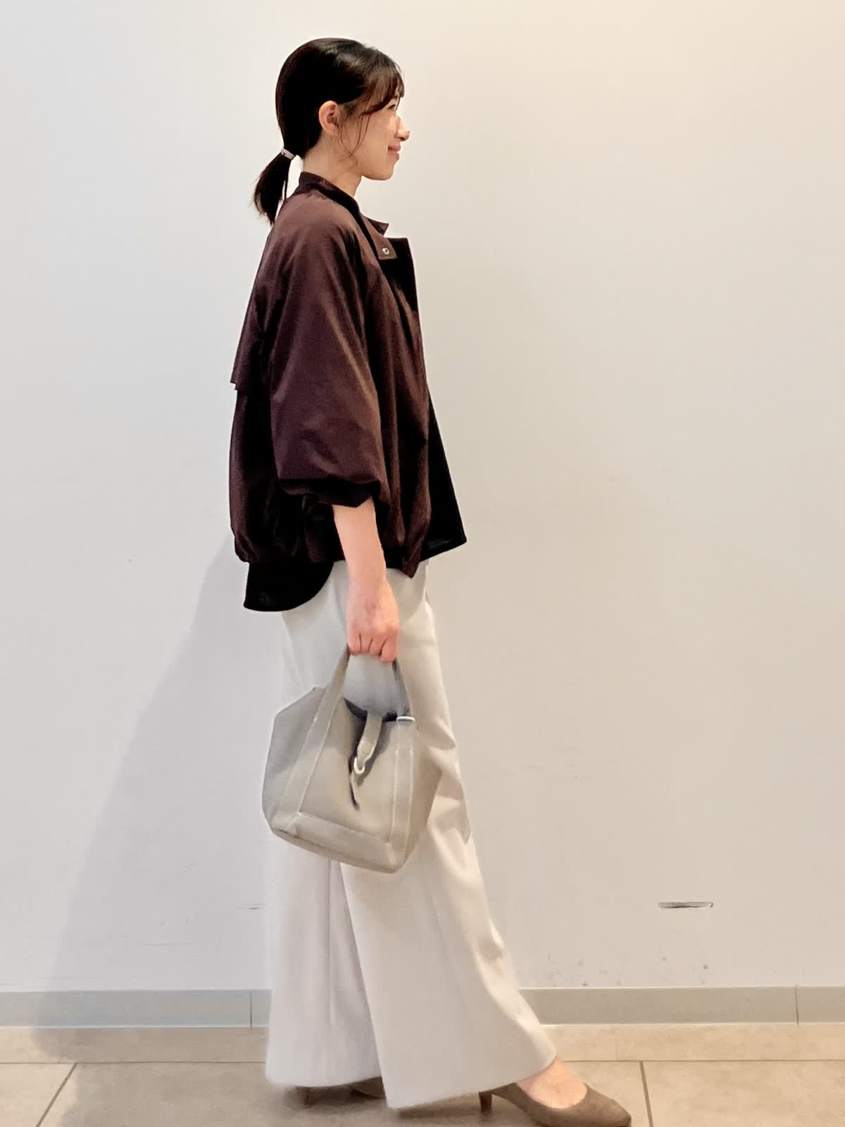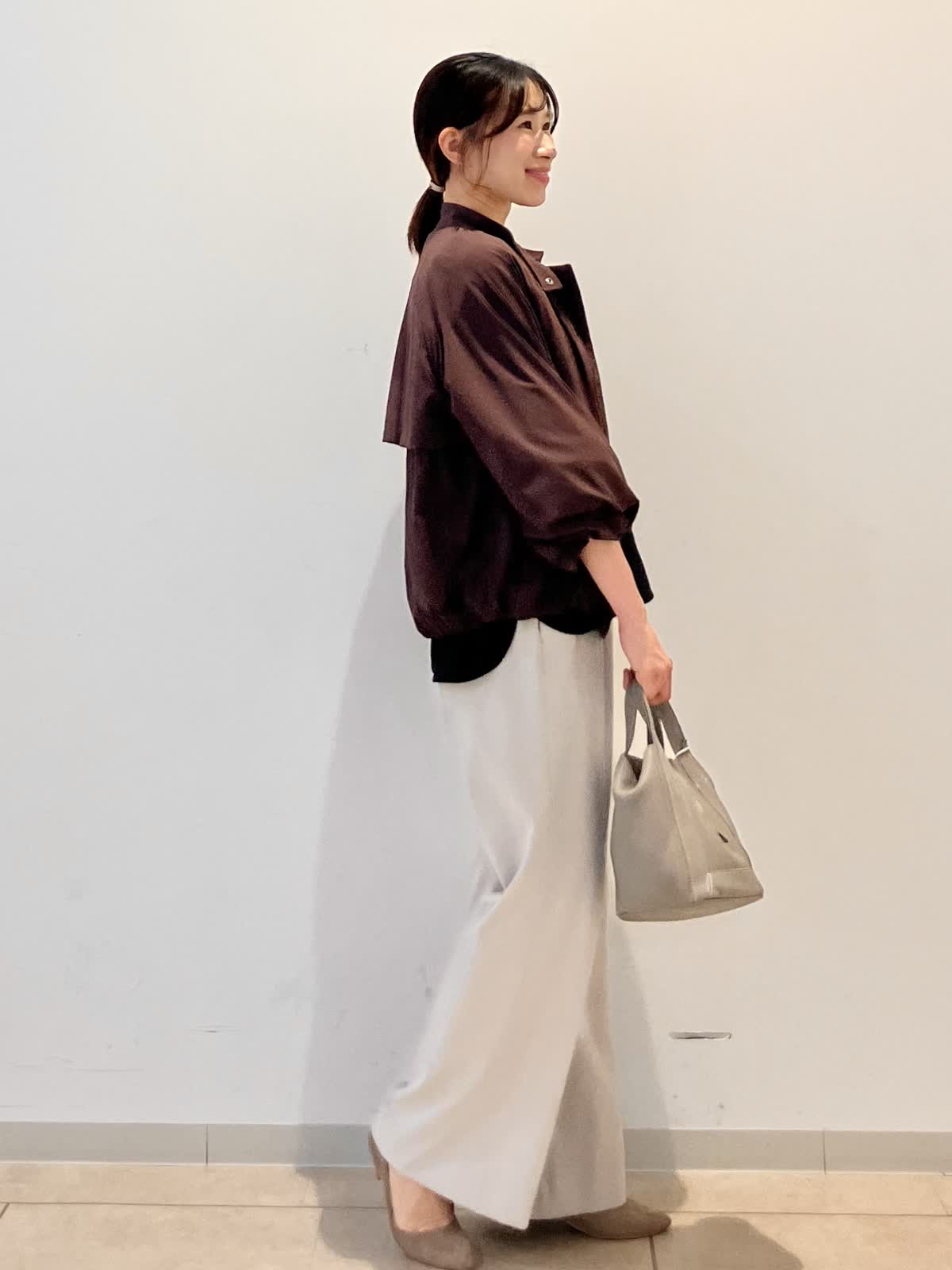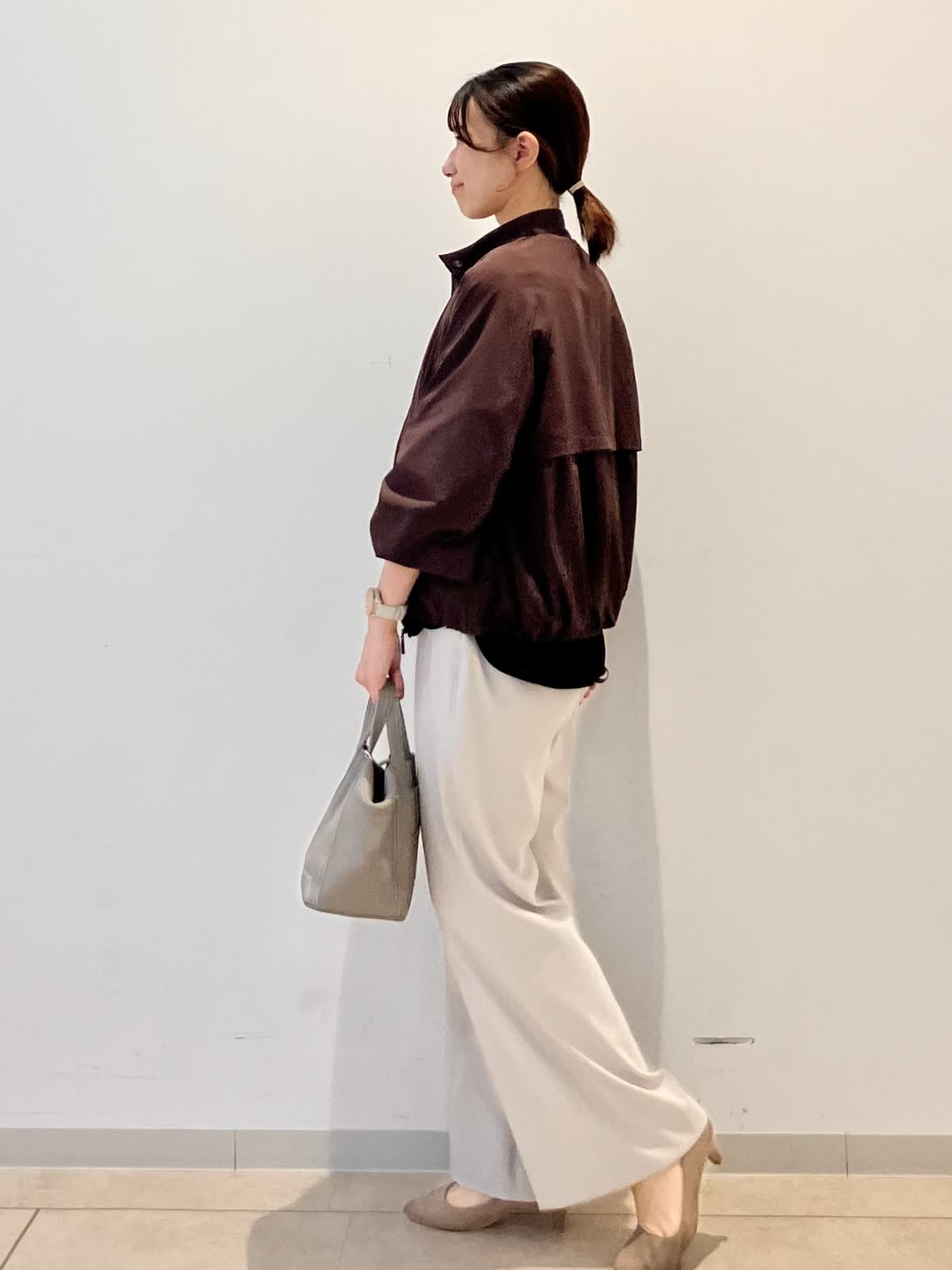 【着用サイズ】ブルゾン:フリー カットソー:フリー パンツ:9号 「週末の美術館、カフェ巡りスタイル」 上品さのあるカラーで、きちんと感を演出できます。例えばですが、秋の良い季節の時に美術館、カフェ巡りなんていいですよね♪そんな時何を着て行こうとなった時、オススメスタイルです! 温度調節しやすい柔らかなブルゾン、中は動きやすく、通気性◎なキレイめカットソー。気温差のある季節に最適です♪
