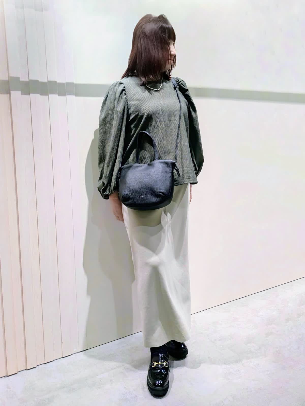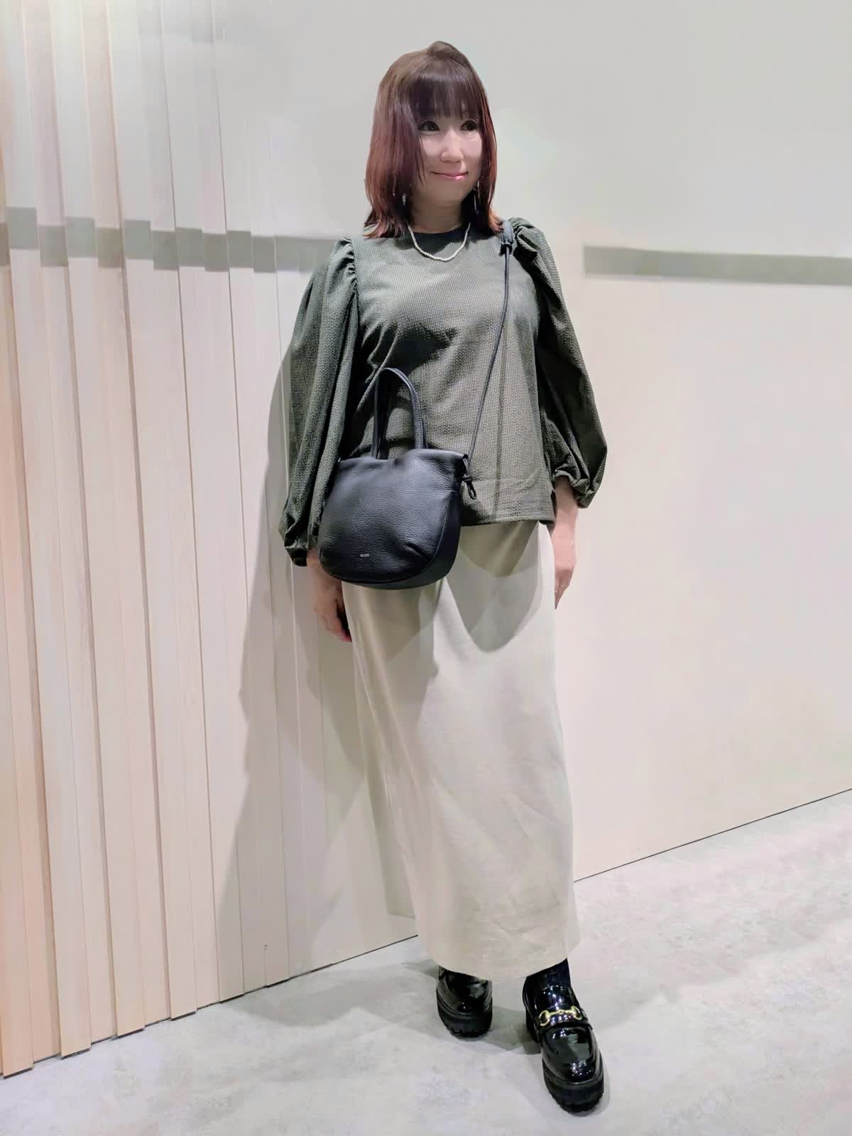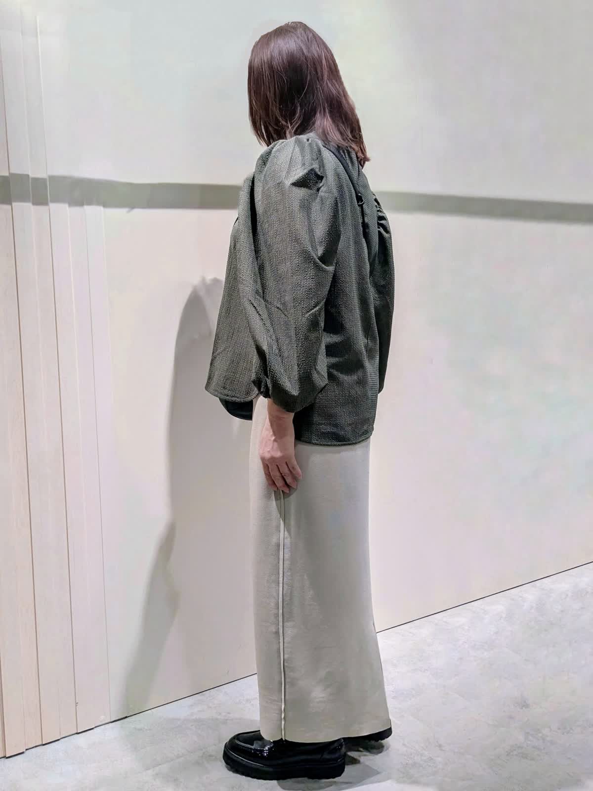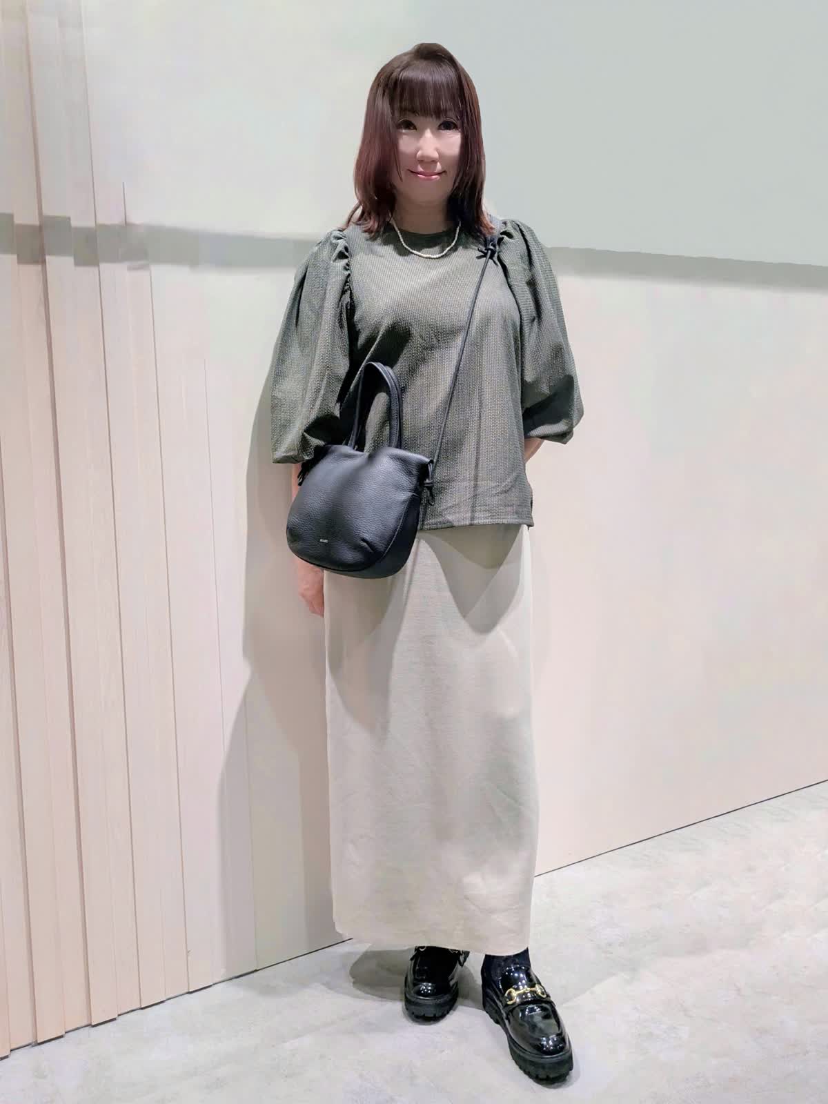 【着用サイズ】ブルゾン、プルオーバー、スカート:フリー 【着用カラー】ブルゾン:ブラック プルオーバー:カーキ スカート:ベージュ キレイ目お出掛けコーディネート ふんわりとしたボリュームのあるお袖が可愛いぃギャザースリーブのプルオーバーは、コンパクトなショルダーラインで華奢見えし、前後差のある裾は腰周りが隠れる嬉しい丈感です。ウエストインでもスタイリングを楽しめます。スカートは、ボディラインを拾いにくく後ろスリットで足さばきも良いです。ウエストゴム仕様でストレスフリーなはき心地です。