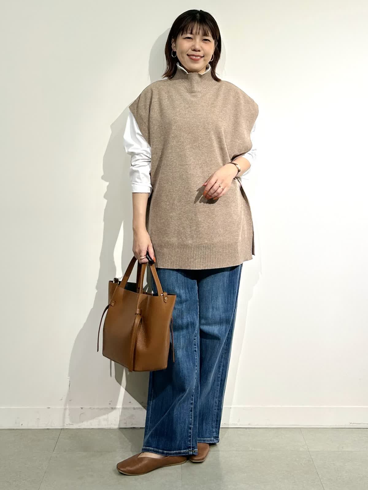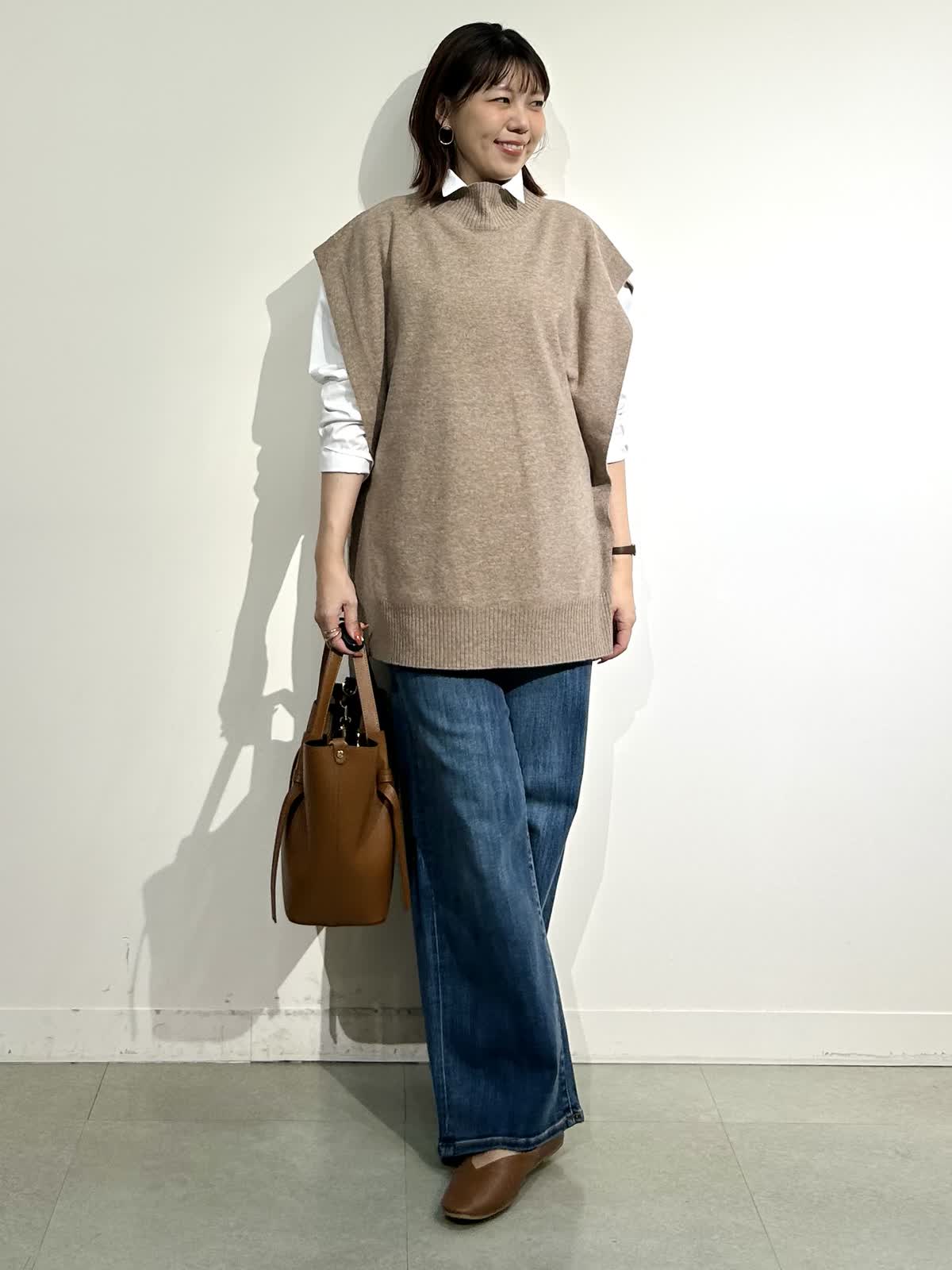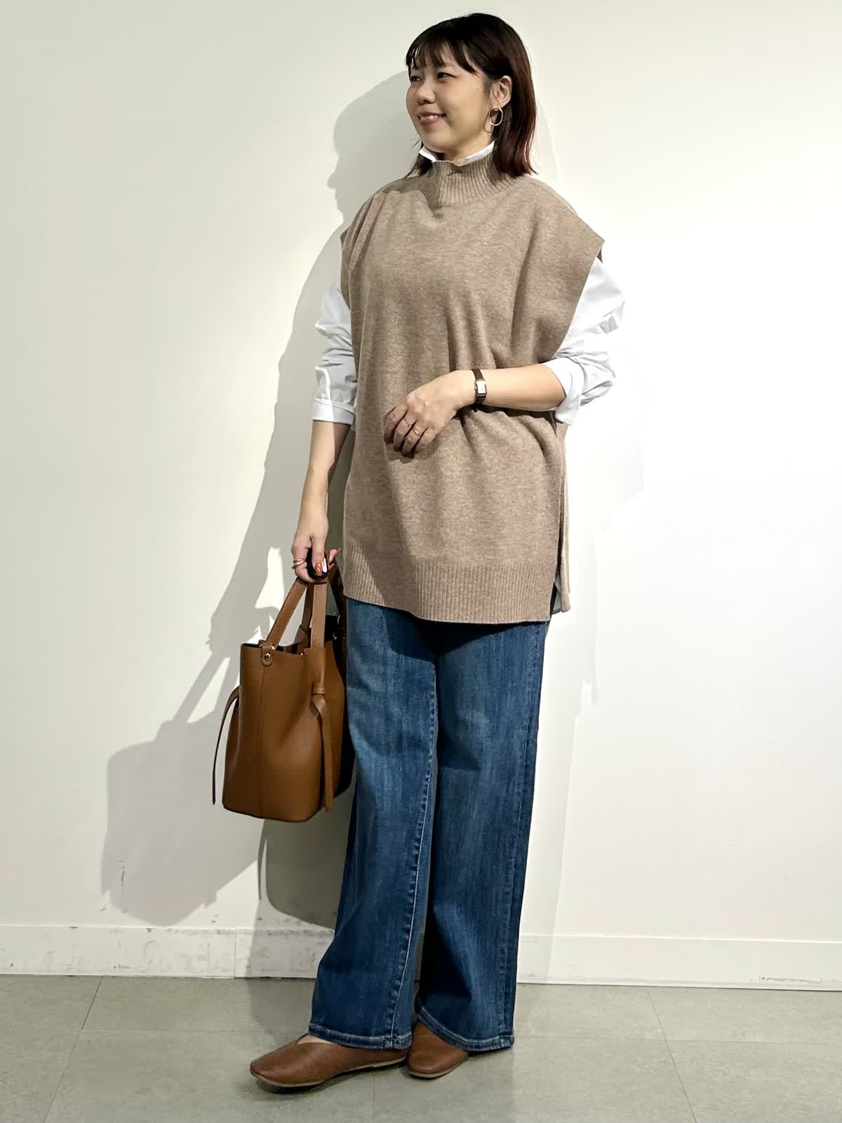 【着用サイズ】デニム:9号 その他フリー 【着用カラー】ジレ:ベージュ シャツ:オフホワイト デニム: インディゴ ボレロにもなる2wayジレが最高にかわいい!オーバーサイズシャツにレイヤードして旬バランスが作れます。 デニムはストレッチ性に優れた動きやすさ抜群の1着。 ぜひこの秋冬トライして頂きたいスタイリングです。