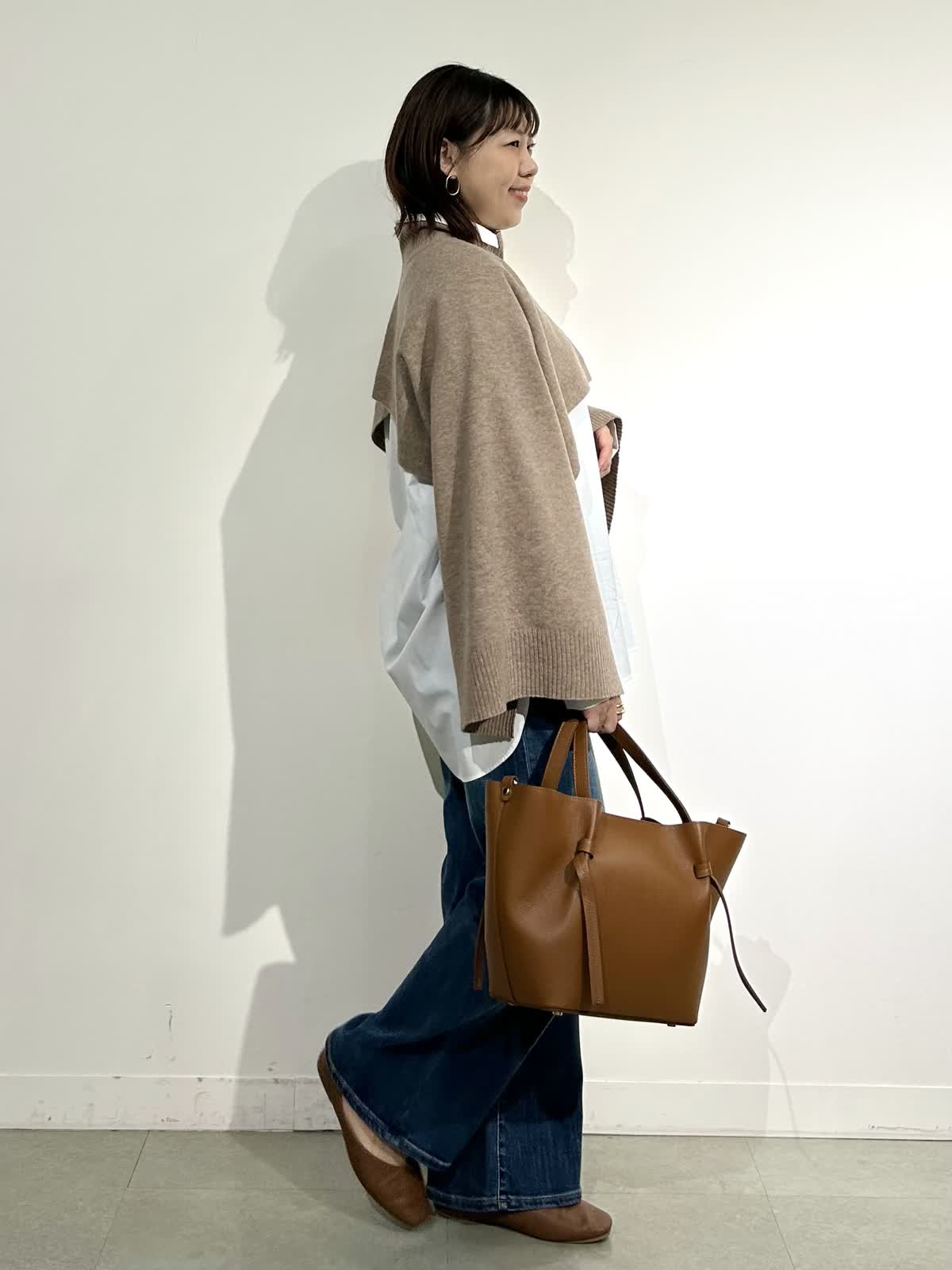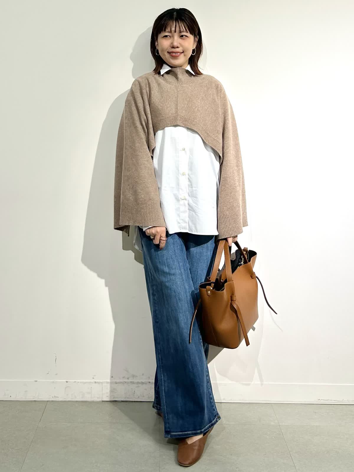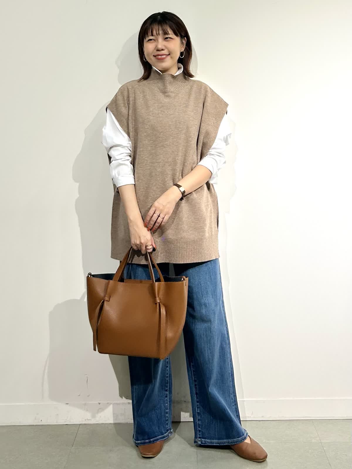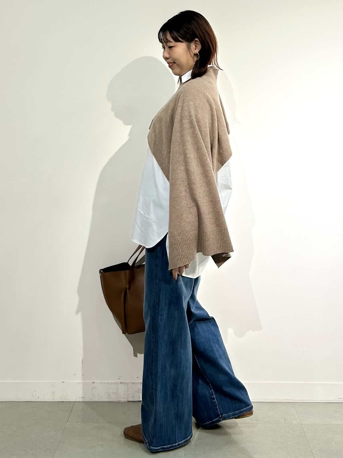 【着用サイズ】デニム:9号 その他フリー 【着用カラー】ジレ:ベージュ シャツ:オフホワイト デニム: インディゴ ボレロにもなる2wayジレが最高にかわいい!オーバーサイズシャツにレイヤードして旬バランスが作れます。 デニムはストレッチ性に優れた動きやすさ抜群の1着。 ぜひこの秋冬トライして頂きたいスタイリングです。
